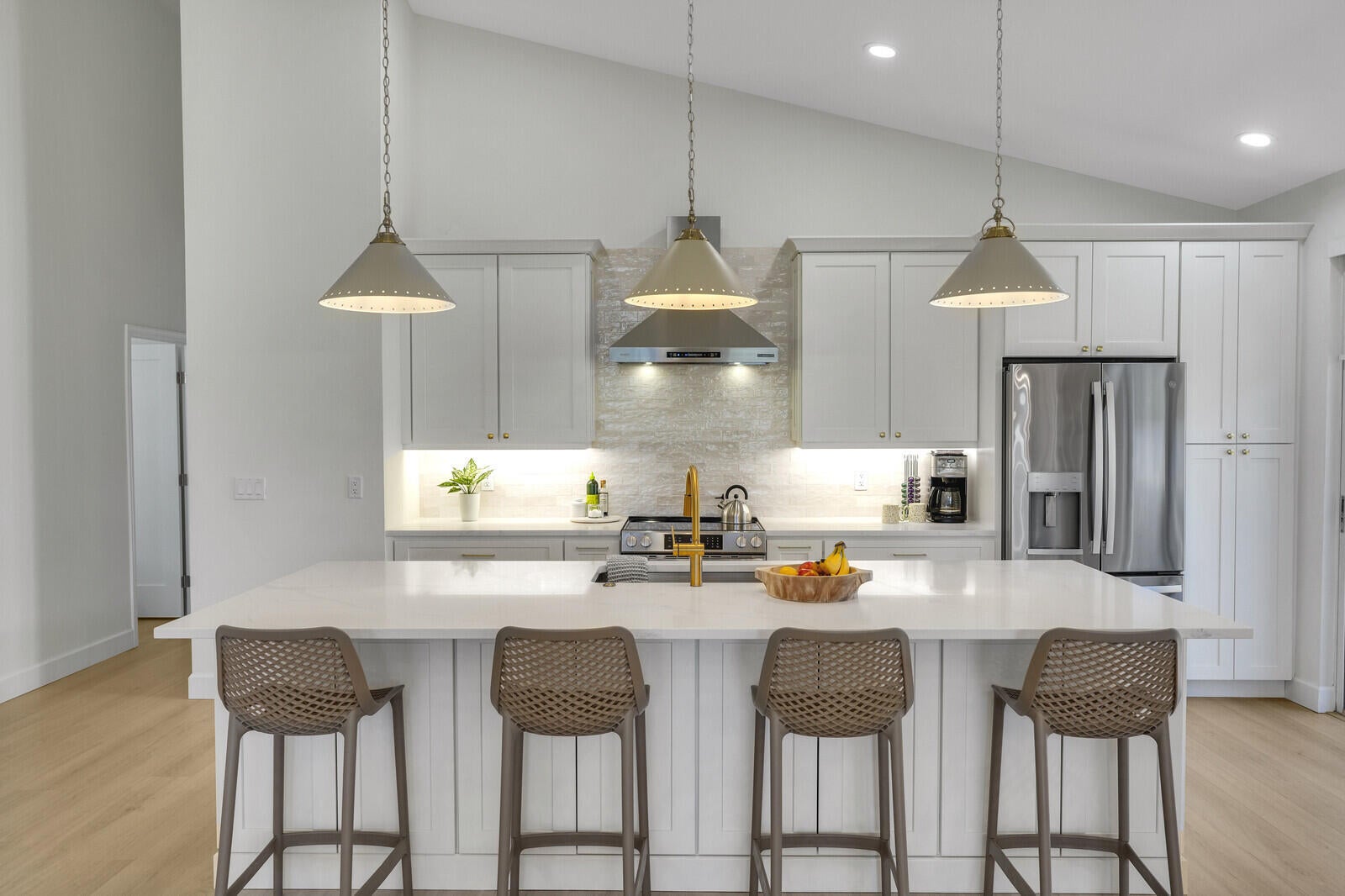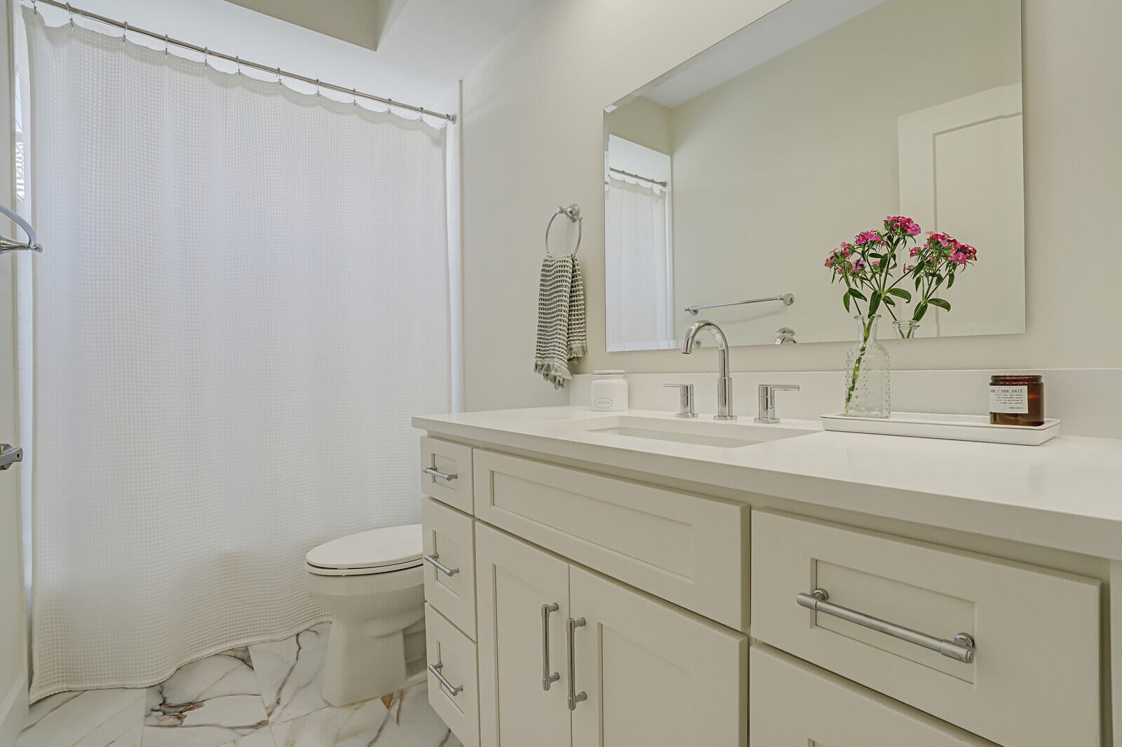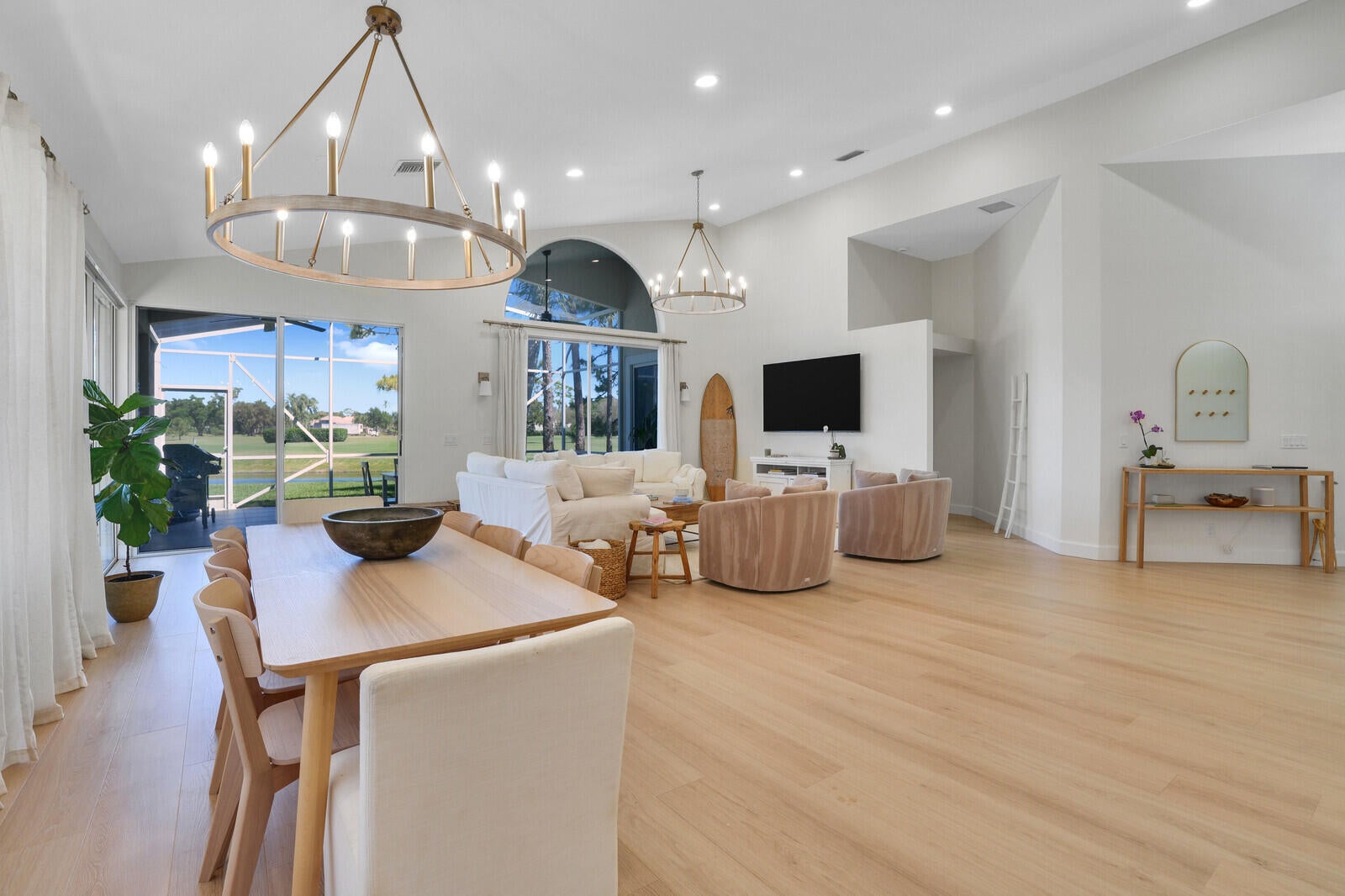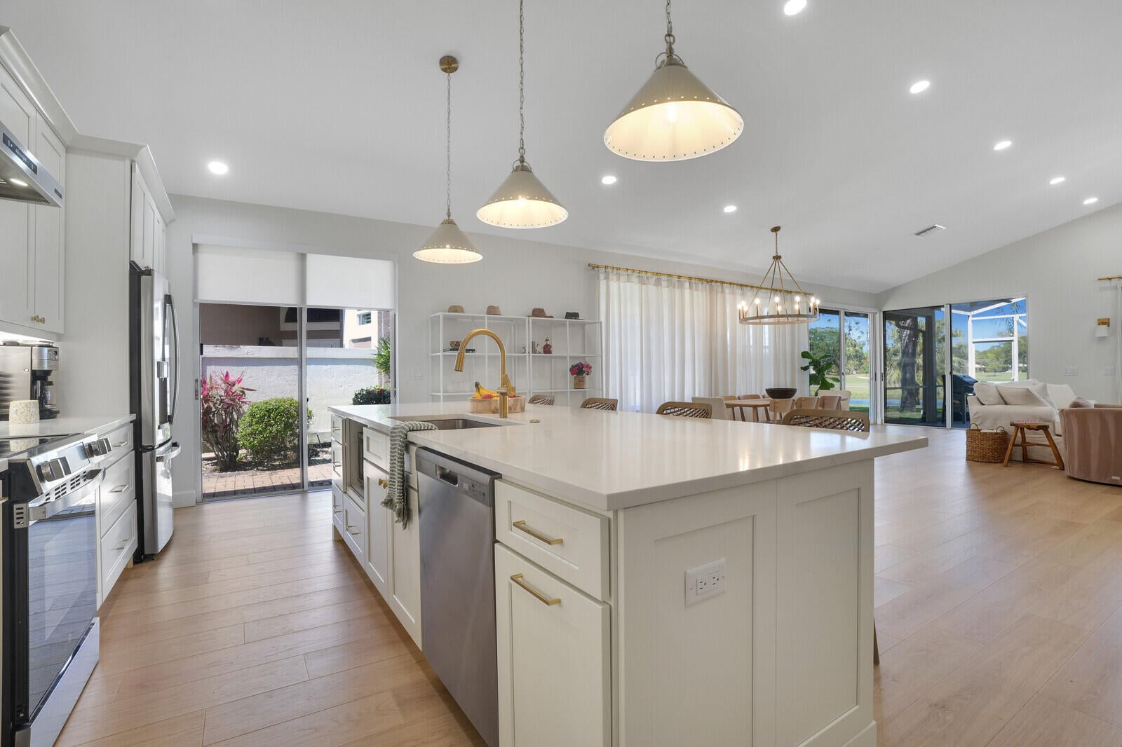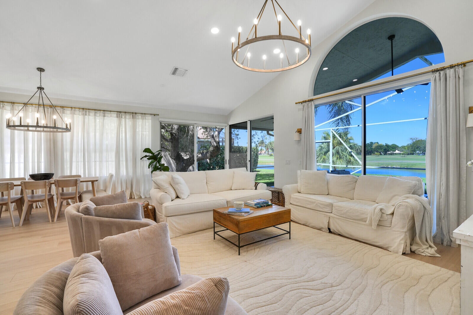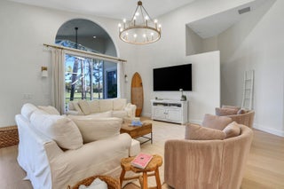 Newly renovated home in the gated club community of Eastpointe! This 3 bedroom home is filled with natural light and features soaring vaulted ceilings, wood-look tile floors, modern light fixtures, and luxurious spa-like bathrooms. The gourmet kitchen has new sleek white cabinetry, quartz countertops, stylish tile backsplash, high-end SS appliances, and a spacious island with seating for four. Tastefully furnished and available as a seasonal or annual rental (furniture negotiable). Covered & screened patio with breathtaking golf course and lake views. 2-car garage. Social Membership is available which includes tennis & pickleball! Conveniently located near top restaurants, shopping, golf, marinas, pristine beaches, and PBI. Annual rent is $6,500. Seasonal rent: $12K/mo (6-month minimum).