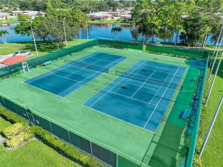 Enjoy you're morning coffee while watching the sunrise from the comfort of you're home. This one of a kind corner unit with oversized lanai is ready for entertaining and let's not forget all the amenities the community has to offer (tennis, shuffle board, barbecue picnic area, clubhouse, and more). The lake view can be soon from both bedrooms and patio. The home comes furnished. Freshly painted and shampooed carpet. New roof, washer and dryer in the unit, extra storage closet. You can lease after one year of ownership. Perfect for a future investment property or vacation home. Just minutes away from shopping and dinning. Parking available for RV and boats. Pet-friendly