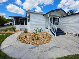 Experience luxury living in this stunning 2 Bed/2 Bath modular home in the sought-after 55+ community of Maralago Cay. Nestled on spacious corner lot w/ lush, upscale landscaping, this home boasts an elegantly updated interior w/ sleek stainless steel appliances in kitchen, updated guest & primary bathrooms & stylish light fixtures throughout. Roof, A/C & Water Heater all replaced in 2021 for piece of mind. Enjoy the Florida lifestyle in the covered & screened patio, a perfect retreat for relaxing & sipping your morning coffee or evening cocktail with friends. Step outside to find meticulous maintained stone walkways & a private driveway leading to a golf cart-accessible shed. Homes like this don't last long, schedule your private showing today! Lot lease of 1355.69 includes pool & more!