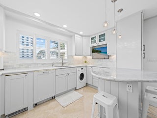 Beautifully updated Southern Corner with direct Intracoastal views! In addition, since this is a corner, you have additional southern facing windows a larger kitchen & private window w/ views of the Ocean! This renovated home features marble flooring, designer quartzite counters, custom cabinetry w/ a bar style ice maker, a Bosch Double Oven, Induction cooktop, Sub Zero refrigeration drawers, full sized washer and dryer and coffee bar! The until also has two bedrooms, an enormous indoor/outdoor balcony, with interior storage and walk in closets. Seagate of Highland is a beautifully renovated building with great amenities - Pools, Clubhouse, plus deeded beach access across the street with chairs, covered parking, chase loungers and a shower on the sand, community Boat dockage, bocce, etc.