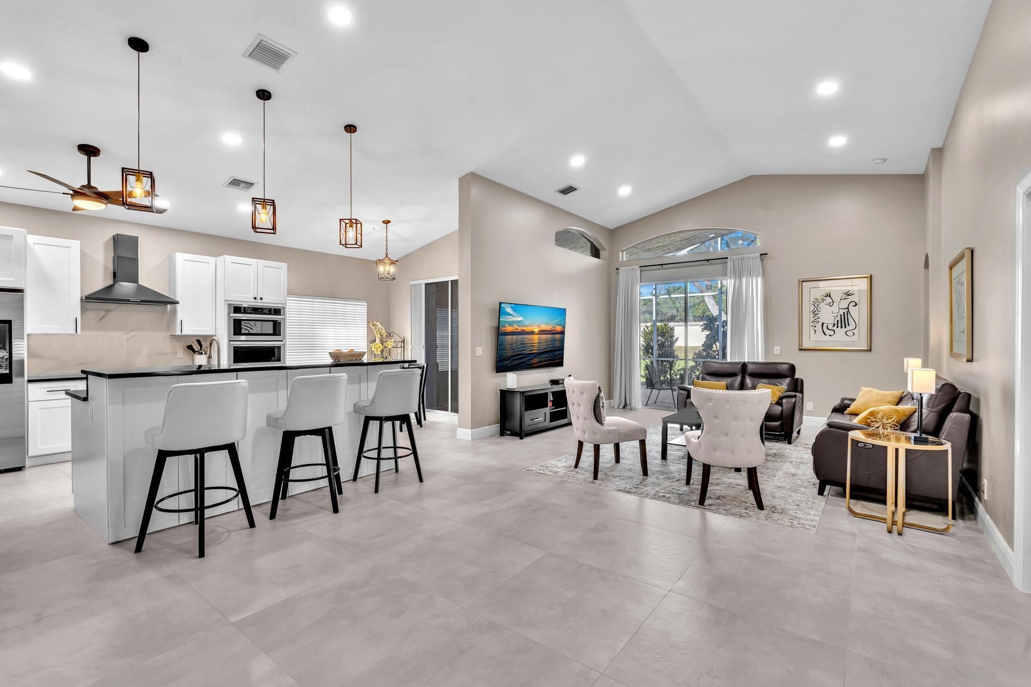 Amazing Opportunity to Own a Completely Renovated Home in Desirable Bellaggio! This stunning 3 bed/2 bath home features an open floor plan, perfect for modern living. The spacious kitchen is equipped with beautiful white custom cabinets and newer appliances. Both bathrooms have been fully renovated, and new, custom closets have been added throughout. The luxurious primary suite offers two fully fitted closets and a gorgeous bathroom with dual sinks and a walk-in tub. Enjoy the serene outdoor space with a covered and screened-in lanai, perfect for relaxing or entertaining. Located in a vibrant 55+ community offering fantastic amenities, including Pickleball, Tennis, Billiards, a Cafe,Clubhouse, Gym, and both Indoor and Outdoor Pools. Don't miss out on this incredible opportunity!