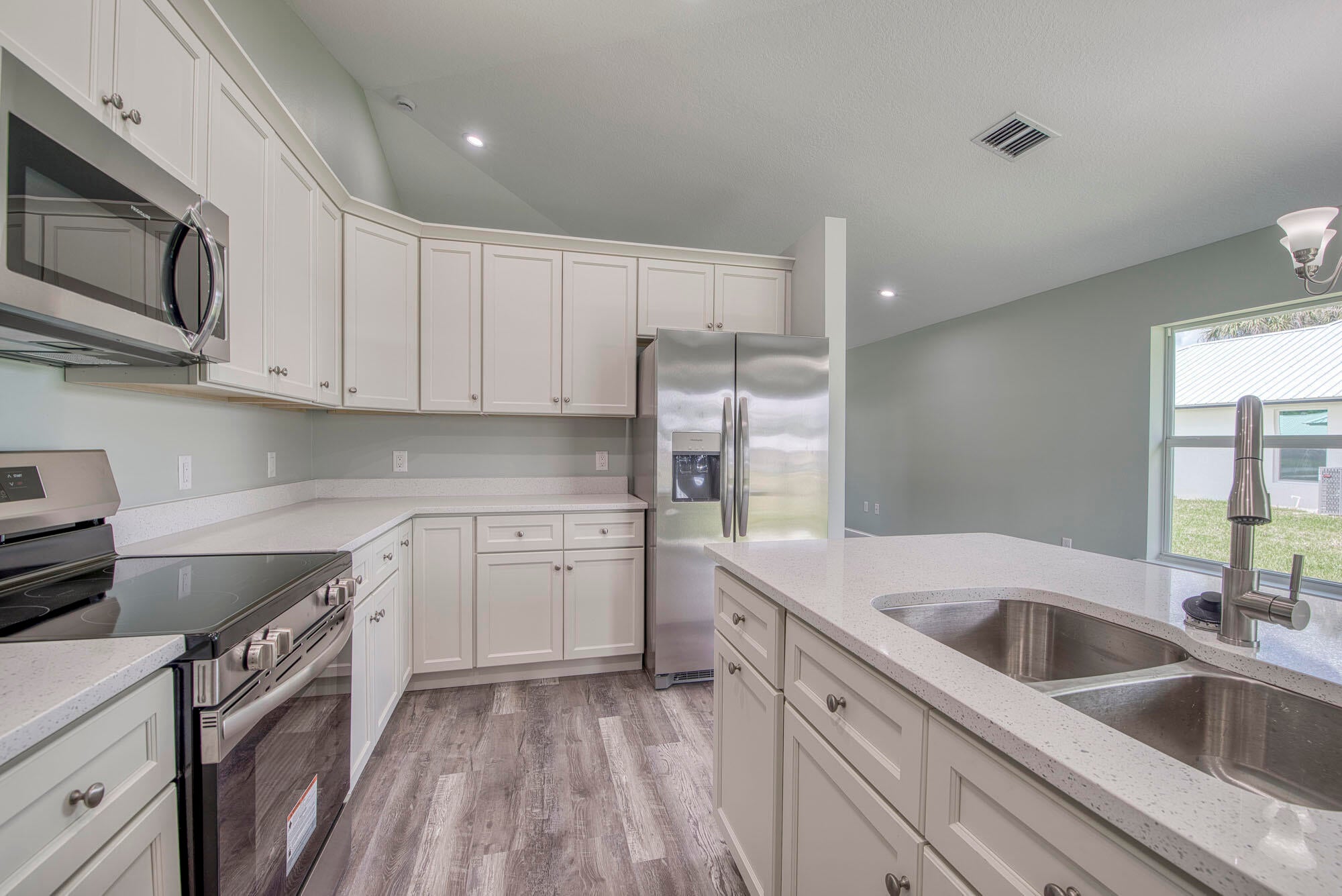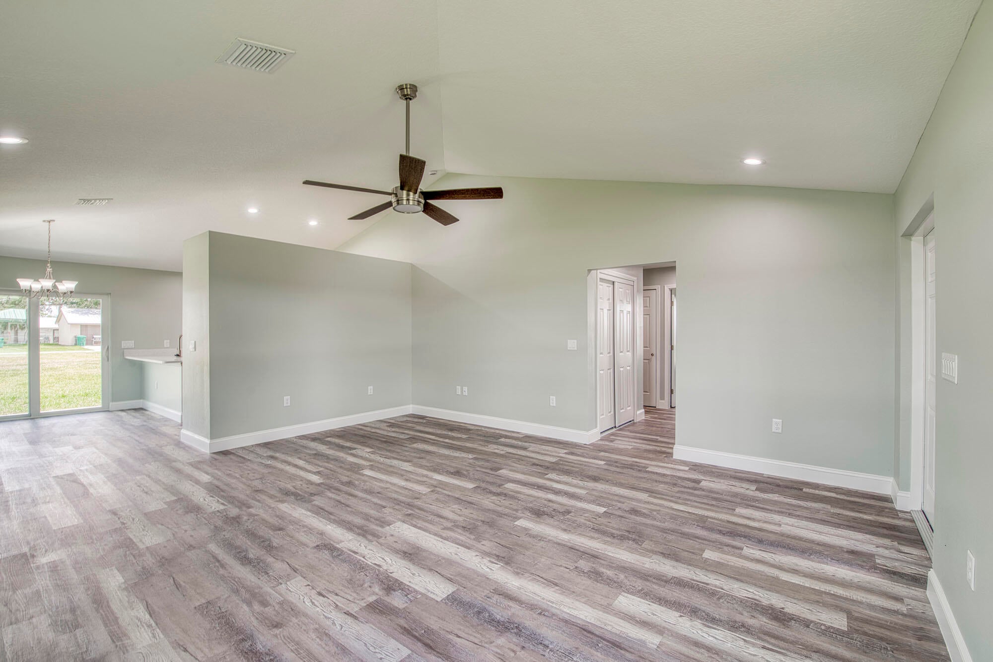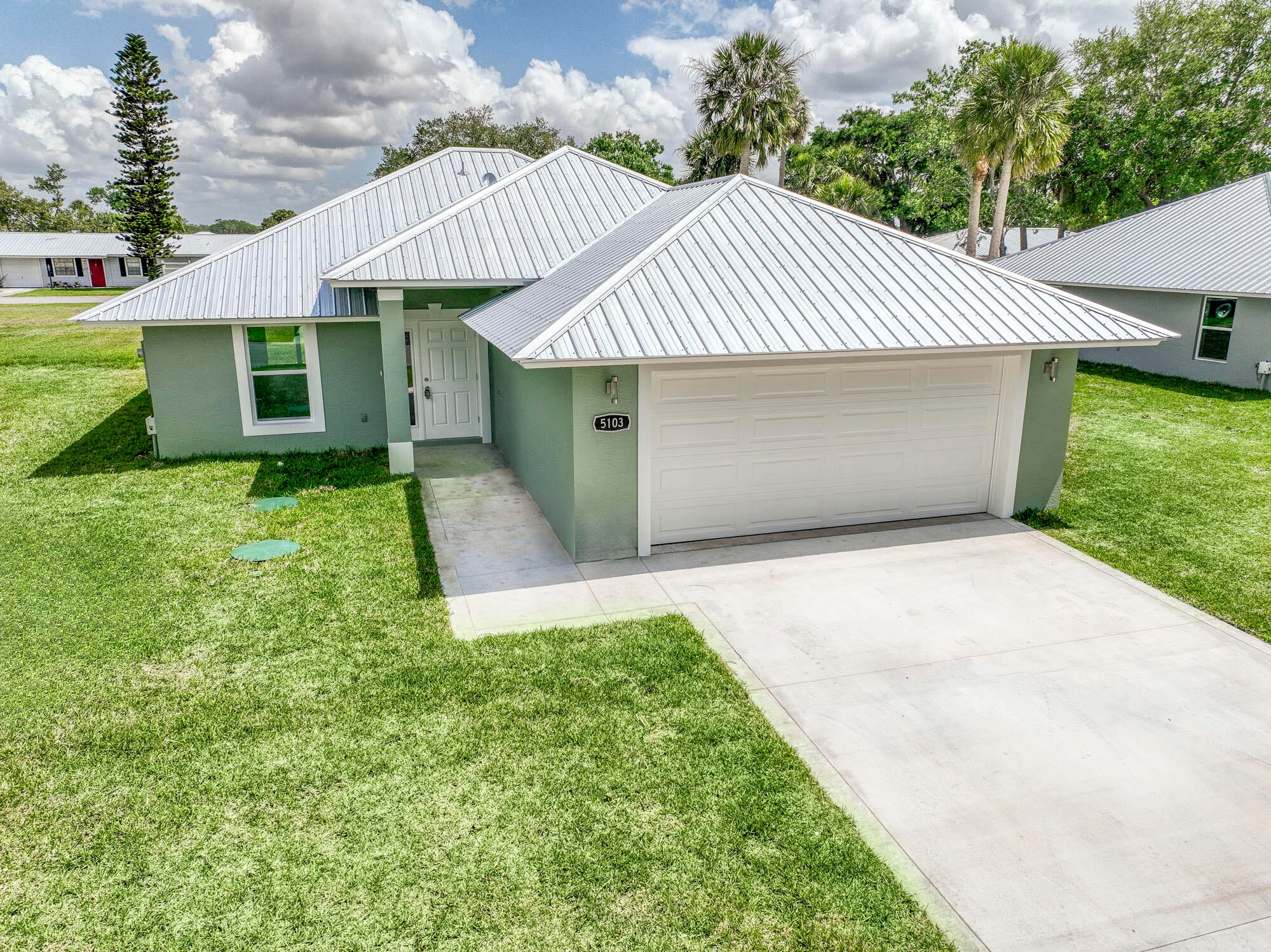 Welcome to this brand new gorgeous single-family home in the prestigious kings bay. This 3-bedroom 2-bath home features impact glass, a metal roof, luxury vinyl flooring, laundry room, and a 2-car garage. The kitchen features white custom cabinetry, neutral countertops, stainless steel appliances, recessed lighting, and crown moldings. The living/dining rooms are very spacious with beautiful luxury vinyl flooring, so much light, and impact sliding glass doors that open to entertain your generous sized backyard. The primary bedroom includes luxury vinyl flooring, fresh paint, impact glass windows, crown moldings, and a large walk-in closet with ample storage. The primary bathroom is gorgeous with white custom cabinetry, a beautiful vanity, and an oversized glass shower with stunningtile and tile flooring. The guest bedrooms are both spacious, light, and bright with luxury vinyl flooring, fresh paint, and impact glass windows. Kings Bay offers a community pool and tennis as well as a low hoa. **Seller Financing available.10% Down, 5 1/2% Interest, Seller will Hold for 2 Years.** This home is ready for you!