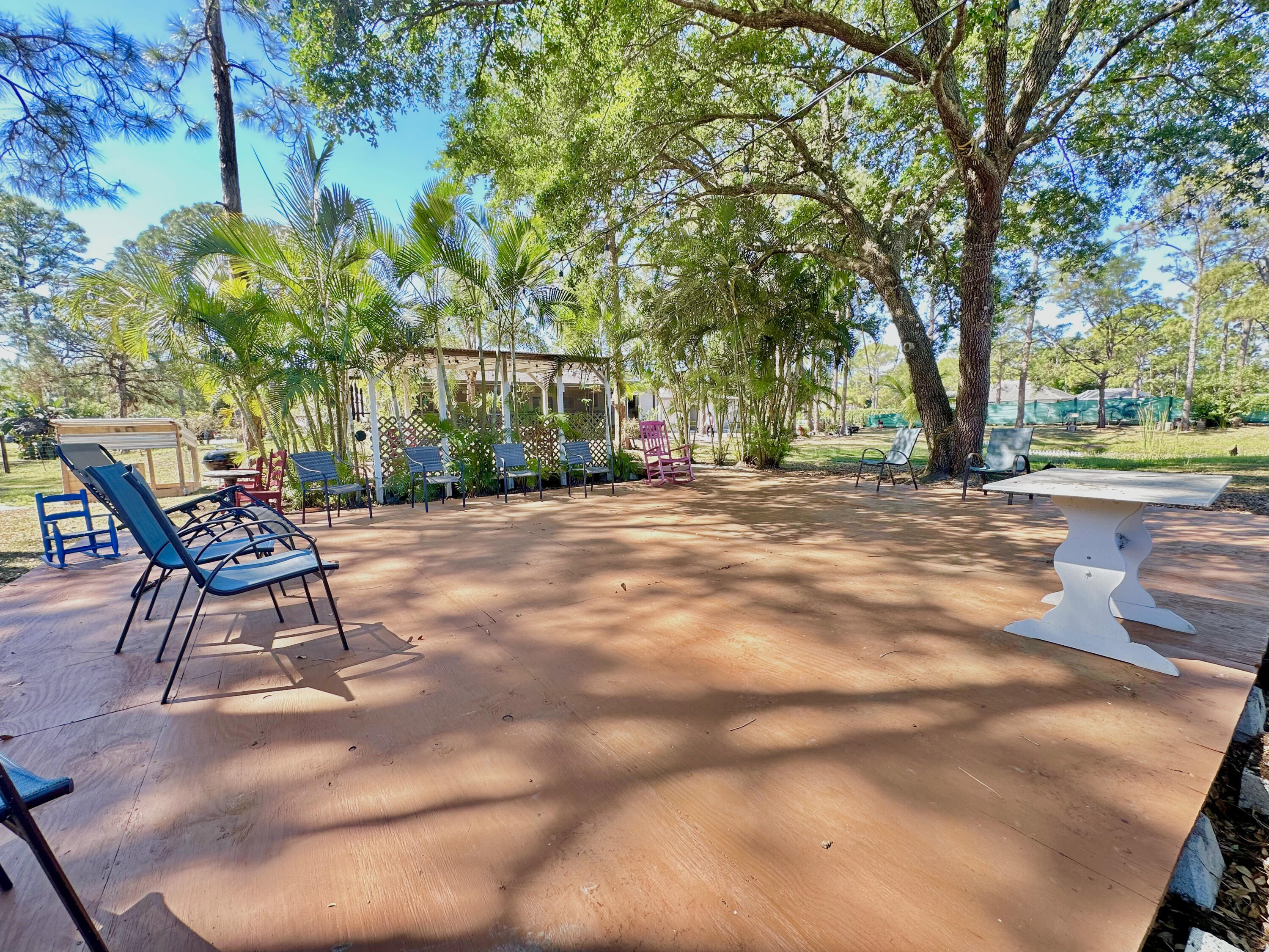 Escape to your private oasis on 1.32 acres at the end of a peaceful road! NO HOA! This stunning 3-bedroom, 2-bath home also features a separate 1-bedroom, 1-bath in-law suite/efficiency in a converted garage--perfect for guests or rental income. Impact windows throughout provide security and energy efficiency, while the charming country-style front porch welcomes you home. Step out back to a massive screened-in porch with a wood deck, ideal for entertaining or relaxing while overlooking the fully fenced backyard.Inside, the home boasts a beautifully updated eat-in kitchen with newer stainless steel appliances, a spacious formal living room, and a split-bedroom floor plan for added privacy.The circular driveway offers ample parking, and additional features include gutters, an alarm system, and modern upgrades throughout. Located near top-rated schools, parks, and just minutes from shopping, dining, and major highways, this home offers the best of both worldsseclusion and convenience. Don't miss this rare opportunity for acreage living in West Palm Beach!
