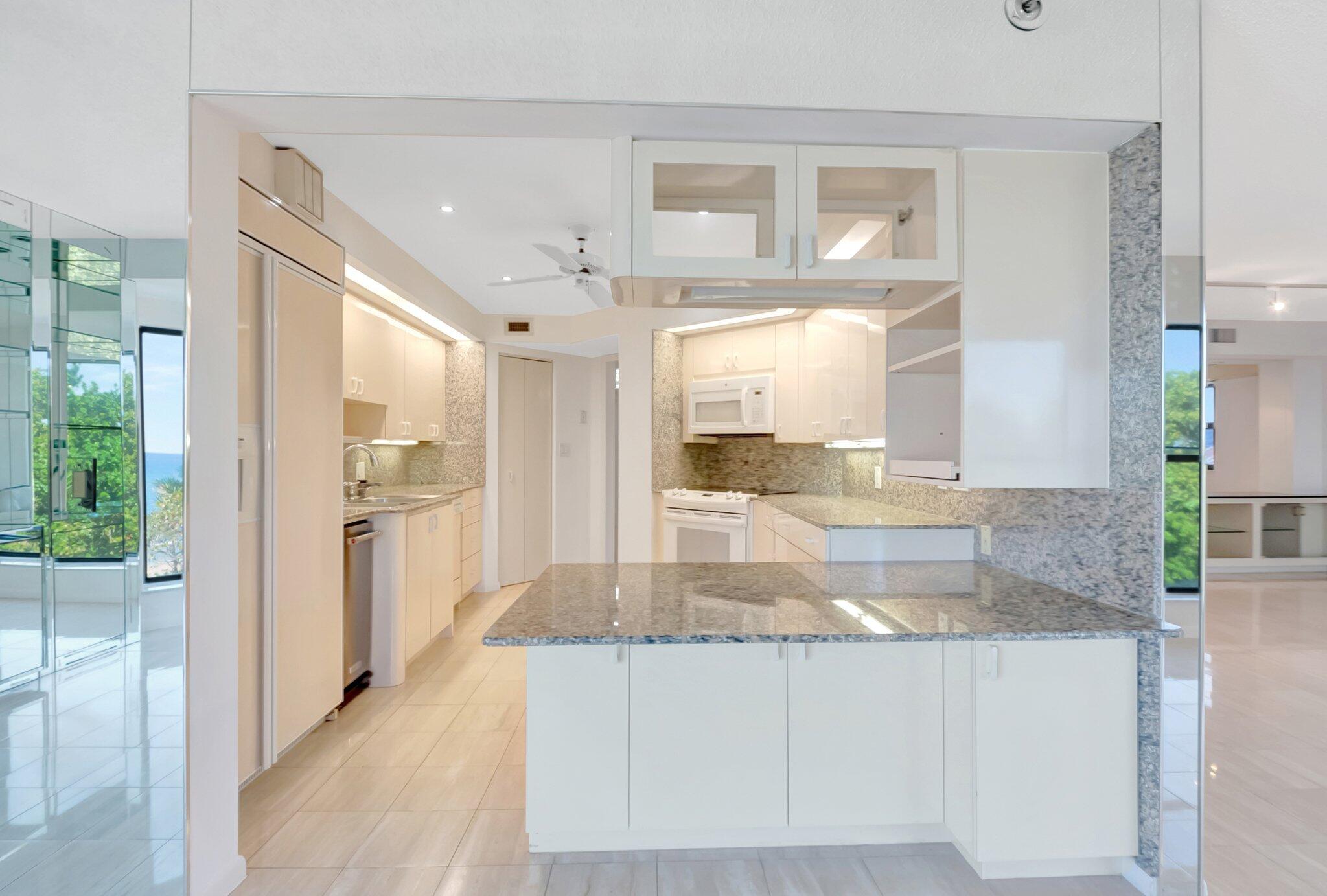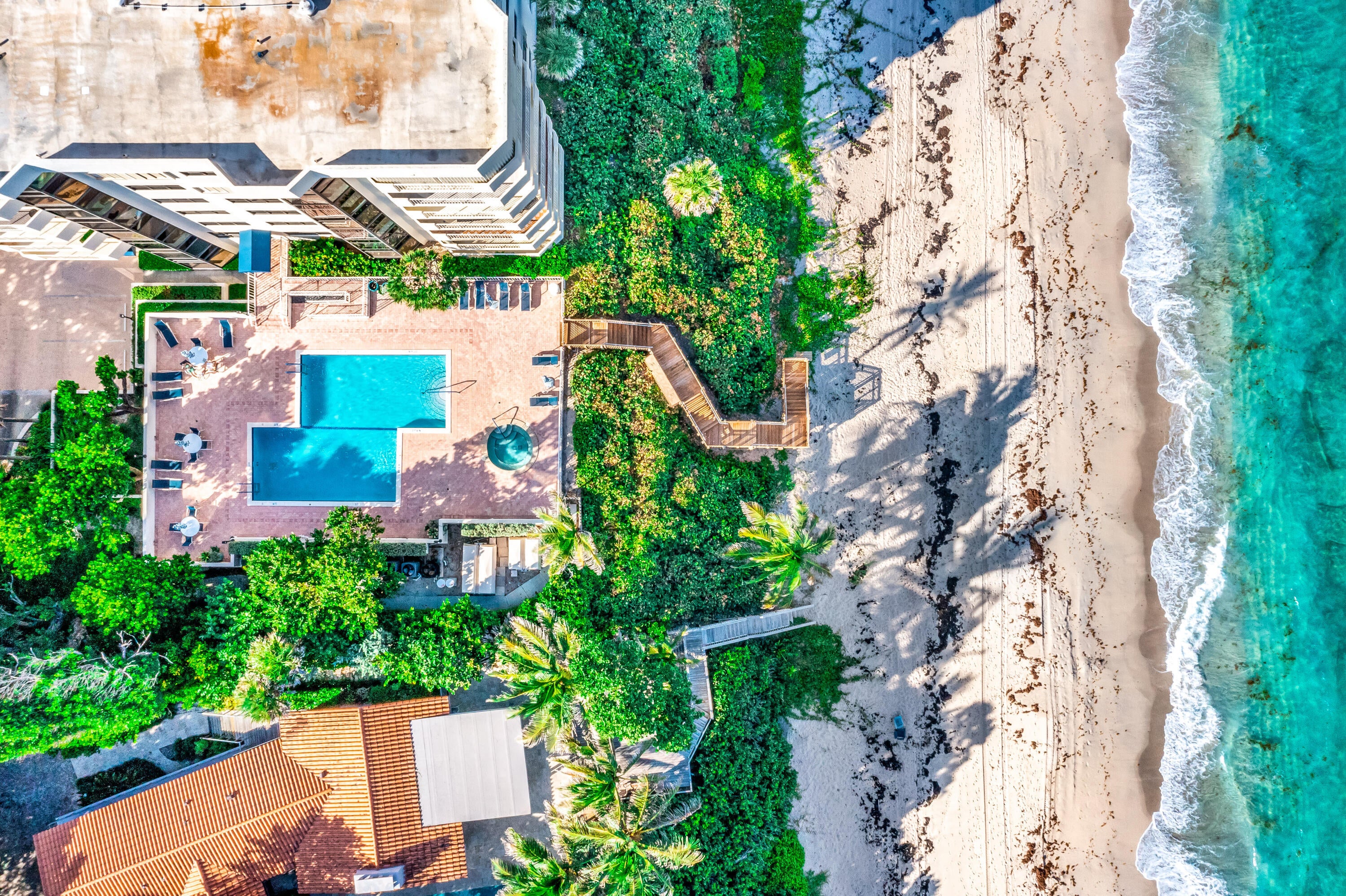 OCEAN VIEWS - OCEANFRONT BUILDING - PRIVATE BEACH ACCESS - SEPARATE GUEST SUITE WITH PRIVATE ENTRANCE FROM HALLWAY! NO ASSESSMENTS! 40-YEAR RECERT. INSPECTION AND CONCRETE RESTORATION COMPLETED - FUNDED RESERVES! This bright and airy 2,650 square foot CORNER condo with impact windows and doors, an open floor plan and a wrap-around balcony, offers stunning ocean views and a slice of tropical paradise in sought-after Highland Beach! With 3 bedrooms (one currently used as an office/den) and 3 full bathrooms, this is the ideal space for a full-time residence or vacation retreat. Whether you're hosting guests in the spacious living and dining areas or simply relaxing in the bedroom, the captivating ocean vistas will enchant you.Just walk down the steps, and you are on the beach! The expansive main bedroom suite features a large walk-in closet, a private bath with dual sinks, a Roman tub, and a separate shower, perfect for unwinding. A spacious guest bedroom with an en suite bath, walk-in closet, and private entrance from the hallway, offers guests comfort and privacy. The kitchen boasts granite countertops and backsplash, ample cabinet space, and a full-size pantry. The laundry room provides abundant storage and brand new washer and dryer, and there's a dedicated indoor garage space along with two additional storage rooms. The condo has been freshly painted and is ready for its new owner! Parker Highland is a classy, pet-friendly condo building (allowing two pets) with only 26 units providing private beach access and beautifully landscaped grounds. Enjoy the benefits of condo living with a sense of privacy and tranquility. This self managed, secure building with a doorman and 24-hour security, offers 400 feet of deeded beachfront, a newly renovated designer lobby, a state-of-the-art fitness center, a social room with pool, a grilling area, and an oceanfront dog park. From the heated oceanfront pool and hot tub area, you can enjoy views of the ocean and beach, embodying the best of Florida living. Upgrades, inspections, and full reserves have been completed, with all assessments fully paid. Conveniently located just minutes north of Boca Raton's vibrant downtown, with dining and shopping options, or head north on A1A to discover the excitement of downtown Delray Beach and Palm Beach! Seize the opportunity and make this coastal gem your own!