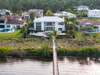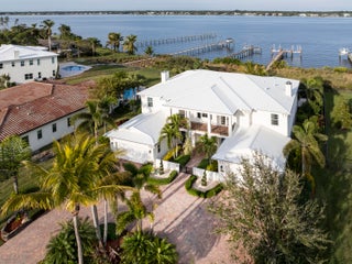 Experience waterfront luxury in this Riverbend original model home. Nearly 6,000 sq. ft., featuring 5 beds, 7.5 baths and a 4-car garage and Martin County schools. Enter through a grand French door entry into soaring ceilings, a double staircase, and a private elevator. The chef's kitchen boasts Sub-Zero & Wolf appliances, a Butler's pantry, and an oversized island. The great room offers breathtaking water views. The master suite includes a lavish bath & dream closet. Upper/lower porches have automated screens, a fireplace, & TV. Step outside to a private oasis with a saltwater pool, deep-water dock, and two 16,000 lb boat lifts. Nestled in a gated, dog-friendly community with sidewalks, a nature trail, and a gazebo. This exclusive estate is truly a masterpiece of waterfront living.