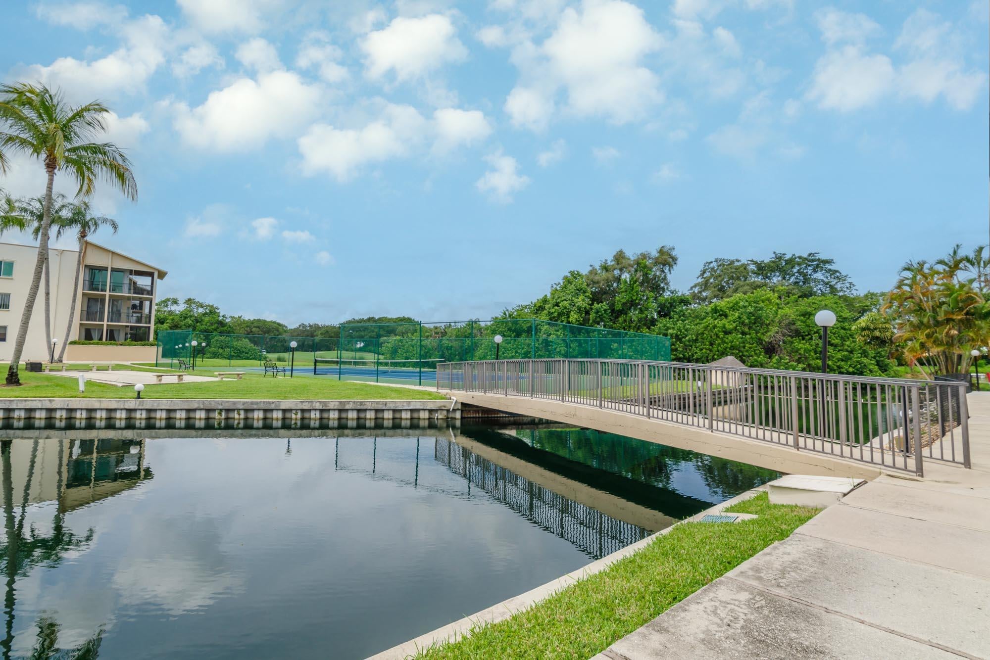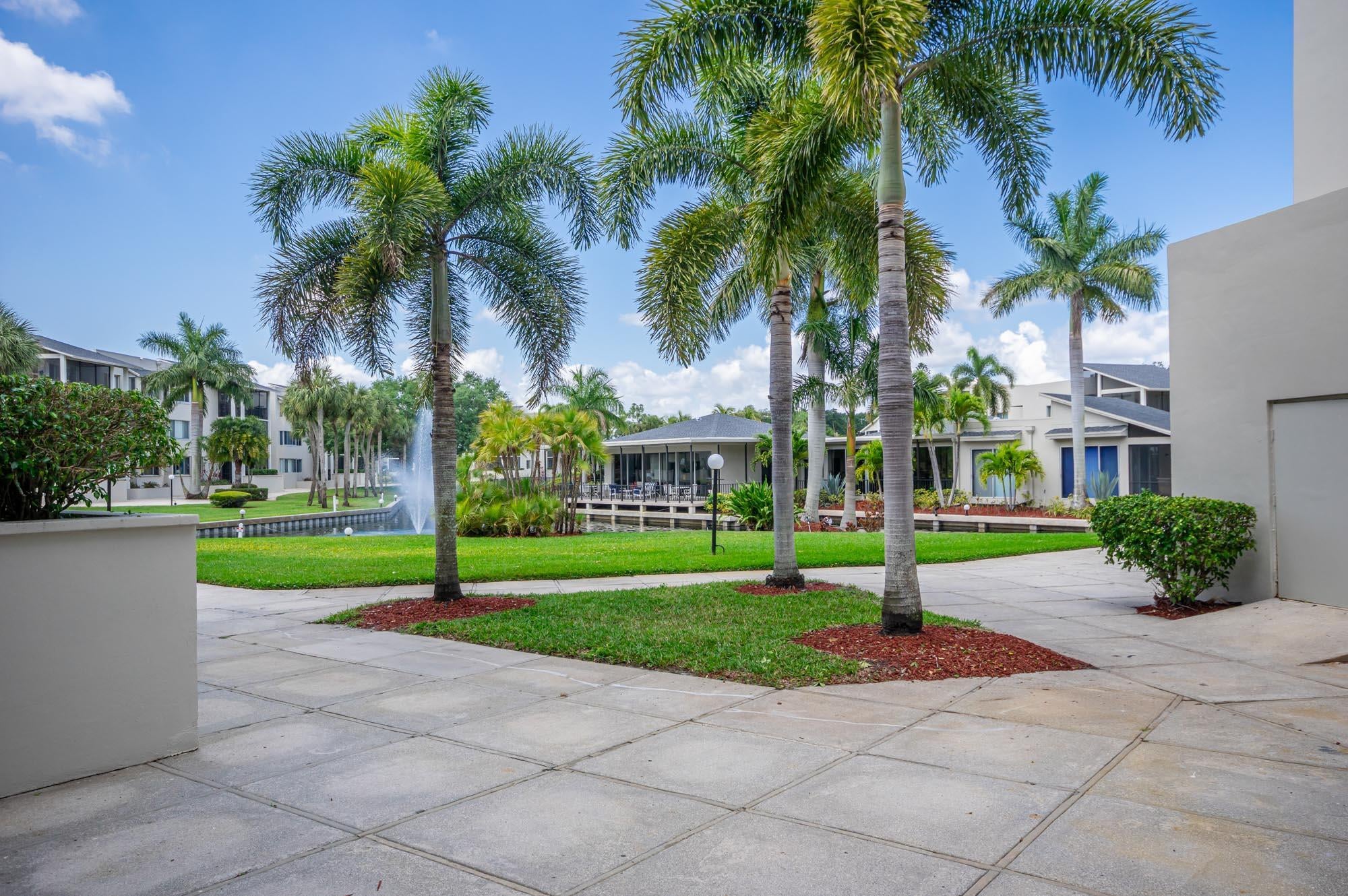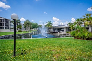 Welcome to this first-floor largest model 2BR/2BA condo located in the prestigious Longwood community. This condo features a pretty foyer with ceramic tile flooring and a decorative tile inlay to greet your guests. The kitchen features white wood cabinetry, tile countertops, and new luxury vinyl flooring. The living & dining rooms are very spacious with neutral carpeting and paint, and sliding glass doors that open to your beautiful and private wraparound screened porch overlooking water and plush garden views. The primary bedroom is very large with carpeting and sweeping palms to enjoy every day. Both bathrooms have been updated with new fixtures and vanities with granite countertops and tile flooring. This condo is light and bright, and the location is prime.The amenities at longwood include an active clubhouse, library, heated pool, tennis, card tables and a pavilion with grills and a bar. Assigned parking is included as well as accordion shutters. This 55 and up community is very friendly and a place you want to call home!