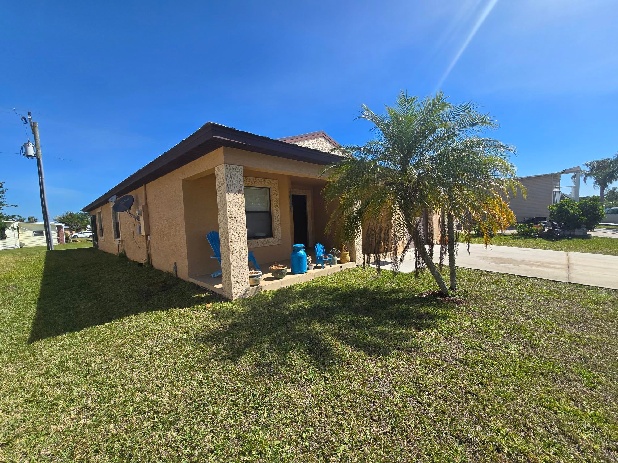 Spacious 2-Bedroom, 2-Bath CBS home in the desirable Spanish Lakes Country Club Village! Home does need some TLC. New Market Rent for new owner is $722.70. The home features laminate flooring, an upgraded kitchen with stunning granite countertops, and a 1-car garage for added convenience. The durable metal roof ensures peace of mind, while the Florida room offers a serene side view of the pond--perfect for relaxing and enjoying the peaceful surroundings. Some Photos do not reflect the actual home interior and are from a model home with same floorplan. The Amenities include: Heated Resident Pool & Guest Pool, Cantina/Club House Kitchen, Auditorium with Stage, Community Library, Lounge with Bar, Arts & Crafts, Billiards Hall, Gym & Sauna, Woodworking, & Card RoomOutdoor Recreation: 2 Designated Pickleball Courts, Par 3 9-hole Golf Course Lighted Shuffleboard, Tennis Courts, Horseshoes Bocci, Dog Park Total acreage - 330 Water/ sewer provided by Spanish Lakes Utilities