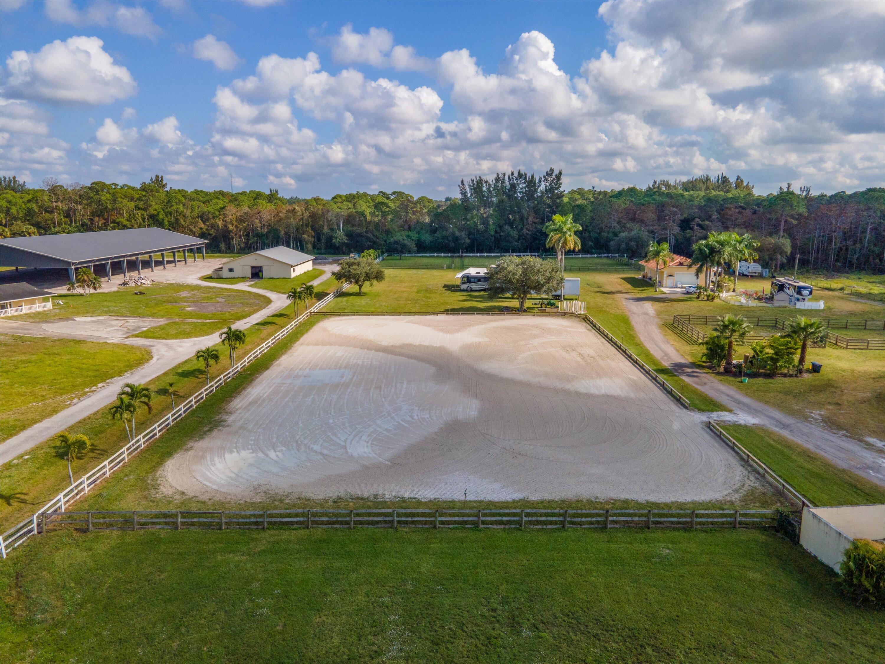 10 acre property features 22 stalls in a center aisle barn, 2 tack rooms, 2 feed rooms, 8 wash racks/grooming bays, fly spray system, WiFi and laundry facilities. The 120 X 240 sand arena is fully irrigated and there is a tractor and drag available.There is a 3 acre grass field for riding as well as 9 paddocks for turn out. The barn has a water filtration system and there are 5 - 50 amp camper hook ups. Gated with security cameras.CAN BE LEASED PER STALL - SMALL GROUPS WELCOME22 Stalls available @ $1200/stall/month for season and $1000/stall /month off season