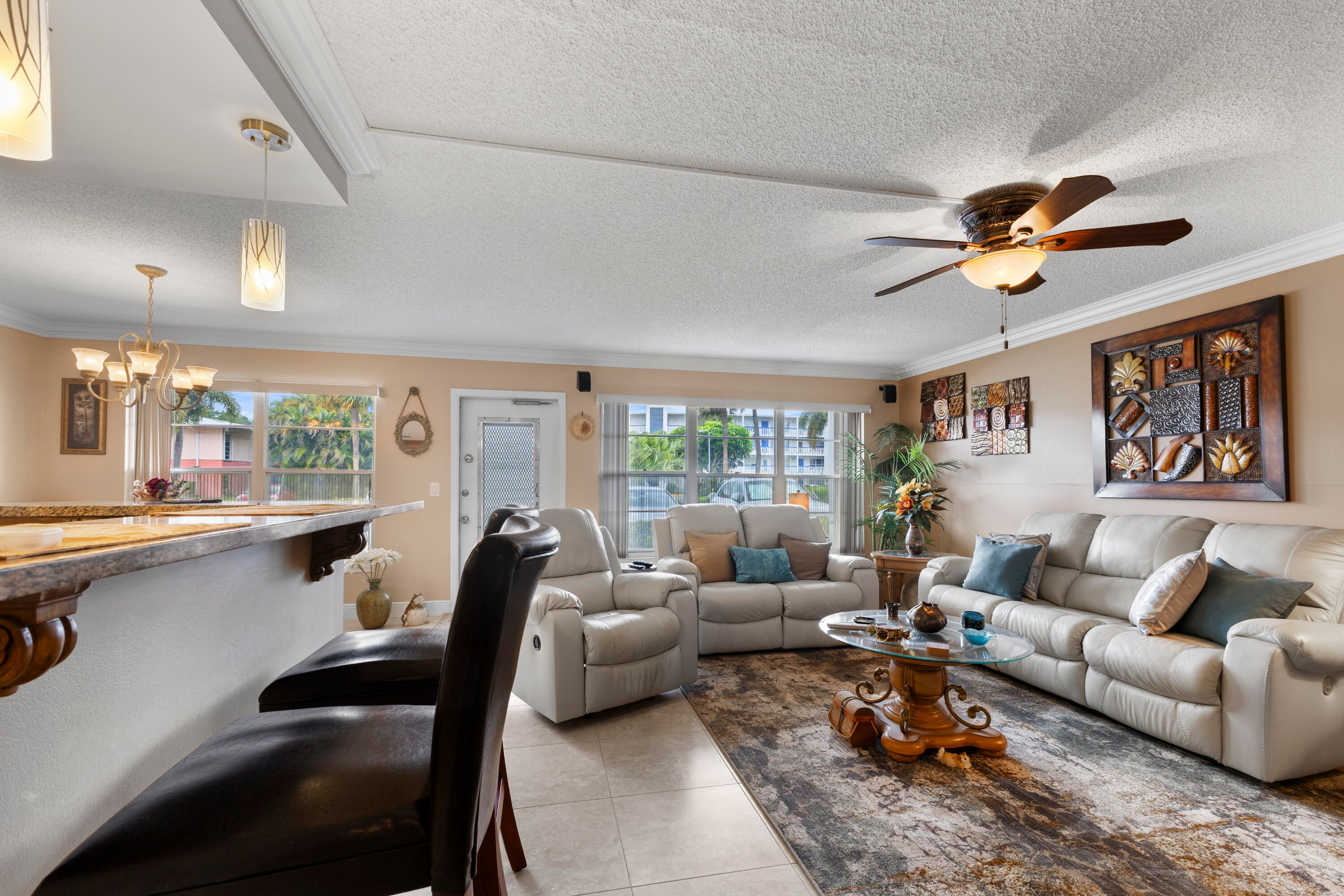 Discover effortless living in this charming, ground-level condo situated in the serene 55 plus community of Century Village in West Palm Beach. This delightful home has been completely updated, offering a modern touch throughout its spacious 1,114 square feet of welcoming interior. Enjoy the luxury of two substantial bedrooms and two full bathrooms, ensuring comfort and privacy for residents and guests alike.Step into the open kitchen, a true centerpiece, boasting sleek updates and ample space for culinary exploration. The living area flows seamlessly from the kitchen, highlighted by beautiful floor tiles that add a touch of elegance to everyday living.This unit is not just about aesthetic appeal but also practical updates, including a new roof that promises peace of mind. As a bonus, the location couldn't be better. Enjoy proximity to essential amenities; a short jaunt to Oxbridge Academy, Brothers Farmers Market for your grocery needs, and Old Trail Park for a touch of nature. Plus, the nearby bus station adds convenience to your daily commutes. Century Village itself offers a vibrant community lifestyle with numerous amenities that cater to active adults. Whether you're indulging in a new hobby or simply enjoying the Florida sun, this condo is an excellent place to start your next chapter. Embrace a life of comfort and convenience in a community that's designed just for you. Make this beautiful condo your new home and experience living the way it's meant to be - carefree and joyful!