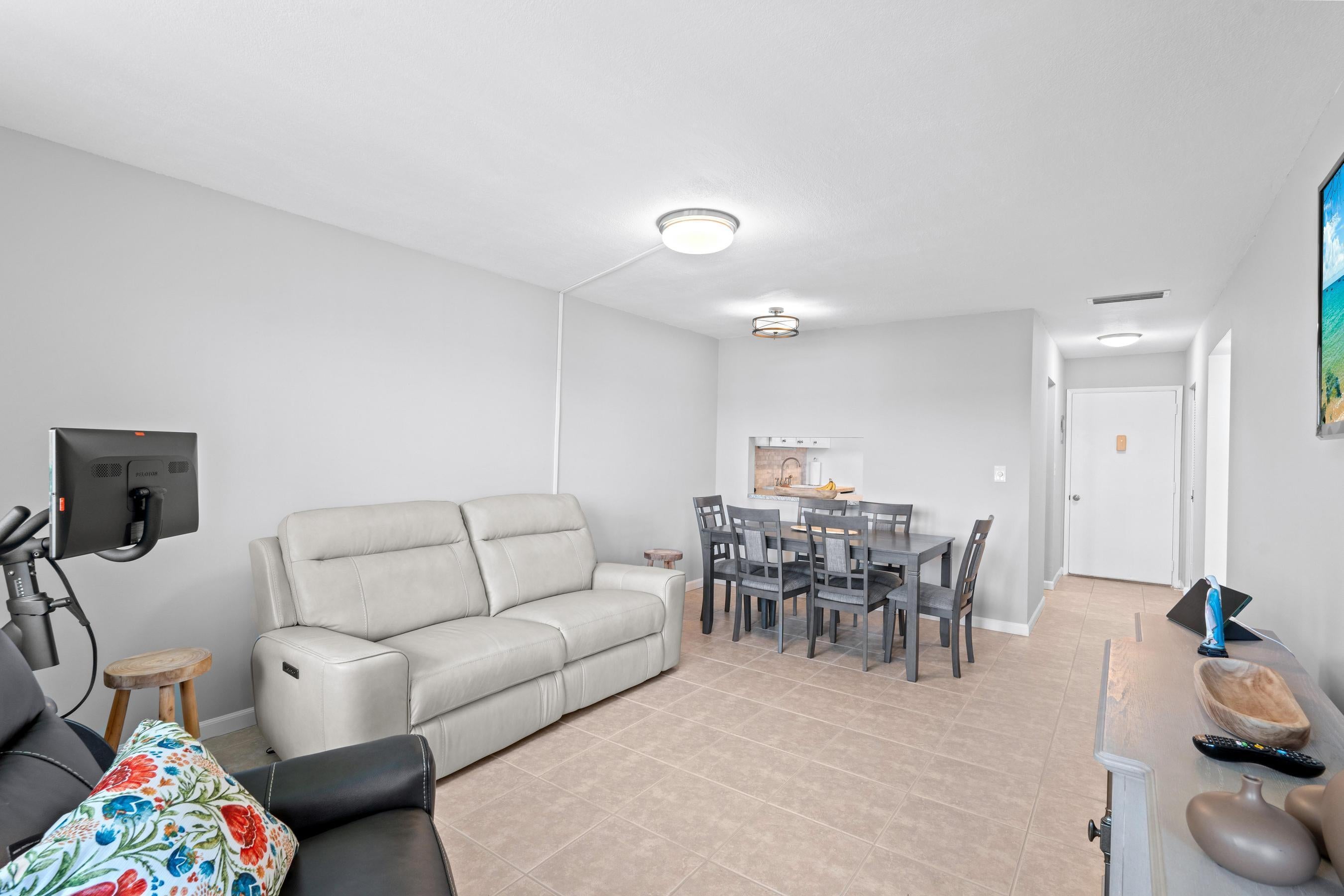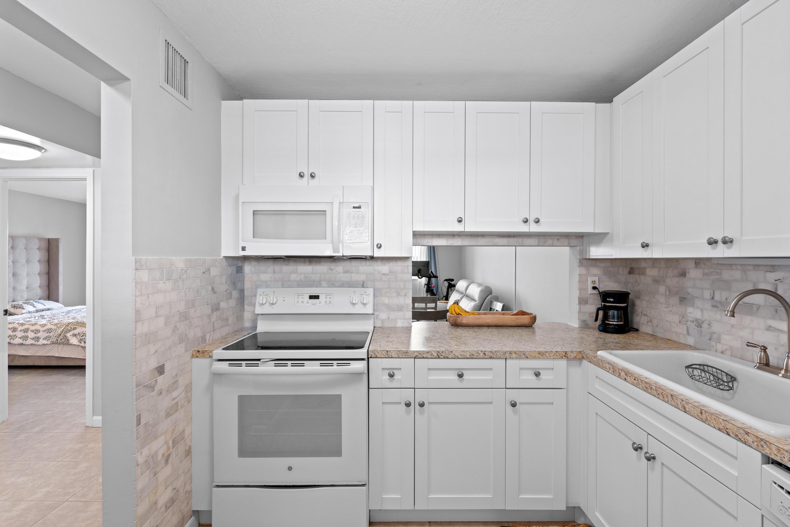 Beautifully updated 1 bed/1 bath unit located on the top floor. This charming, light, bright condo features: new a/c unit (2022), new hot water heater (2022), new electrical panel (2022), partially impact windows; updated kitchen with new cabinets, tile floors throughout, updated bathroom, private balcony in a tropical setting and a private storage closet located next to the unit for easy access. This active 55+ community offers lots of amenities and activities: bus transportation, clubhouse with an auditorium, billiards, a card room, library, two pools, fitness center, putting green and scheduled community social events. The community is in a desirable central location just minutes from the beach, and downtown with lots of restaurants and shopping.