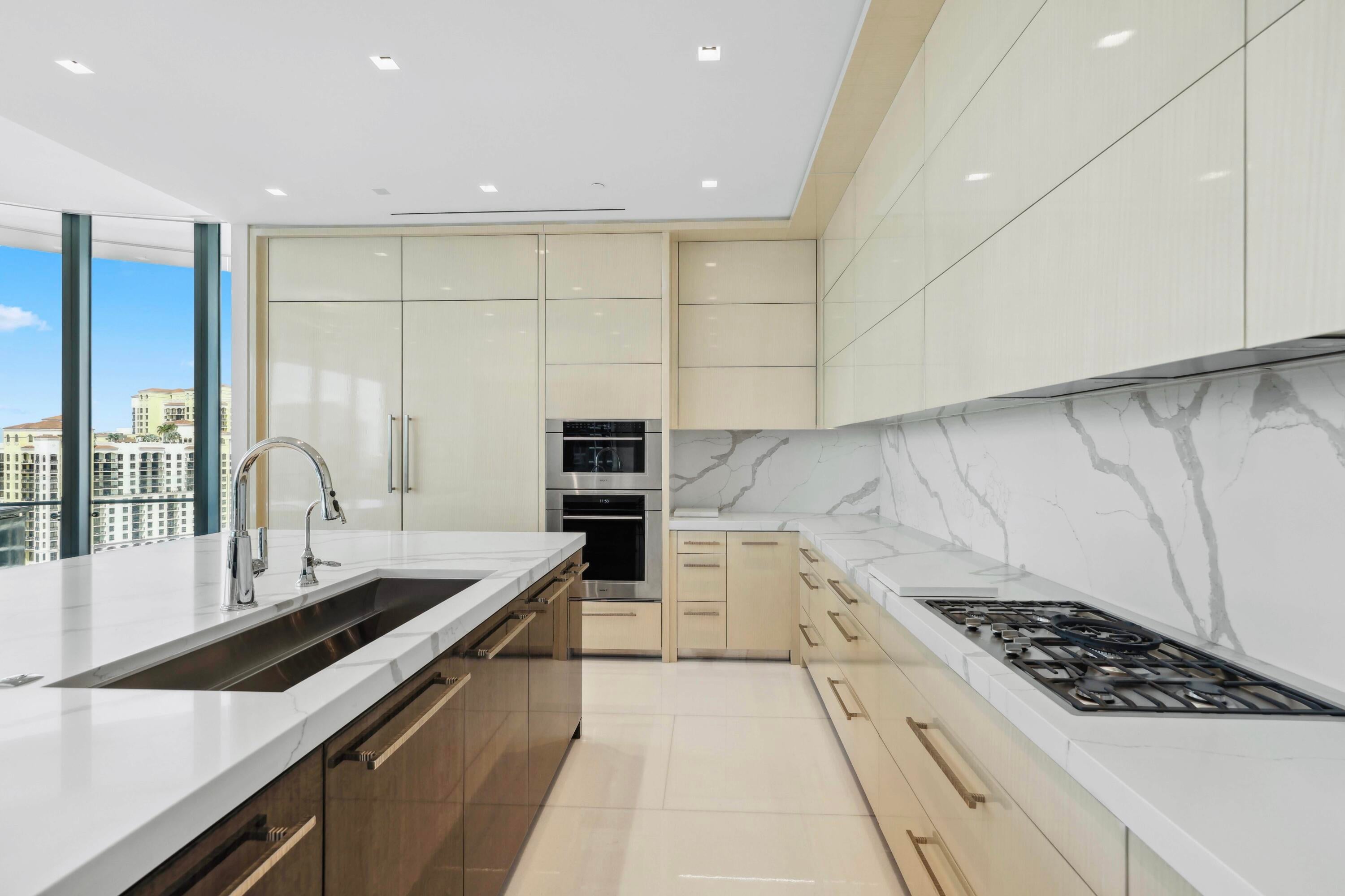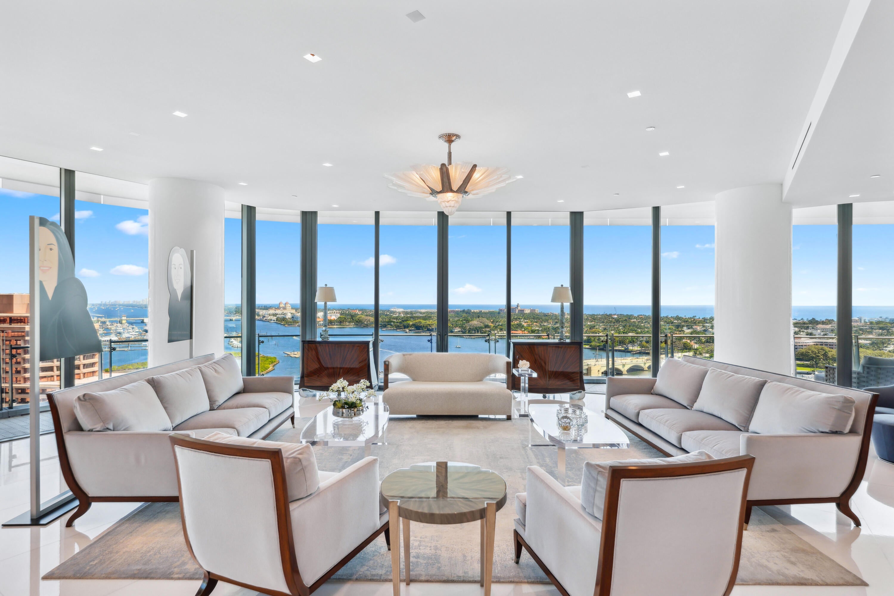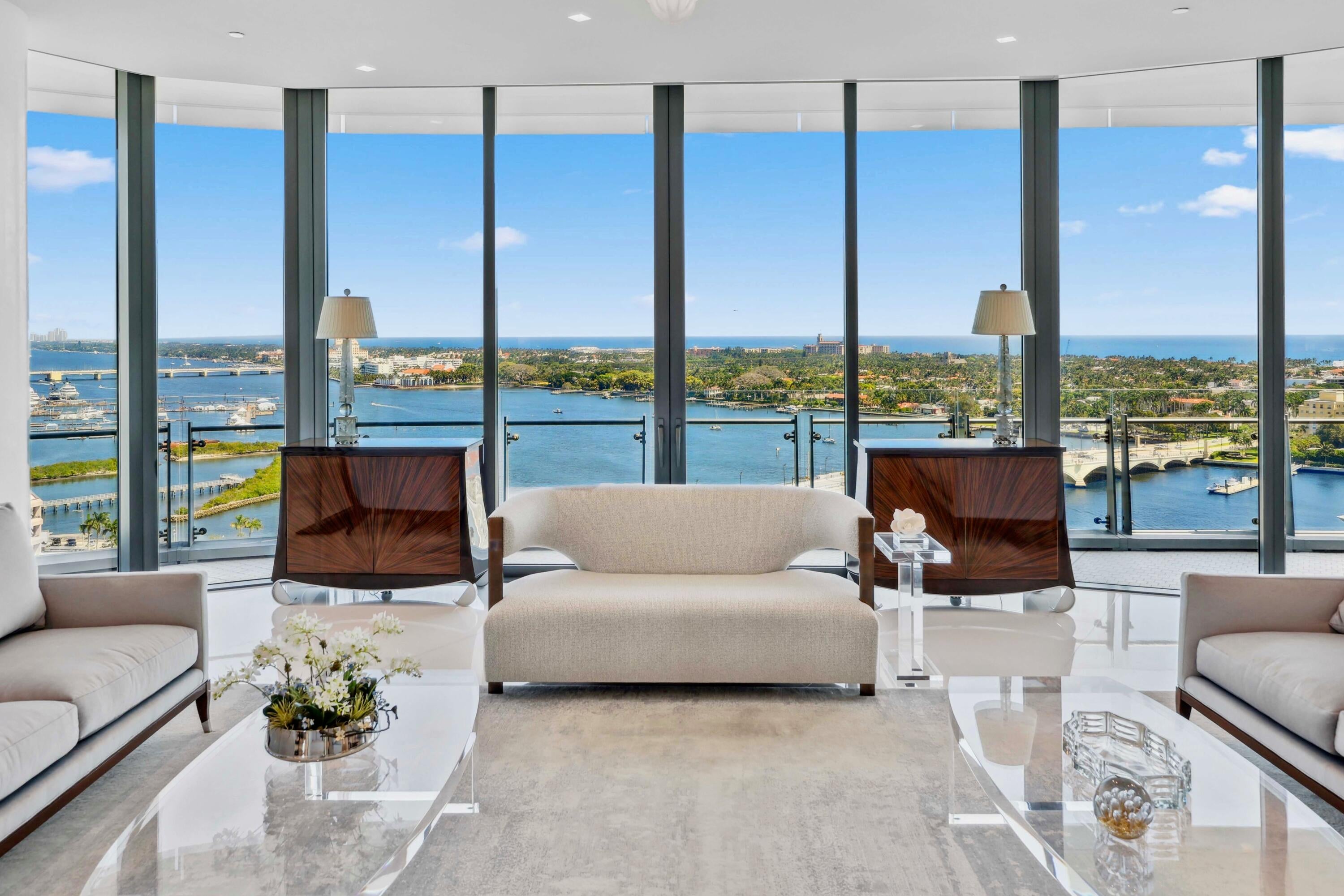 THE ONE YOU'VE BEEN WAITING FOR!! An extraordinary completely custom one-of-kind residence including a rare private garage designed for 3 vehicles. An elevated architectural masterpiece designed for those who demand the finest. This contemporary 4-bedroom, custom built by Shapiro Pertnoy, includes a substantial waterfront office and an abundance of light-filled entertaining areas that span an impressive 5,544 interior sq ft. Experience the grandeur and comfort of your own private estate within the most exclusive ultra-luxury building in Palm Beach County. An exquisite primary suite features unrivaled ocean & Intracoastal views which can also be admired from each of the two bathrooms surrounded by marble ceilings, walls, & floors. The dual oversized & elegantly appointed dressing roomdefinitely do not disappoint. The gracious and thoughtfully designed kitchen consists of Miele and Wolf appliances gas and induction cooktop, dual ovens, steam oven, dishwasher, refrigerator drawers and 2 spacious pantries. Conveniently located between the kitchen and formal dining area, you will discover a beautiful meticulously curated bar and a hidden wine fridge. Expansive 11-ft floor-to-ceiling glass surrounds the entire residence, seamlessly blending indoor and outdoor living while taking in breathtaking panoramic views and the yachts at the Palm Beach Marina. A sprawling 1,500-sq ft wraparound terrace provides the ultimate retreat for entertaining or relaxation. A state-of-the-art air and water filtration system with UV purification ensures a healthy living environment, while a thoughtfully customized private storage closet near the service entrance enhances convenience and organization. The Bristol offers a truly exceptional lifestyle, including the most impressive 5-star amenities and special attention to detail including on-site professional concierge, two spas, a cold plunge, beauty salon, waterfront fitness center, 75-ft swimming pool, club lounge, and indoor/outdoor dog park (pet friendly). Three house vehicles equipped with a driver, gated entrance, valet and front desk both available 24-hours. Just moments from Palm Beach Island, the world-renowned Worth Avenue, premier private aviation, Palm Beach International Airport, and the exclusive Palm Beach Marina. This is not just a home, it is a lifestyle and a statement of sophistication and prestige.