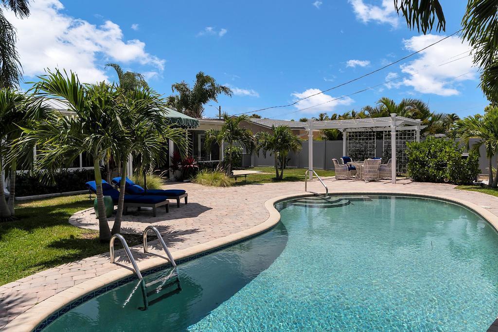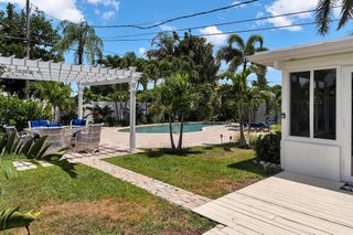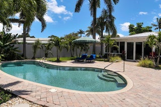 Sunny Bermuda style one story house with open floor plan one block from intracoastal in the heart of the College Park neighborhood in Lake Worth Beach. Spacious 3 bdrm/2 bath completely renovated, including metal roof, complete impact windows and doors, updated appliances and tankless water heater. Large windows and doors provide natural light throughout, opening to saltwater, free-form pool and patio, in private, fully fenced stylishly landscaped backyard. Just minutes away from golf, beaches, restaurants and culture.