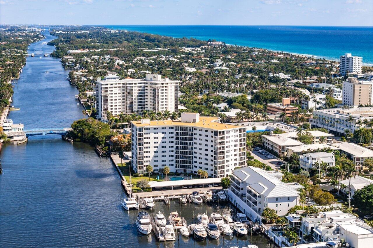 A MUST SEE: Bar Harbour is ideally situated just 1 block from Atlantic Ave and 2 blocks from the shores of the Atlantic Ocean. This exceptional 2-bedroom, 2-bathroom condo is in pristine, MOVE-IN condition, offering breathtaking views of the Intracoastal Waterway and the Atlantic Ave bridge. The unit features a sophisticated, transitional design with an open-concept kitchen, snack bar, and formal dining area, all with captivating water views. Bar Harbour offers an array of amenities, including fitness center, library/reading room, a rentable guest suite, a beautifully renovated social room, and a lobby. The sparkling pool overlooks the Intracoastal Waterway, providing a serene retreat. Additionally, an on-site manager and 24/7 front desk service ensure convenience and peace of mind. MOREYour HOA fee covers high-speed fiber optic internet, water, and a host of other services, making this a truly hassle-free living experience. Perfect for those with discerning tastes and a desire to be close to everything, this property is a must-see!