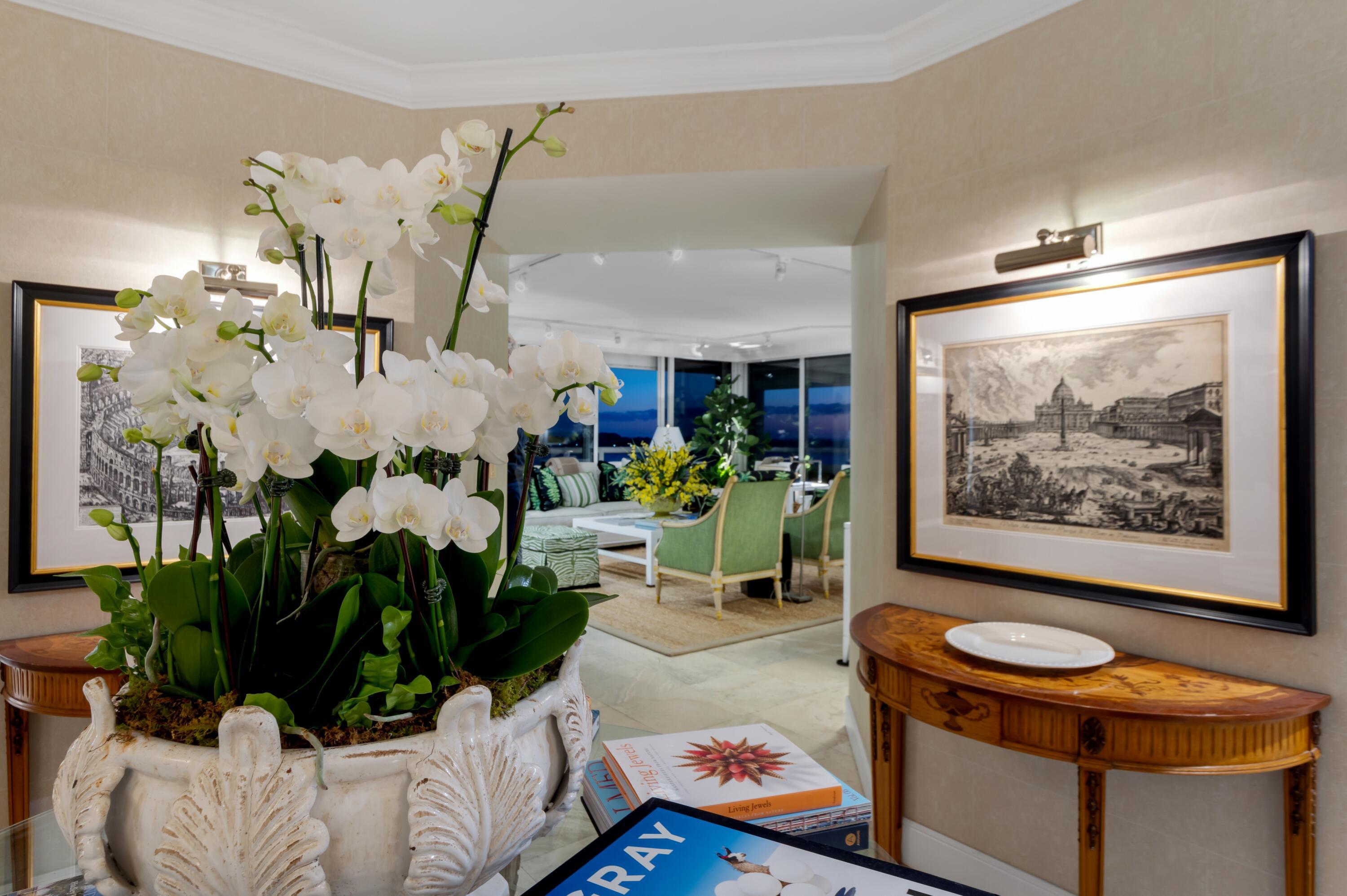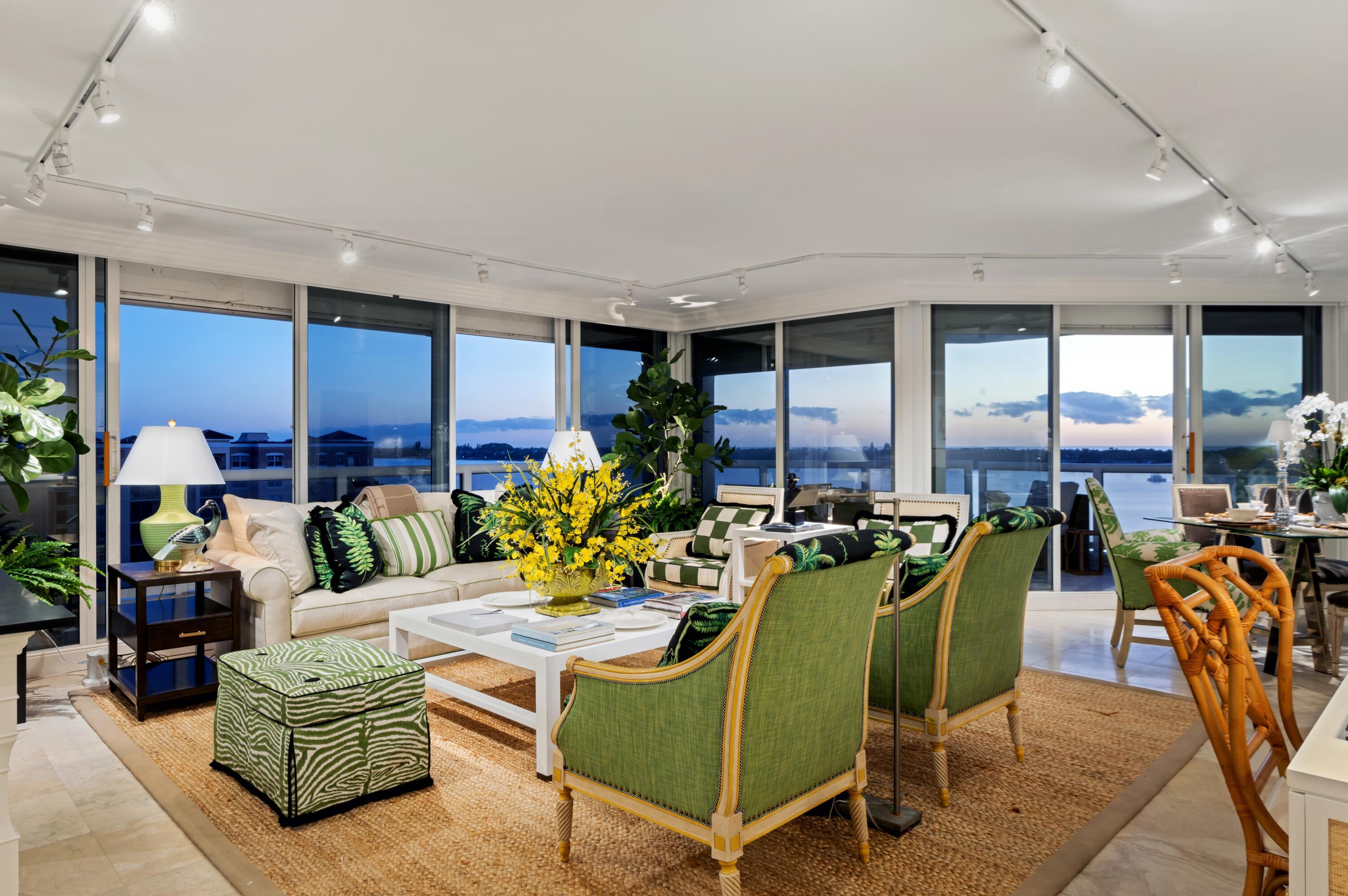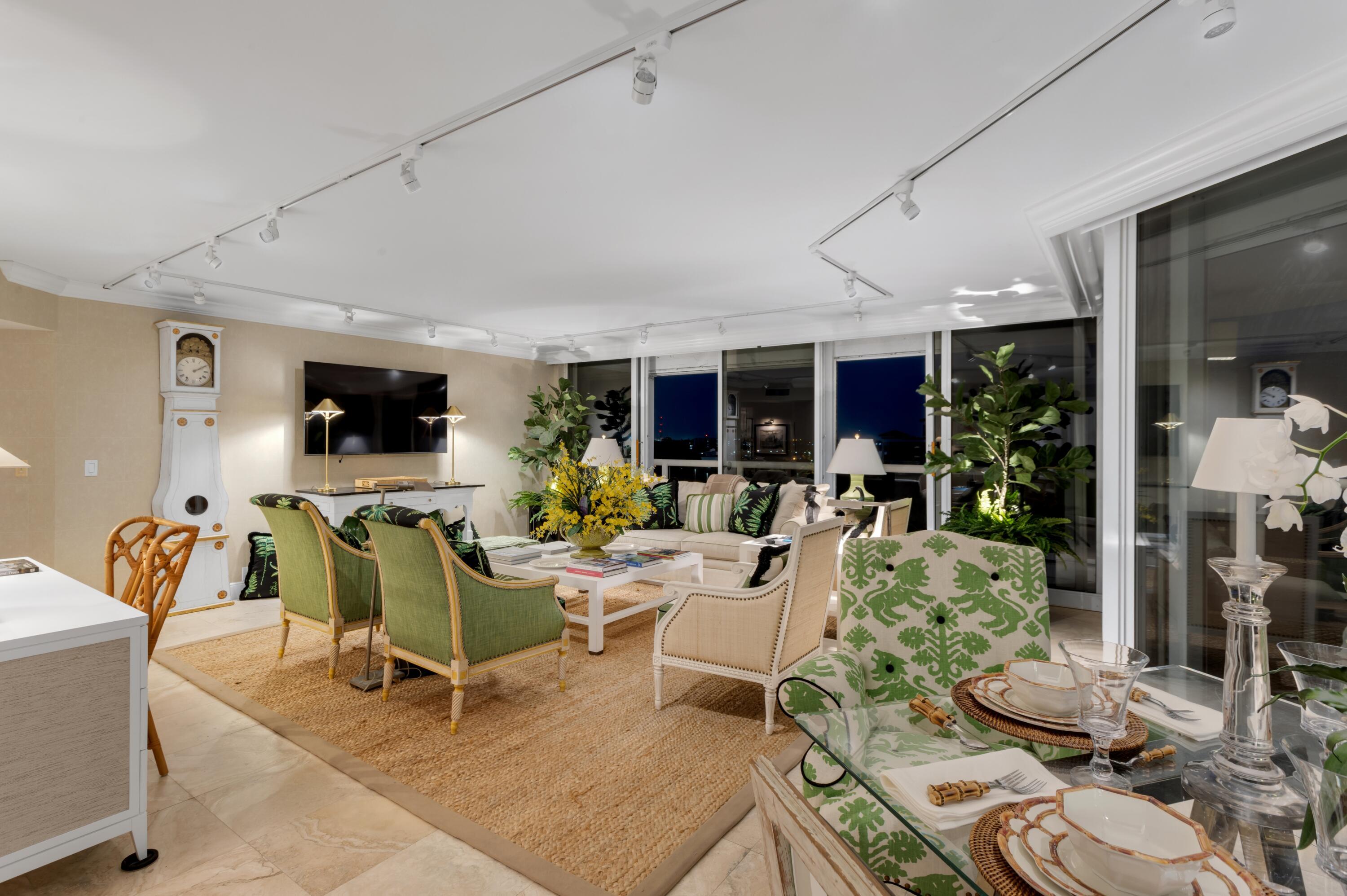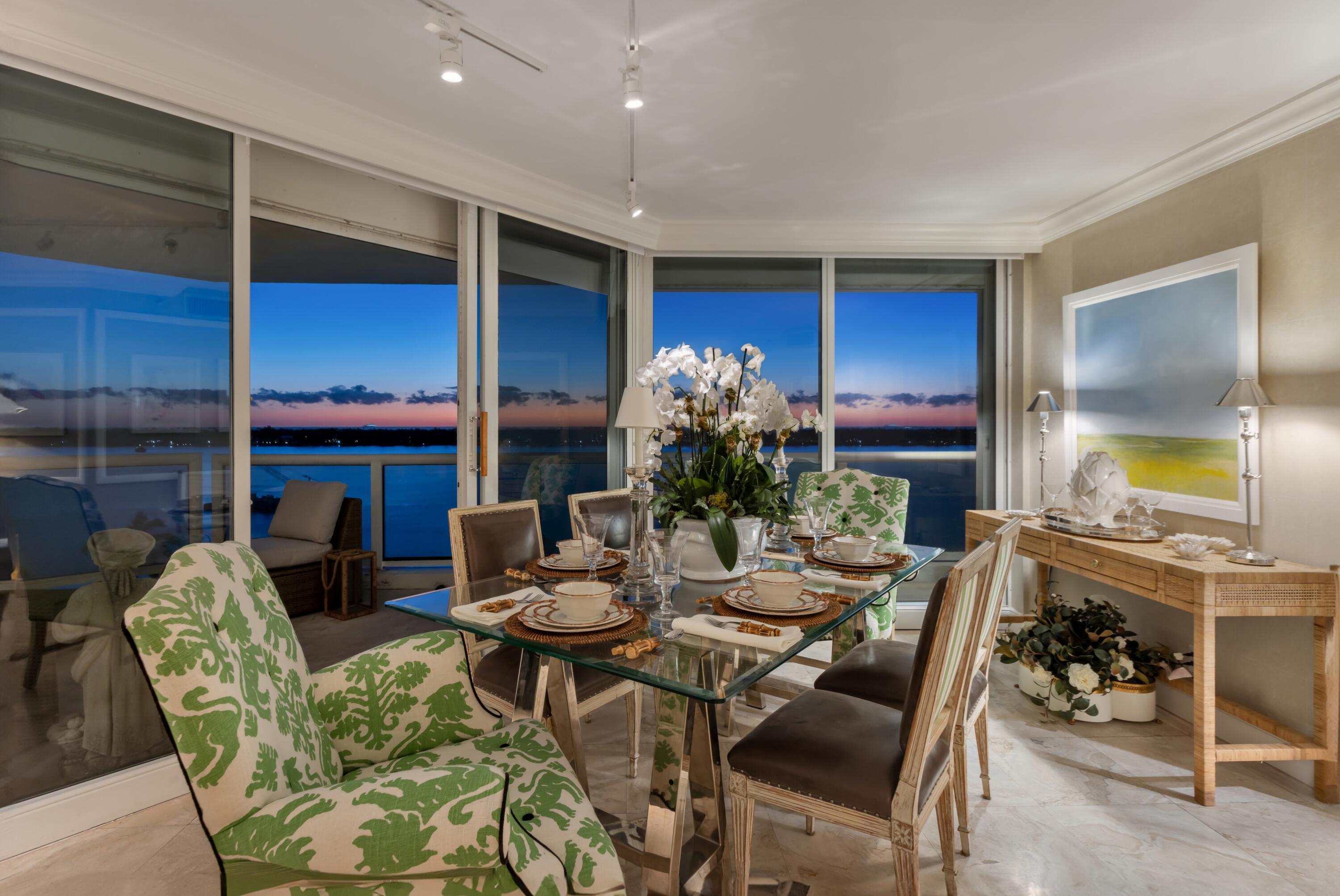 LOCATION: 1617 North Flagler Drive, 10B  West Palm Beach, Florida: Exclusive Villa Del Lago, a 12-floor residential tower with two units per floor ensuring a high degree of privacy, is situated along the Intracoastal Waterway at the doorstep of tony Palm Beach. Amenities of this resort-style building include an elegant club room, state-of-the-art fitness center and business center, with white-glove services that include 24-hour door personnel. PROPERTY: Offering an array of options for relaxation and leisure, residents of Villa Del Lago enjoy two sundecks, each with pools, along with saunas, a covered outdoor dining loggia with barbeque facilities, and lush garden terraces.RESIDENCE: A serene haven that lives like a private residence with only two units per floor, this Villa Del Lago gem is introduced by a semi-private elevator vestibule leading to an artful gallery that unfolds out to the elegant living and dining areas. Encompassing a chic cosmopolitan aesthetic with two-bedroom suites and boasting 1,900 +/- square feet, this masterpiece offers an open floor plan/split bedroom layout with interiors featuring entire walls of glass sliding doors that access the glass-railed wraparound balcony overlooking unparalleled views of Lake Worth, Palm Beach Island and the ocean. Refined finishes and decorator touches throughout include stone and tile flooring, decorator lighting, attractive wall coverings, and fine woodwork. The gourmet kitchen, with a breakfast area, showcases sleek modern cabinetry, high-end appliances and granite counters and backsplashes. The spacious primary bedroom suite includes a spa-inspired bathroom appointed with dual vanities, stone counters, bidet, whirlpool tub, shower and closet. Along with the guest bedroom which has an en-suite bathroom with a shower, completing the overall floor plan are a laundry room and half-bath, while coming with this residence is garage parking for two cars.