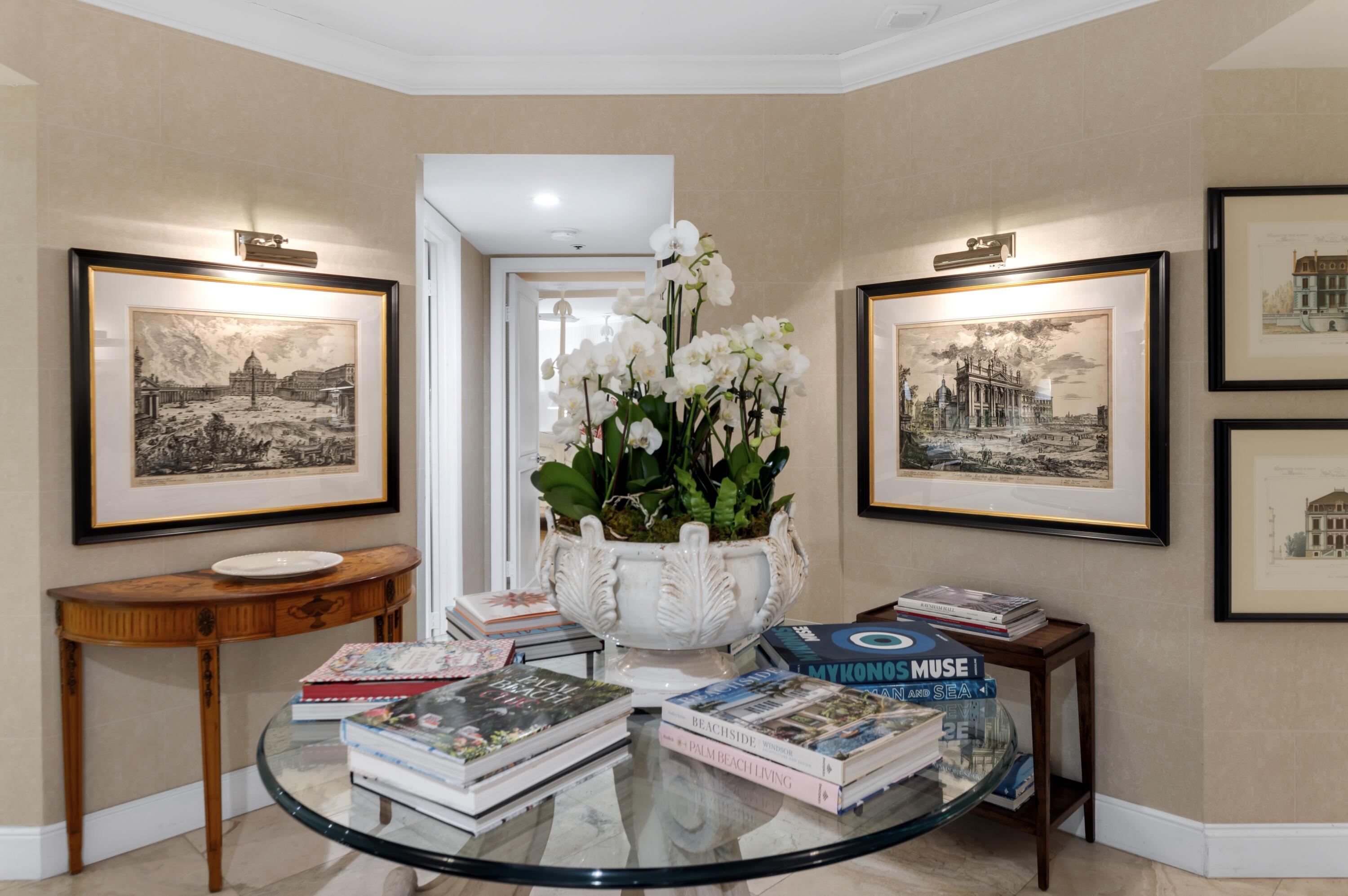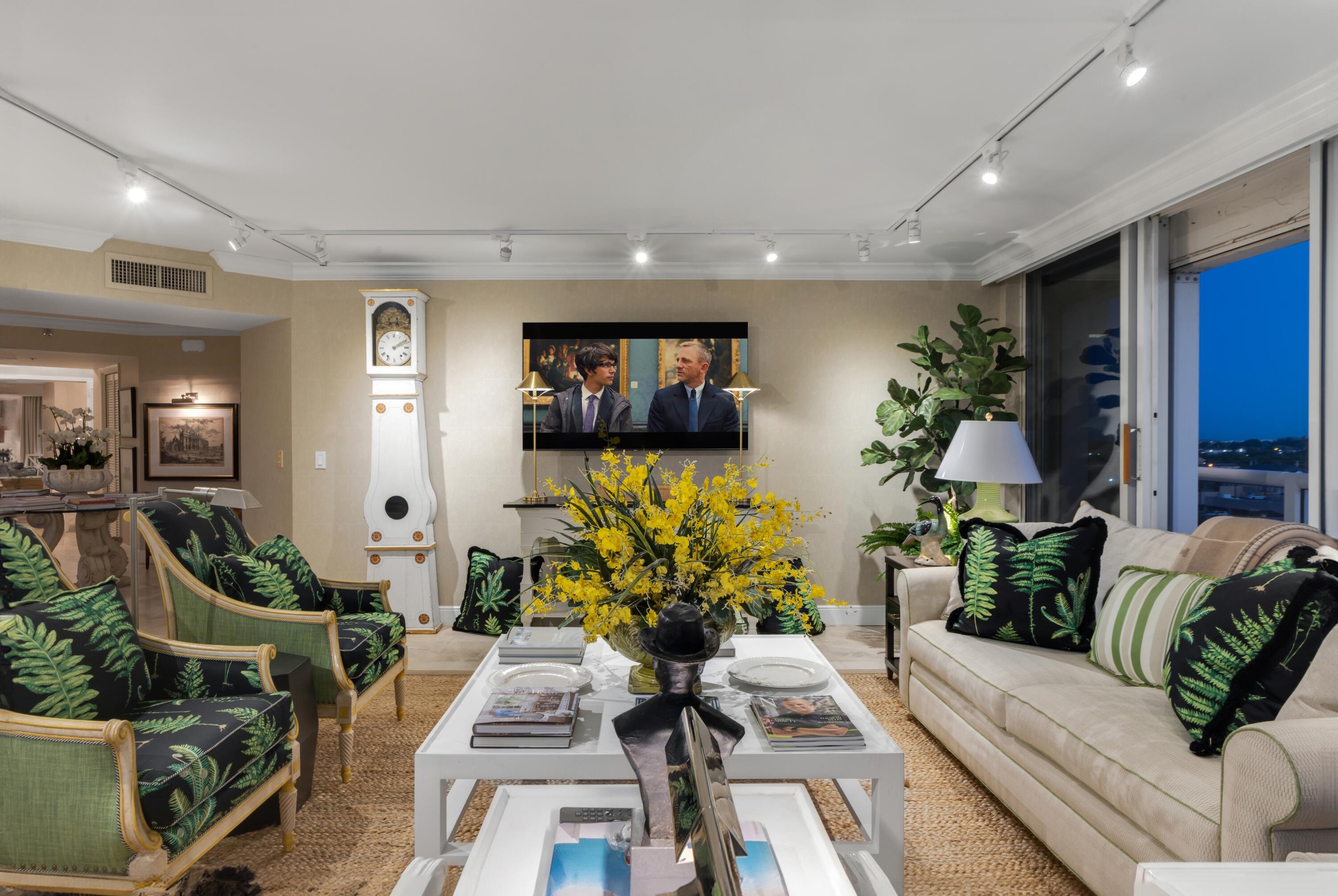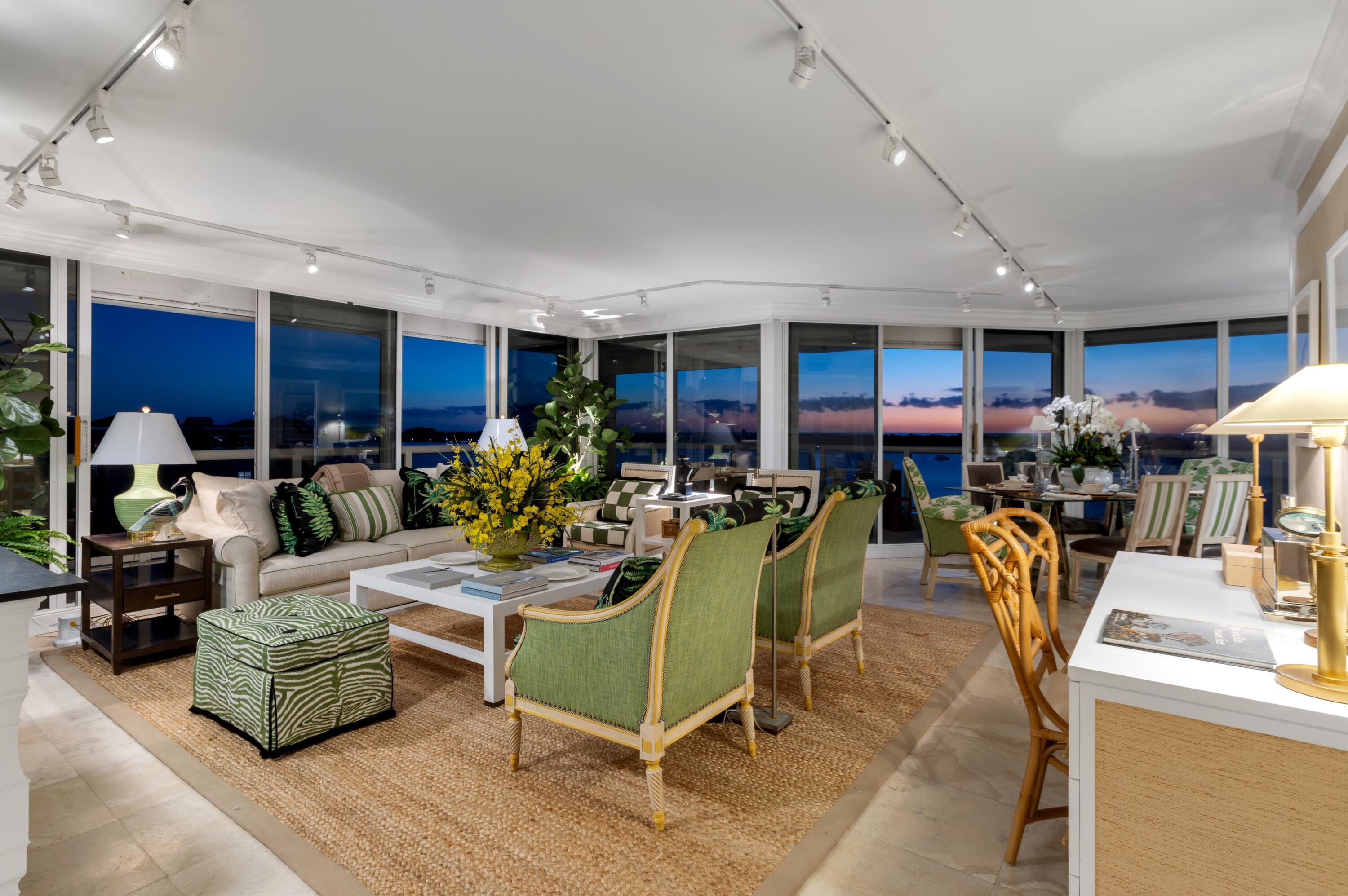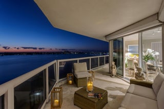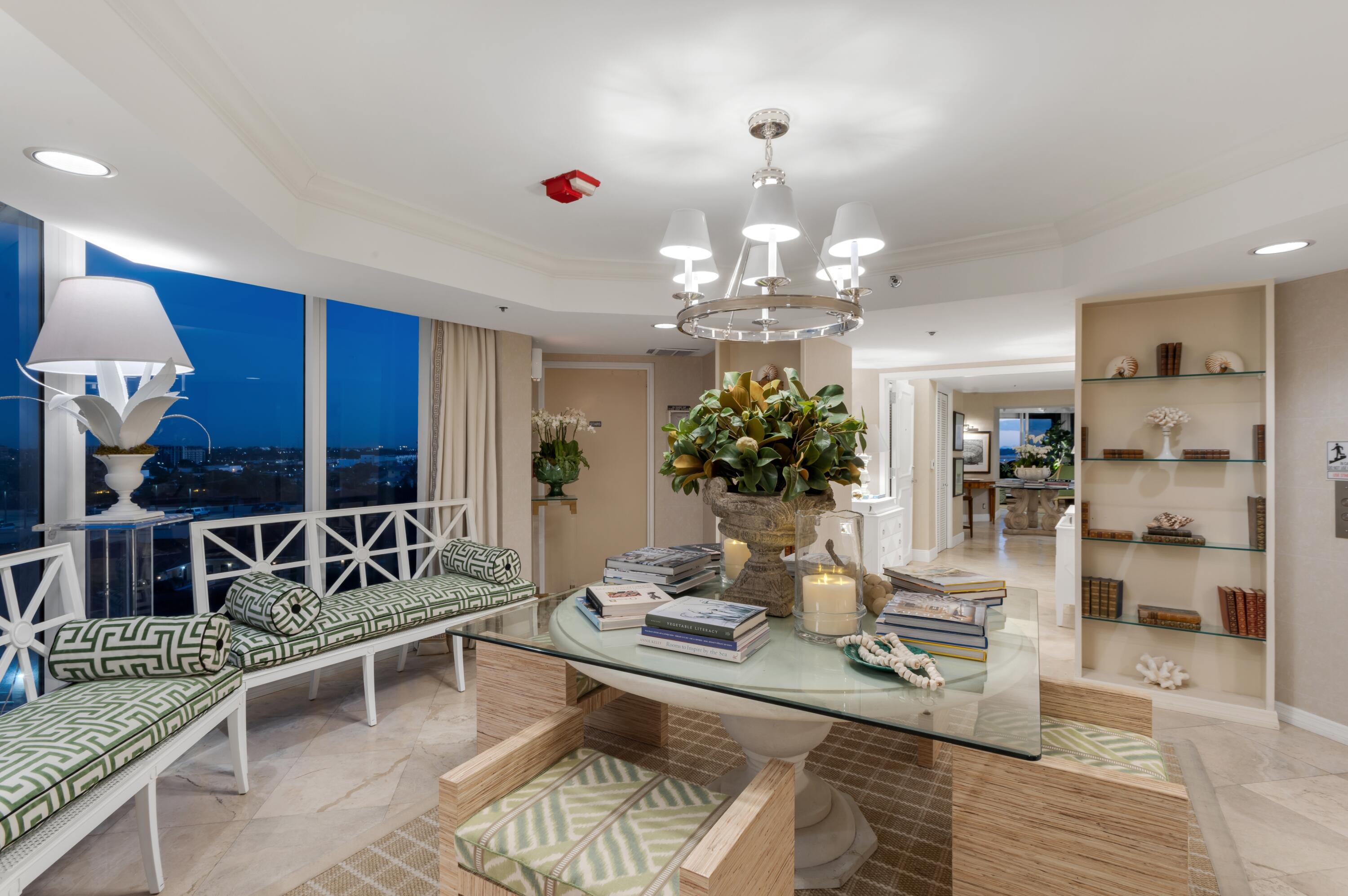 LOCATION: 1617 North Flagler Drive, 10B  West Palm Beach, Florida: Exclusive Villa Del Lago, a 12-floor residential tower with two units per floor ensuring a high degree of privacy, is situated along the Intracoastal Waterway at the doorstep of tony Palm Beach. Amenities of this resort-style building include an elegant club room, state-of-the-art fitness center and business center, with white-glove services that include 24-hour door personnel. PROPERTY: Offering an array of options for relaxation and leisure, residents of Villa Del Lago enjoy two sundecks, each with pools, along with saunas, a covered outdoor dining loggia with barbeque facilities, and lush garden terraces.RESIDENCE: A serene haven that lives like a private residence with only two units per floor, this Villa Del Lago gem is introduced by a semi-private elevator vestibule leading to an artful gallery that unfolds out to the elegant living and dining areas. Encompassing a chic cosmopolitan aesthetic with two-bedroom suites and boasting 1,900 +/- square feet, this masterpiece offers an open floor plan/split bedroom layout with interiors featuring entire walls of glass sliding doors that access the glass-railed wraparound balcony overlooking unparalleled views of Lake Worth, Palm Beach Island and the ocean. Refined finishes and decorator touches throughout include stone and tile flooring, decorator lighting, attractive wall coverings, and fine woodwork. The gourmet kitchen, with a breakfast area, showcases sleek modern cabinetry, high-end appliances and granite counters and backsplashes. The spacious primary bedroom suite includes a spa-inspired bathroom appointed with dual vanities, stone counters, bidet, whirlpool tub, shower and closet. Along with the guest bedroom which has an en-suite bathroom with a shower, completing the overall floor plan are a laundry room and half-bath, while coming with this residence is garage parking for two cars.