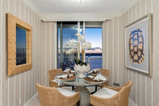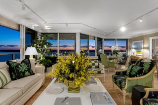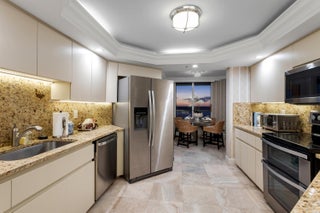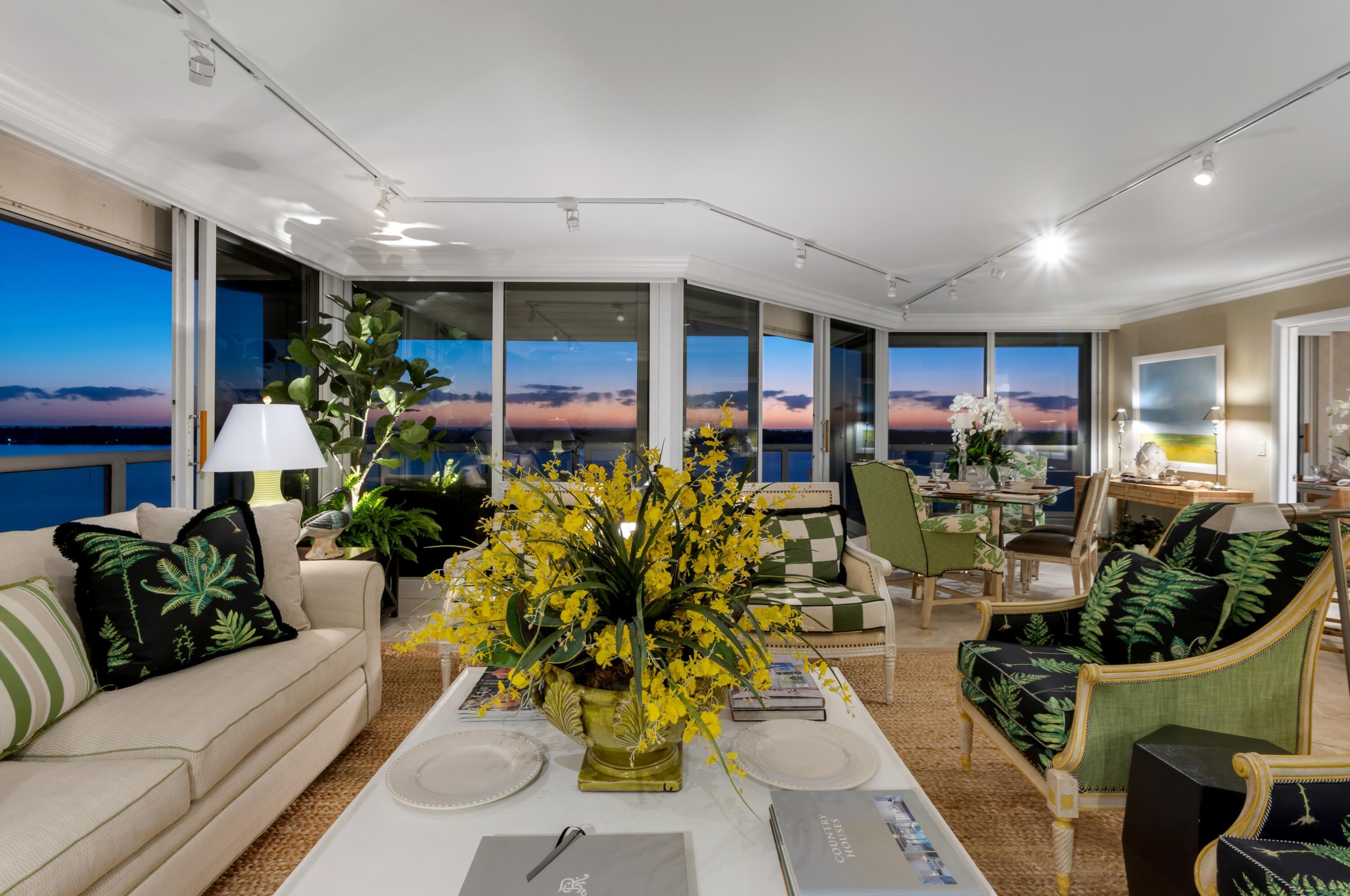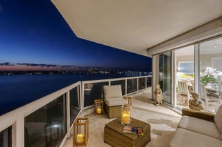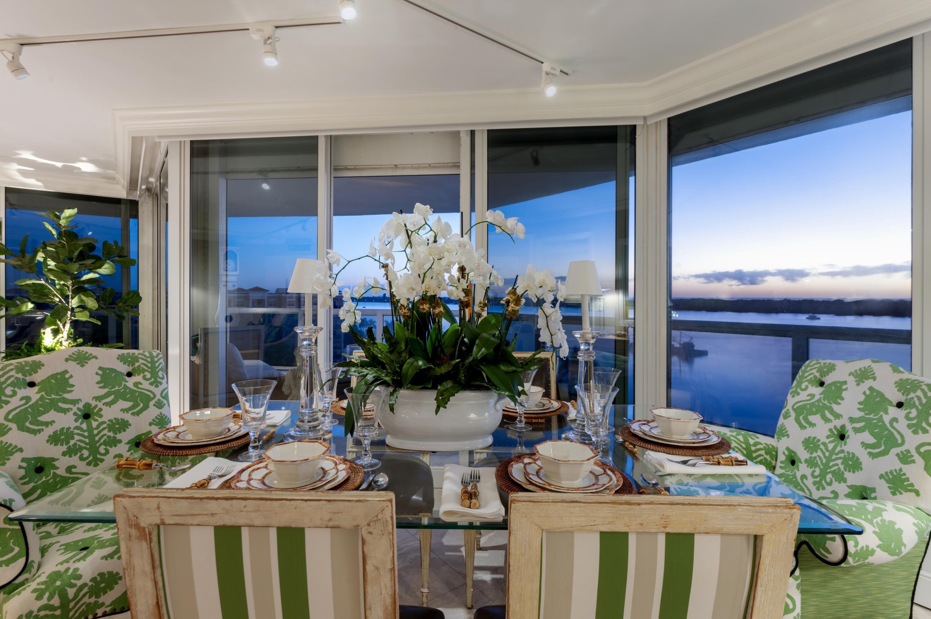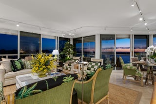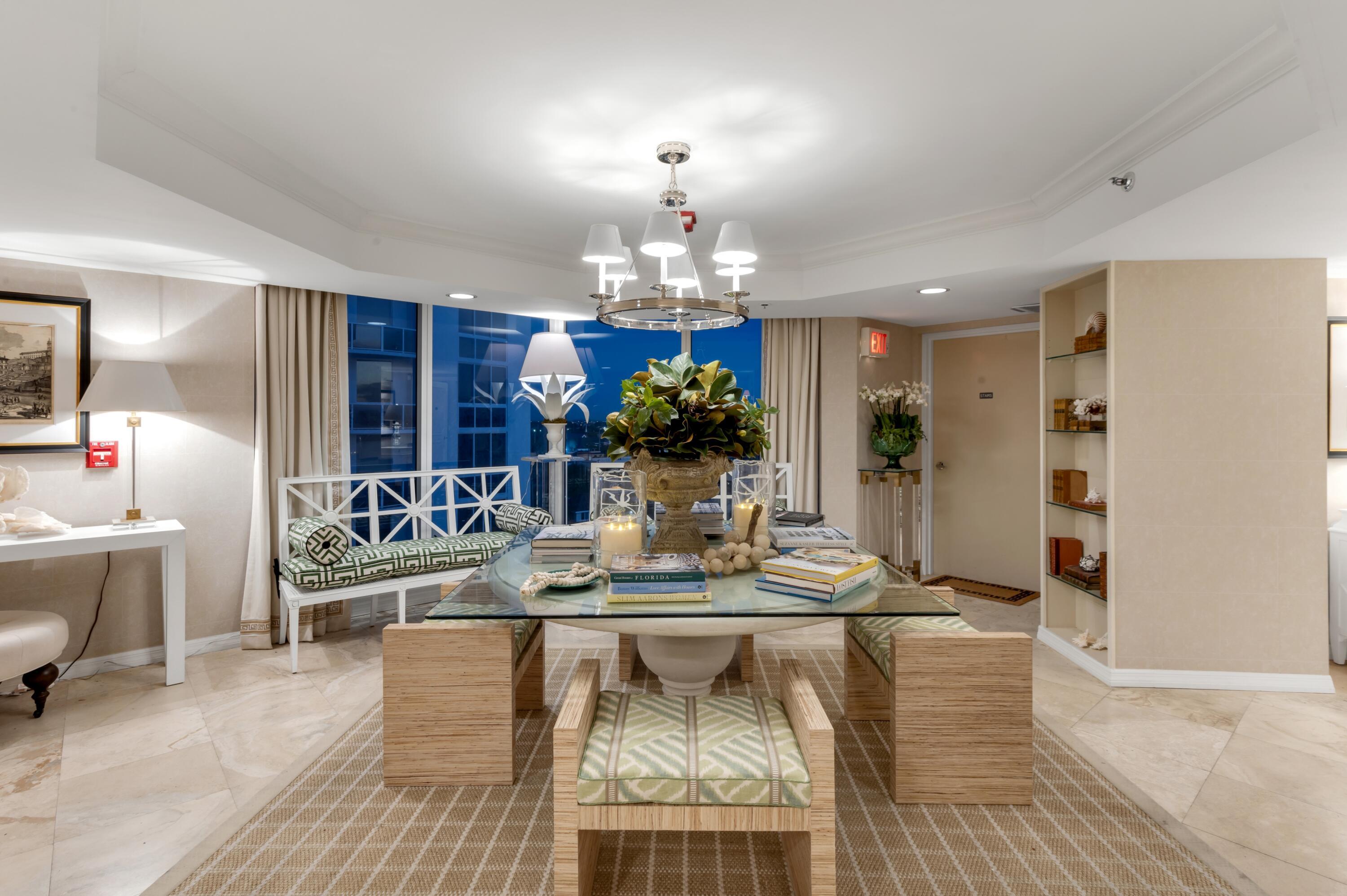 LOCATION: 1617 North Flagler Drive, 10B  West Palm Beach, Florida: Exclusive Villa Del Lago, a 12-floor residential tower with two units per floor ensuring a high degree of privacy, is situated along the Intracoastal Waterway at the doorstep of tony Palm Beach. Amenities of this resort-style building include an elegant club room, state-of-the-art fitness center and business center, with white-glove services that include 24-hour door personnel. PROPERTY: Offering an array of options for relaxation and leisure, residents of Villa Del Lago enjoy two sundecks, each with pools, along with saunas, a covered outdoor dining loggia with barbeque facilities, and lush garden terraces.RESIDENCE: A serene haven that lives like a private residence with only two units per floor, this Villa Del Lago gem is introduced by a semi-private elevator vestibule leading to an artful gallery that unfolds out to the elegant living and dining areas. Encompassing a chic cosmopolitan aesthetic with two-bedroom suites and boasting 1,900 +/- square feet, this masterpiece offers an open floor plan/split bedroom layout with interiors featuring entire walls of glass sliding doors that access the glass-railed wraparound balcony overlooking unparalleled views of Lake Worth, Palm Beach Island and the ocean. Refined finishes and decorator touches throughout include stone and tile flooring, decorator lighting, attractive wall coverings, and fine woodwork. The gourmet kitchen, with a breakfast area, showcases sleek modern cabinetry, high-end appliances and granite counters and backsplashes. The spacious primary bedroom suite includes a spa-inspired bathroom appointed with dual vanities, stone counters, bidet, whirlpool tub, shower and closet. Along with the guest bedroom which has an en-suite bathroom with a shower, completing the overall floor plan are a laundry room and half-bath, while coming with this residence is garage parking for two cars.