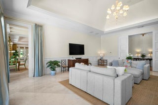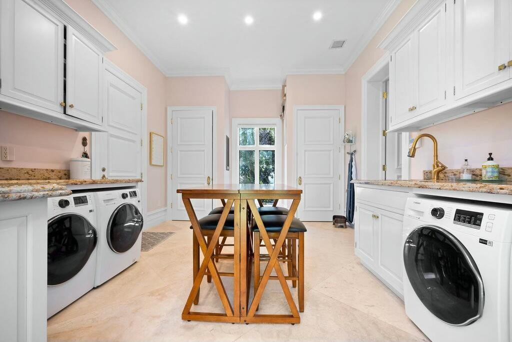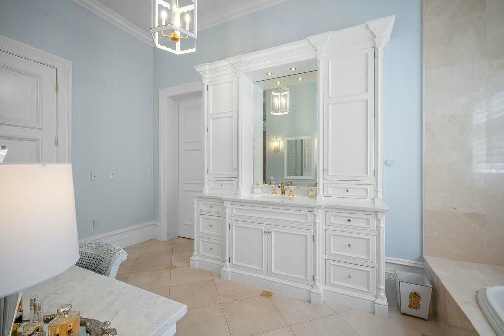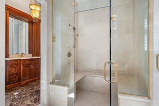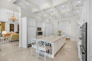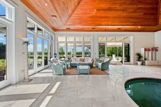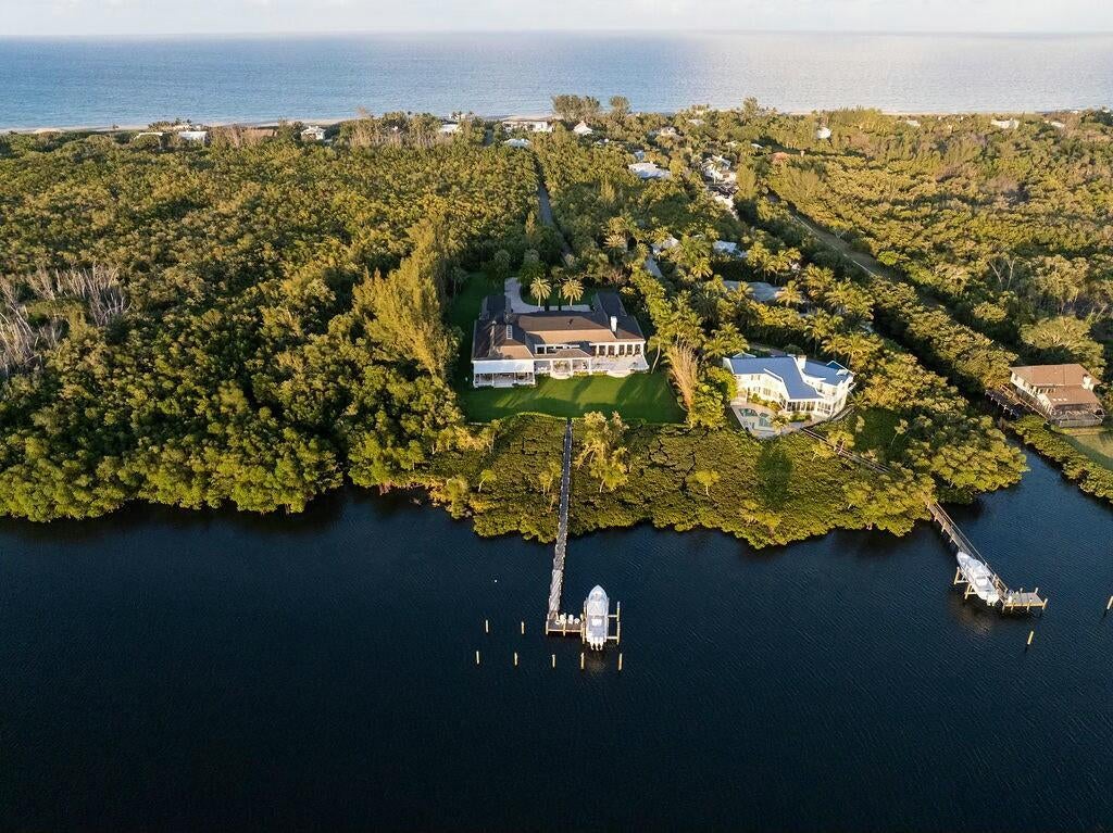 Nestled along 200 feet of pristine Intracoastal waterfront, this unparalleled estate offers the ultimate in luxury living, complete with direct access to the water, a private dock with a lift, and sweeping views that promise tranquility and elegance. This stunning residence is a once-in-a-lifetime opportunity to own a piece of paradise. Unmatched Waterfront Features: Enjoy boating and waterfront recreation with a boat lift capable of supporting vessels up to 30,000 lbs., as well as an additional boat slip on the private dock with solar-powered lights. The direct Intracoastal access and panoramic water views from the property ensure serene living, while the beach access and privacy on three sides of the estate offer the perfect retreat.Luxury Interiors Designed for Entertaining: Spanning a vast, open floor plan, this home's grand living spaces are designed for sophisticated entertaining. From the soaring ceilings and extensive crown molding to the elegant marble floors, no detail has been overlooked. Generously sized rooms flow seamlessly, leading to a spectacular indoor pool with a heated spa and large patio featuring an outdoor kitchen-ideal for al fresco dining and gatherings. A whole-house speaker system and Lutron lighting control system provide the ultimate convenience and atmosphere. Chef's Dream Kitchen: The heart of this estate is its professionally designed chef's kitchen, featuring top-of-the-line SubZero and Wolf appliances, including a large refrigerator, freezer, dual dishwashers, and a Thermador double wall oven. With gleaming quartz counters, custom cabinetry, and a convenient Uline nugget ice maker, this kitchen will inspire culinary creations. Two sinks with disposals and ample space for prep and storage ensure every detail meets the highest standards. Master Suite Sanctuary: Retreat to the expansive master suite, where luxury and comfort merge. Separate master bathrooms, featuring a steam shower and a jetted tub, create a spa-like experience. Custom master closets offer abundant storage, while tall solid-core doors and extensive molding provide an elevated aesthetic. The master bedroom also includes a well-appointed bar with a new Uline ice machine and undersink refrigerator, perfect for winding down in style. State-of-the-Art Systems and Conveniences: Every element of this estate is designed for comfort and efficiency. With 8 separate air conditioners, dual hot water heaters with circulating pumps, and a generator hookup, this home ensures peace of mind. The property also includes a central vac system, electric car charging station, mosquito control system, and an irrigation system that keeps the lush grounds beautifully maintained. Unrivaled Outdoor Living: Step outside to discover meticulously landscaped grounds with platinum paspalum grass, beautiful landscape lighting, and a SWAT mosquito system that keeps the exterior serene and pest-free. The large patio sets the stage for unforgettable gatherings, the indoor pool and spa allow year-round enjoyment. This estate offers the pinnacle of privacy, security, and comfort. With its expansive grounds, impeccable design, and unparalleled amenities, it is truly a rare gem in one of the most coveted locations along the Intracoastal. For those seeking nothing less than the finest in luxury living, this exceptional residence is the ultimate destination.