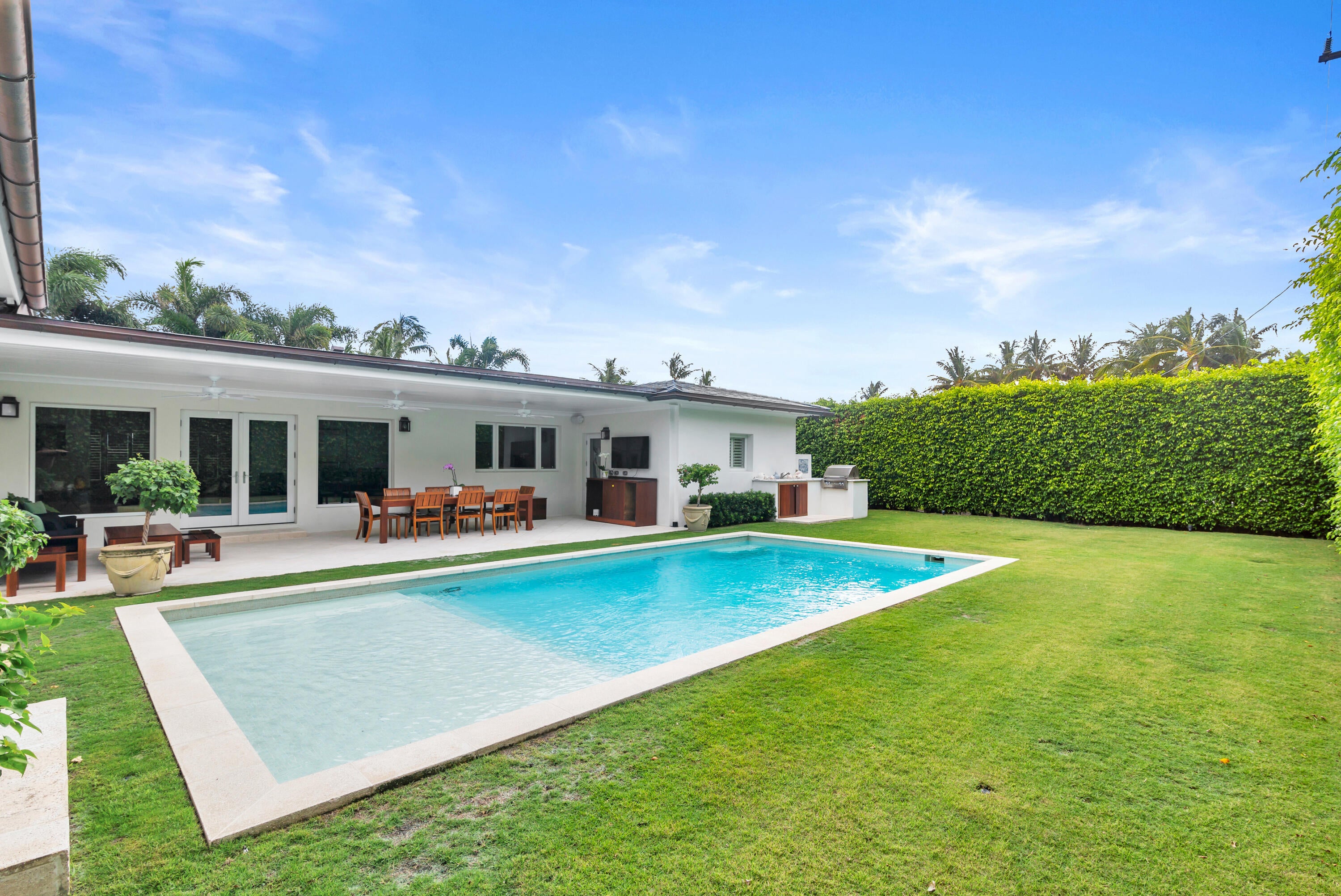 Beautifully updated and meticulously maintained. This very sophisticated West Indies style home is Move-in Ready! Expansive and open floor plan, tray ceilings make for bright and airy interior with multiple living spaces that open to a wonderful outdoor loggia /summer kitchen. Perfect for year-round entertaining. The interior features French limestone floors, fully equipped chefs kitchen and pantry, large dining area and wine storage for 550 bottles. There are 4 bedrooms and 5 full baths. Large Master Suite features projection theater, custom closets, and steam shower. New slate roof, new HVAC's, impact windows/doors and Generator ready.