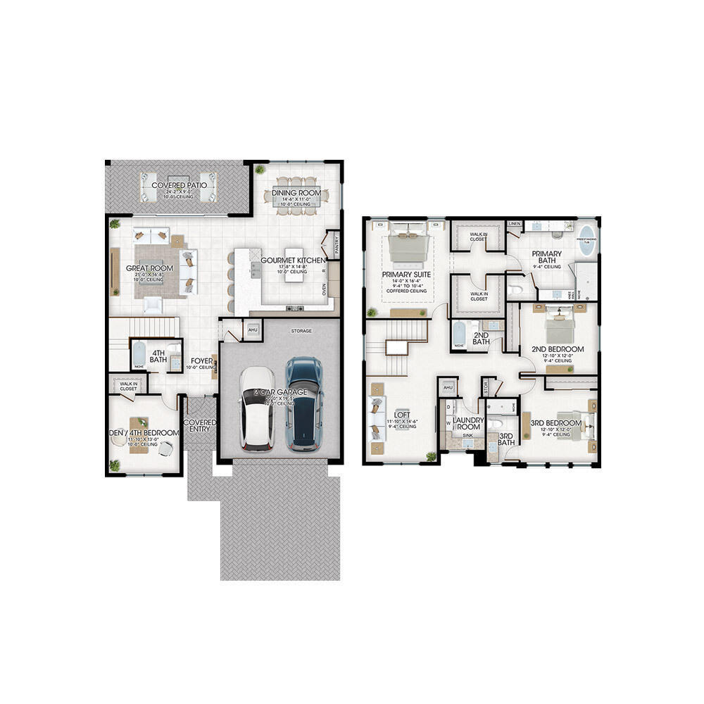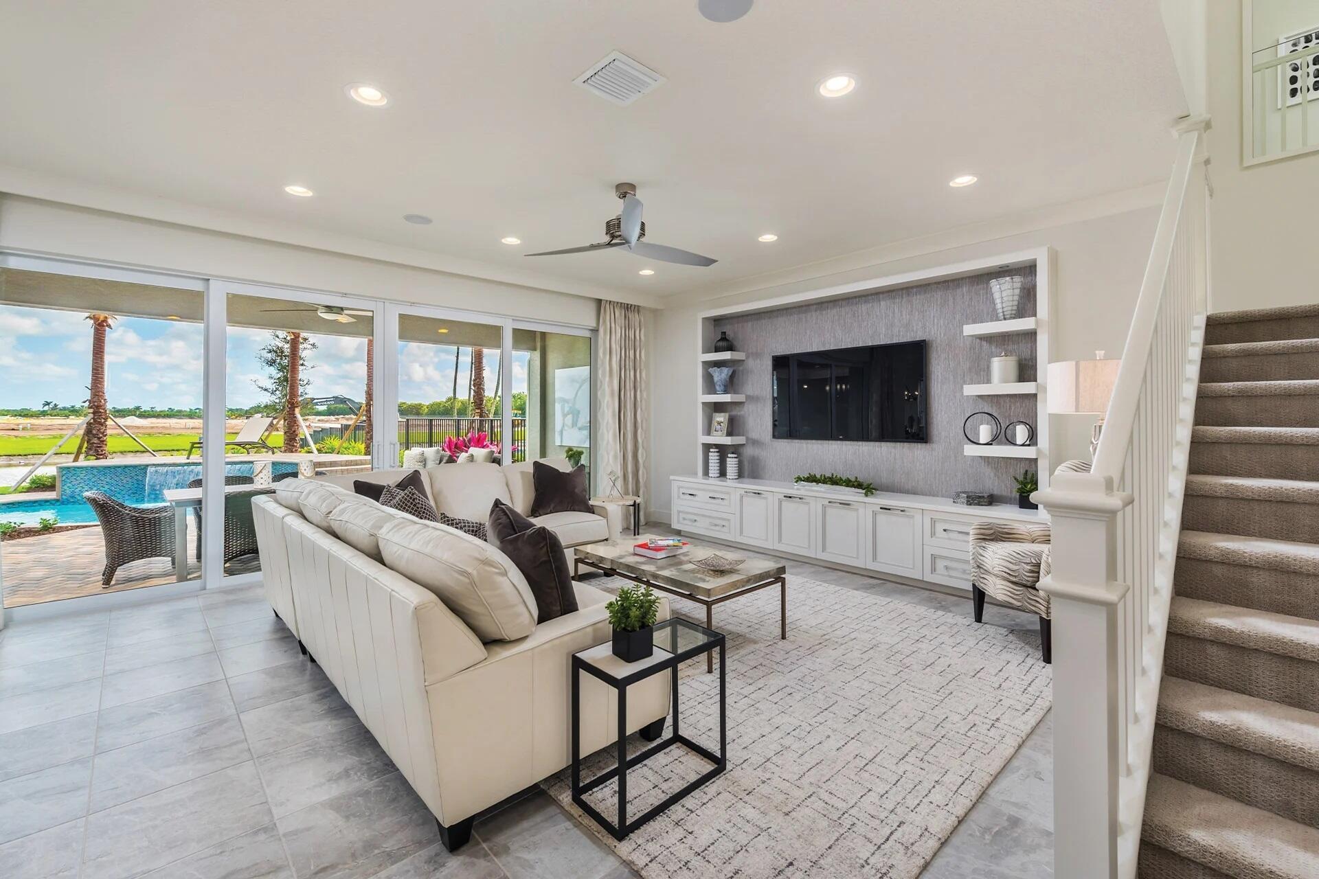 Experience the perfect blend of style and comfort in this stunning new construction home, situated within the prestigious gated community of Apex at Avenir. Boasting light-filled living spaces and an open floor plan, this 4-bedroom, 4-bathroom home seamlessly combines modern luxury with everyday convenience. Thoughtfully designed with exquisite finishes throughout, the chef-inspired kitchen features custom cabinetry, designer countertops, and high-end stainless steel appliances. The primary suite and two guest bedrooms are located on the second floor, ensuring added privacy, while the spacious second-floor loft provides a versatile area for recreation or relaxation. The outdoor retreat is nothing short of spectacular, with an expansive covered patio that provides ample spacefor entertaining and relaxation, all while offering stunning views of the serene lake.