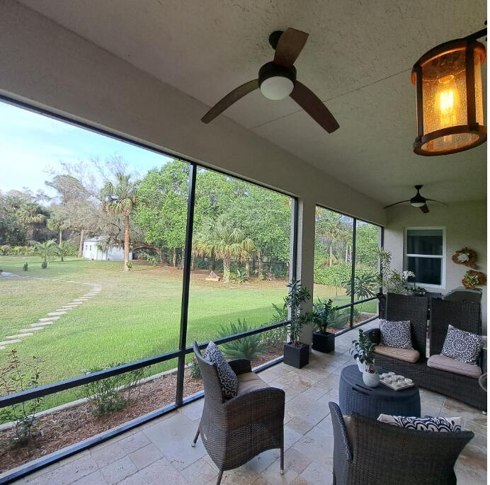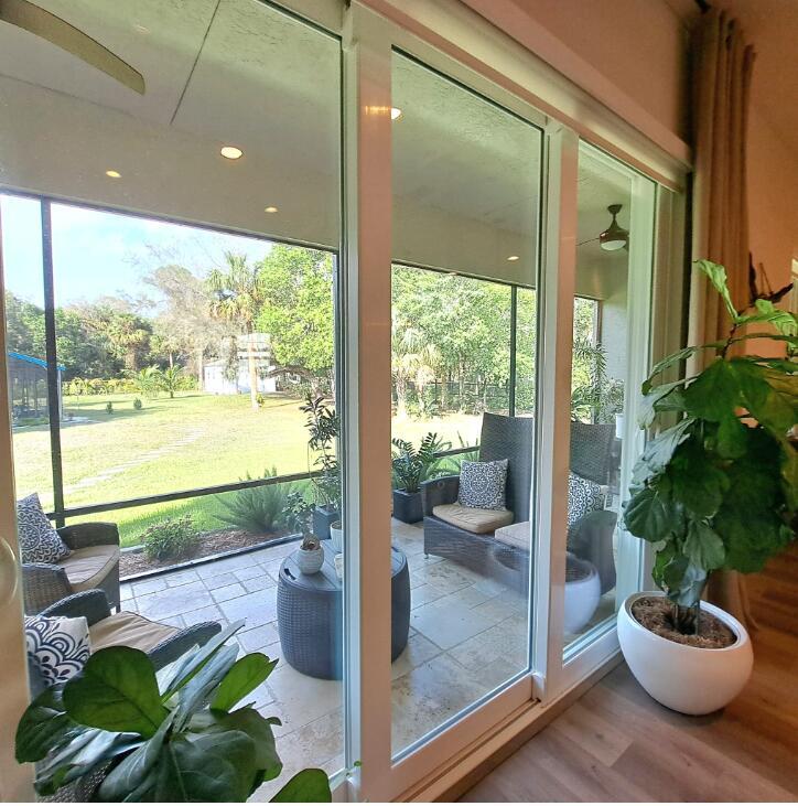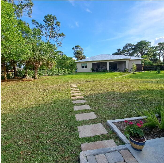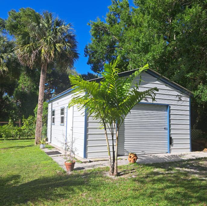 Welcome Home with solid CBS construction,3 bedroom, 2 bathroom, 2 car garage, metal roof, sits on a spacious .98 acre lot fully fence wood and hedge, open living floorplan with 10/11 ft ceilings, with 8 ft doors throughout, also come with HURRICANE IMPACT windows & doors, kitchen shines with stainless steel appliances, quartz countertop, and central island ideal for entertaining, screened cover patio, master bedroom with his and hers walk-in closets and a ensuite bath offers a separate tub and shower. The open yard that offers endless possibilities for gardening or simple enjoying the peaceful surroundings A detached 450 ft2 screen cover pool-spa and detached 450 ft2 Metal Garage/workshop, feel free to bring all your toys there's ample space, there is an extra parking pad perfect forfor a boat trailer or RV. Enjoy fruit trees like mangos, coconut, passion fruit, in your backyard oasis, conveniently located near beautiful beaches.