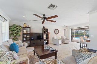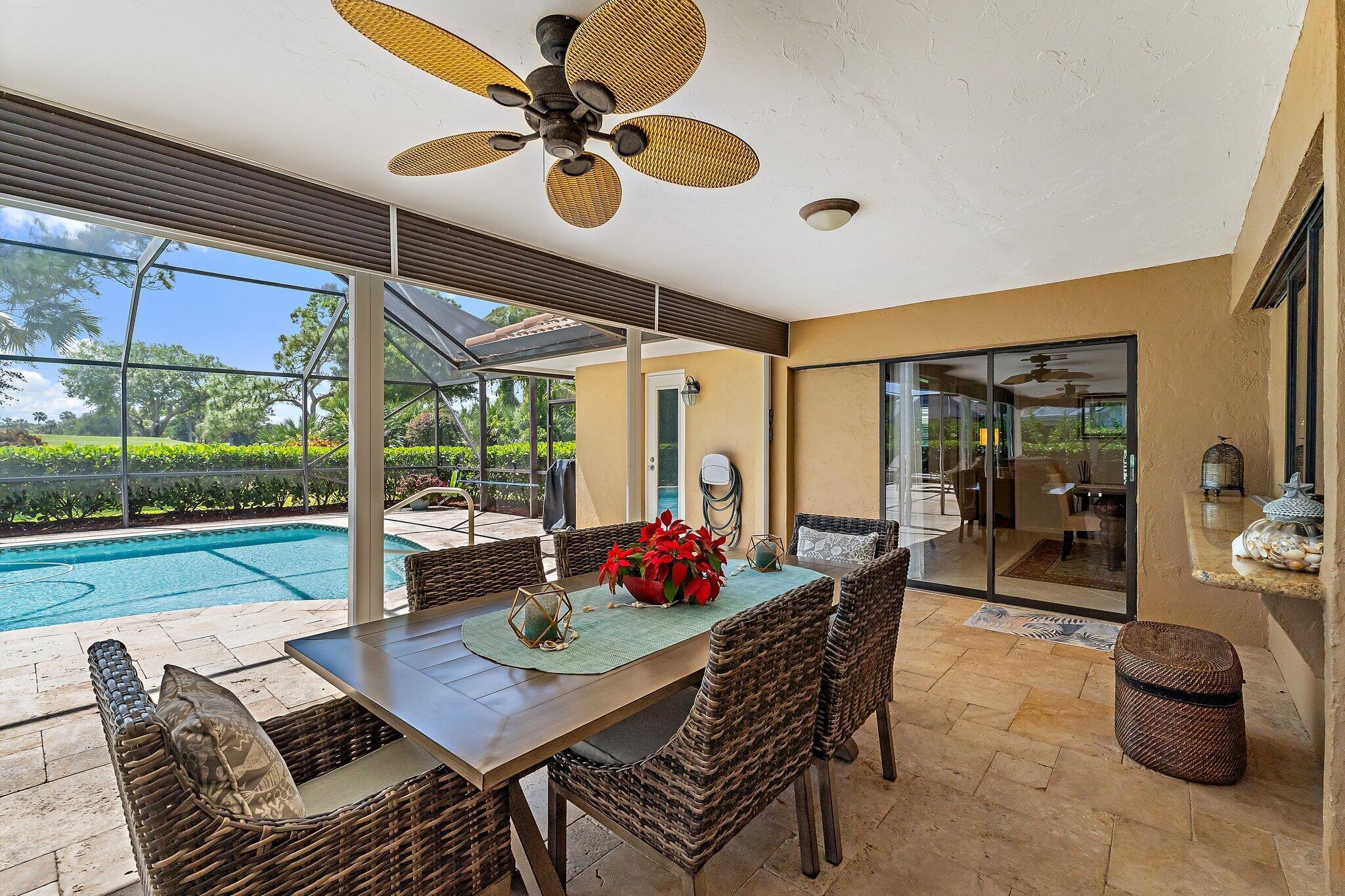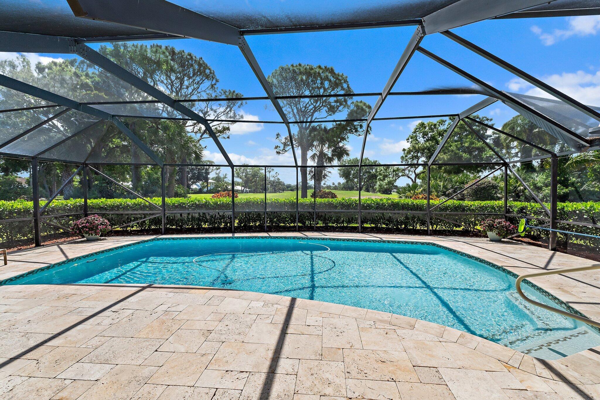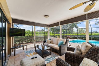 Move right into this updated Turtle Creek home overlooking the 5th green and optional fully furnished. It's a classic one-story Florida home with a split bedroom layout, large covered patio, cabana bath and screened in heated pool. Situated on an oversized .40acre lot with gorgeous sunset views there's room to expand or add 2nd story if you wish. We look forward to showing this well cared for home. Optional golf or social memberships available at Turtle Creek or Tequesta CC- live the golf cart life!