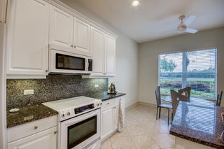 Spacious and beautifully maintained, this first-floor condo offers a thoughtful layout, generous living spaces, and peaceful water views. The bright, open kitchen features granite countertops, white cabinetry, and a large center island, flowing seamlessly into the dining and living area.The expansive family room opens to a screened lanai, where you can relax and take in the tranquil lake and lush greenery beyond. The primary suite is generously sized with a walk-in closet and a well-appointed bath, complete with dual vanities and a soaking tub. A comfortable guest bedroom and full bath offer privacy and flexibility for visitors.Tile flooring runs throughout the main living areas, with carpet in the bedrooms for added comfort. With its blend of space, functionality, and serene views, thishome is move-in ready with plenty of potential to personalize.