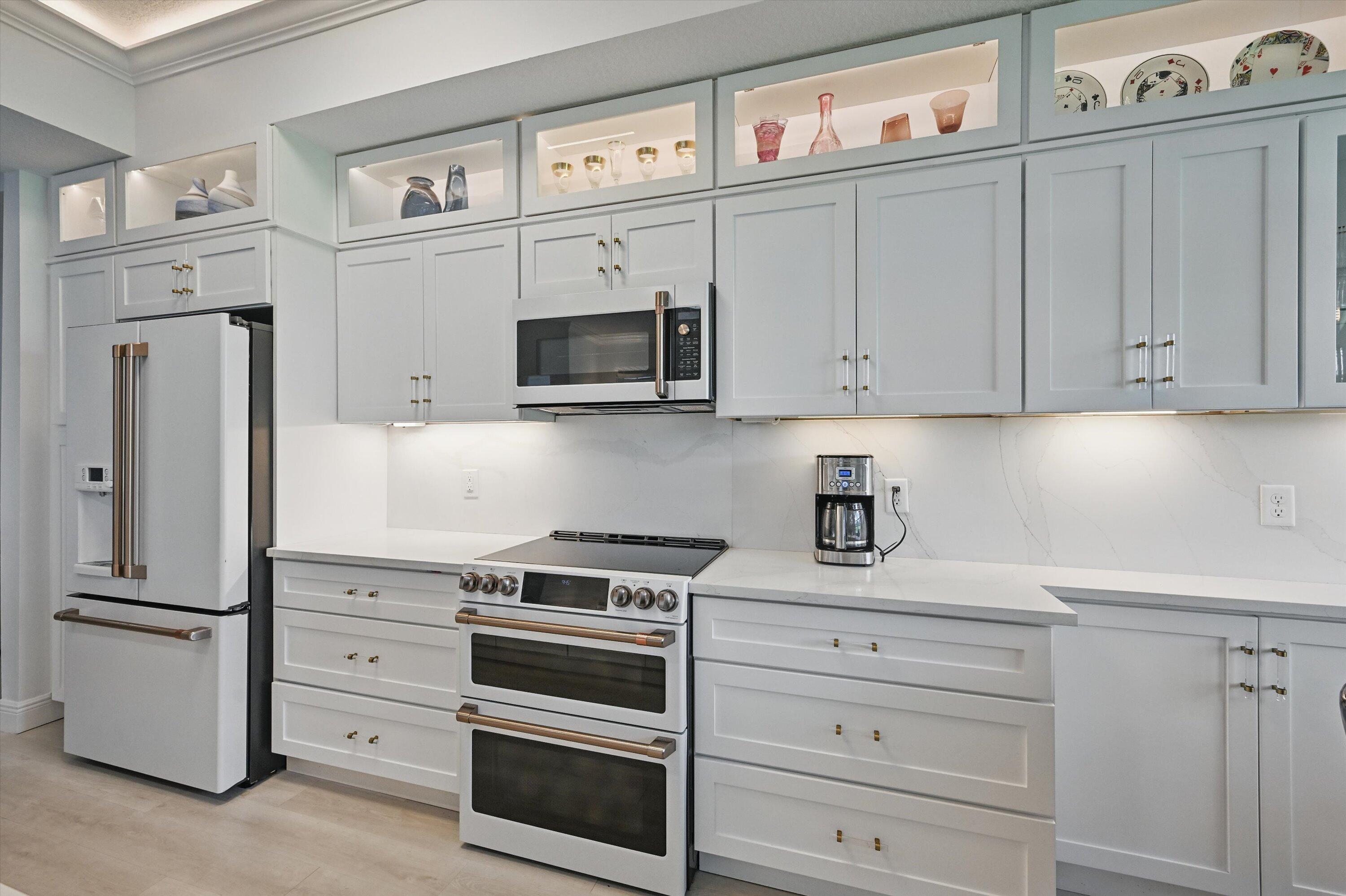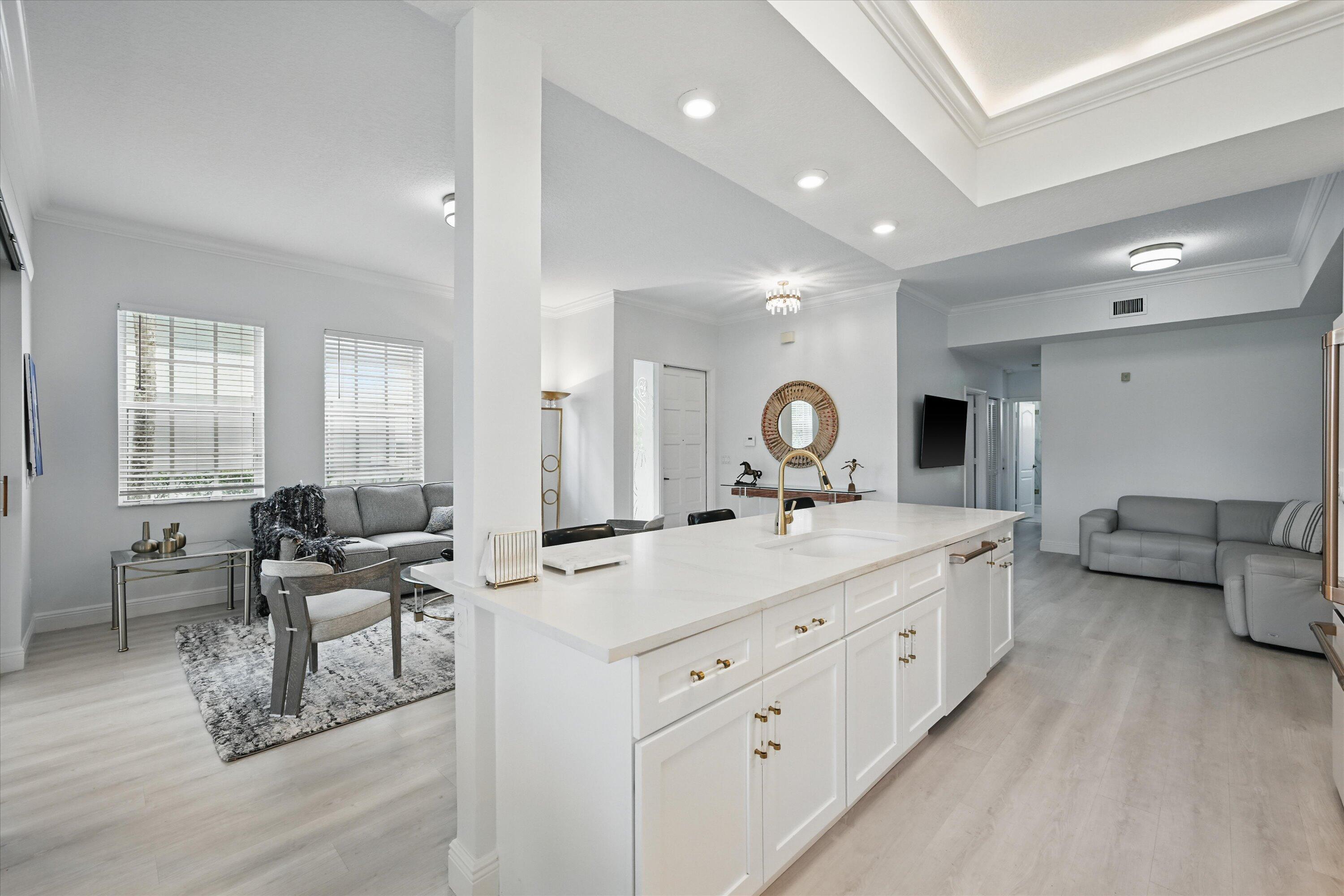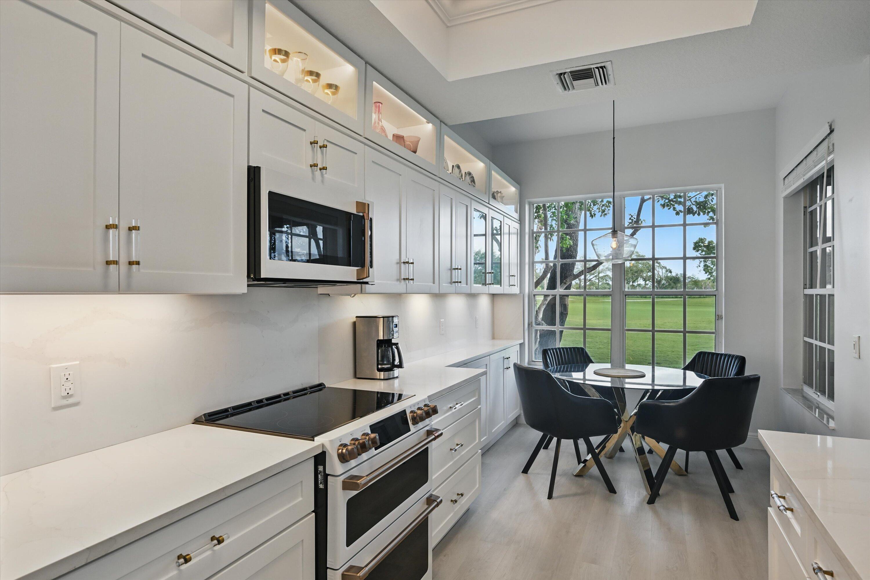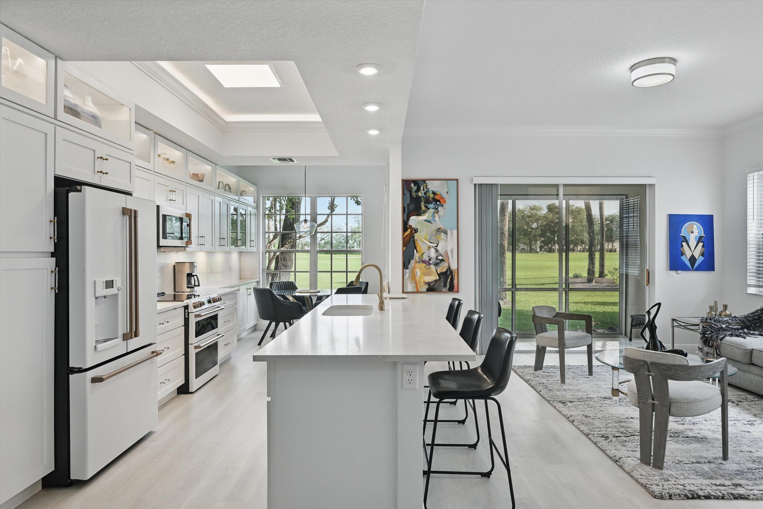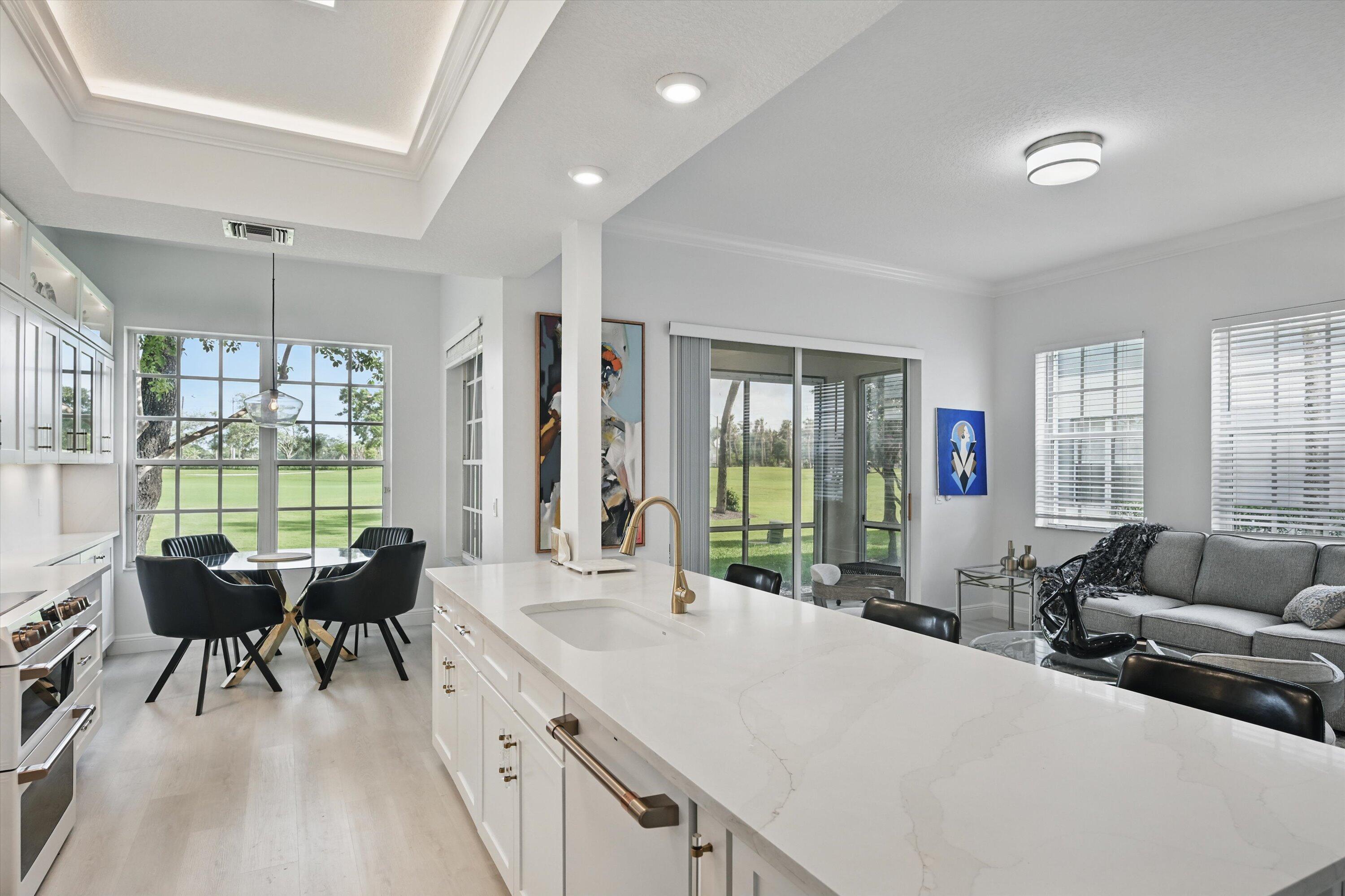 Fabulous opportunity to own a beautifully renovated first-floor condo with top of the line appliances in the highly sought-after Wycliffe Golf & Country Club! This spacious 1,420 sq. ft. residence in Andover offers a stylish and open floor plan, overlooking the newly renovated East golf course. Enjoy the vibrant country club lifestyle with world-class amenities, championship golf, and an active social scene. Don't miss your chance to experience the best of Wycliffe--schedule your private tour today!Considered by many to be one of the best golf and country club values in Palm Beach County, Wycliffe offers not one - but two - championship 18-hole golf courses. This, in addition to its recently completed $18+ million gorgeously executed clubhouse renovation, provides resident members a wide array of enticing dining options; advanced spa services; a state-of-the-art fitness center; an Olympic-sized swimming pool and sun area; plentiful Har-Tru tennis and new pickleball courts; and so much more. Wycliffe offers a wide range of properties, from smartly-designed townhomes to exquisite larger-lot estates, located throughout its fourteen sub-section communities, each with their own distinct style and flavor. The master HOA applicable to all communities provides for inclusive Comcast advanced fiber optic cable service, phone, and high-speed internet, landscaping, security including manned gates, roving patrol on-site paramedic services, and more! Wycliffe is a mandatory membership country club. $125,000 to join.