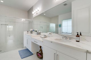 Experience luxury living in this stunning 3-bedroom PLUS DEN, 2.5-bathroom home, built in 2021. This residence offers high-end upgrades and modern finishes along with Gas utilities. The gourmet kitchen features premium cabinetry and sleek quartz countertops, flowing seamlessly into the formal dining and naturally lit living areas. The primary suite boasts dual custom-designed closets and a spa-like bathroom. Step outside to a private heated salt pool overlooking a serene lake, creating a low-maintenance backyard paradise perfect for entertaining as well as electric sceen. With an extended garage and lanai! Located in the vibrant Avenir Community, residents enjoy access to a 16,000 sq. ft. resort-style clubhouse with swimming pools, tennis and pickleball courts, a fitness center, and more.