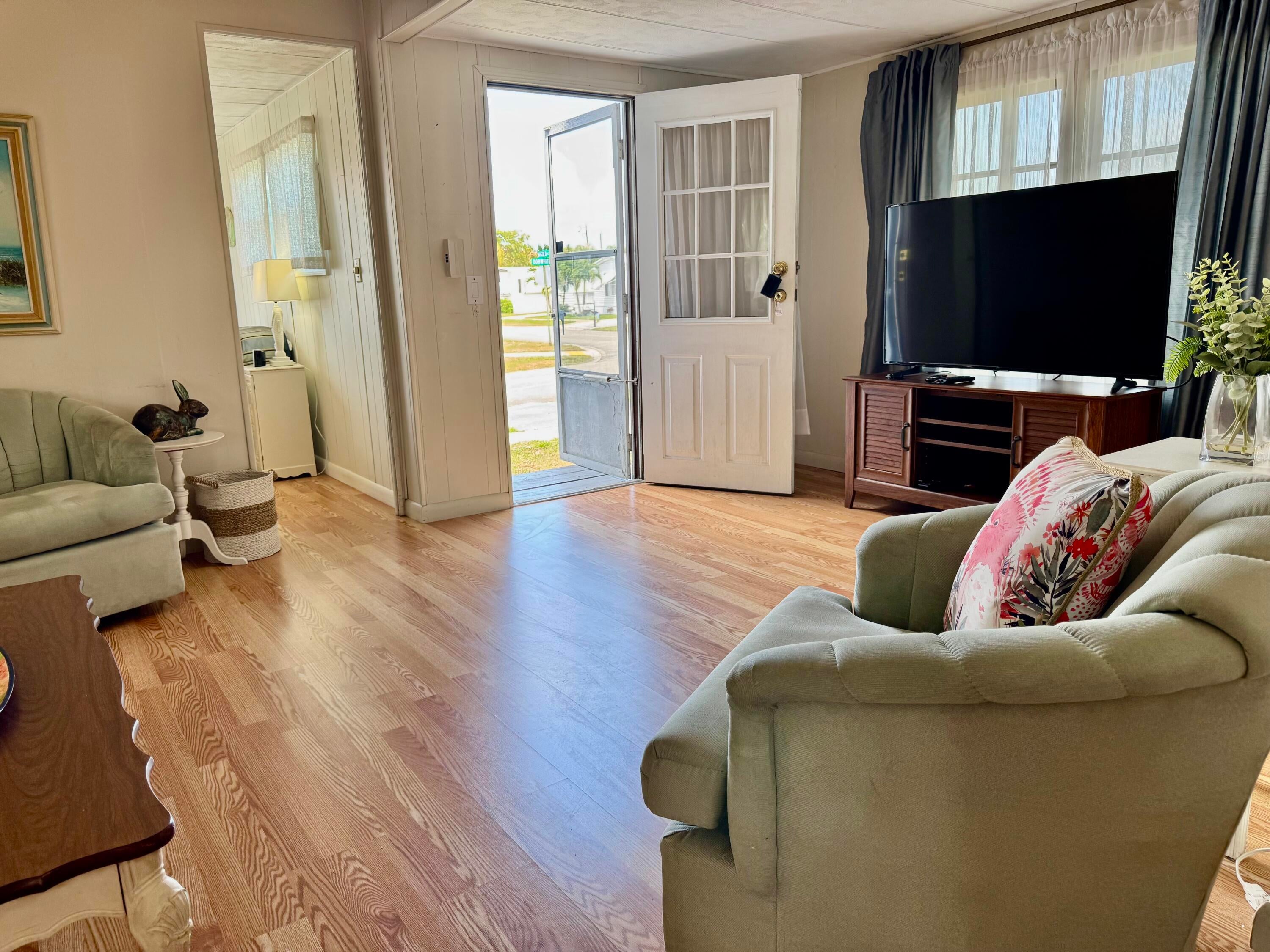 Charming 2/2 Mobile Home in Tropical Breeze Estates - Waterfront Canal Lot. This beautifully furnished and turnkey 2-bedroom, 2-bathroom mobile home is located in the highly desirable 55+ community owner resident management. Set on a spacious 100x50 deeded lot, this home offers you the unique opportunity to own the land, with no land lease fees!Enjoy breathtaking views of the peaceful water canal from the Florida room or open patio - the perfect spots to relax and take in the natural beauty of your surroundings. The property is well-maintained with the community taking care of the lawn, making upkeep easy and hassle-free.Tropical Breeze Estates offers a variety of amenities for an active and fulfilling lifestyle. Whether you're a full-time resident or a snowbird this community is the ideal choice for those seeking affordable living with a $117/month HOA in a tranquil and friendly environment. The home comes fully furnished and move-in ready, making it perfect for anyone looking for a stress-free transition into the Florida lifestyle. Don't miss out on this incredible opportunity to own a home in this beautiful waterfront community. Reach me today to schedule a showing! Venez découvrir cette charmante mobile home meublé et clé en main à Tropical Breeze Estates, offrant une vue imprenable sur le canal et une vie tranquille au bord de l'eau, idéale pour vos séjours hivernaux en Floride. Seulement $117/mois HOA.