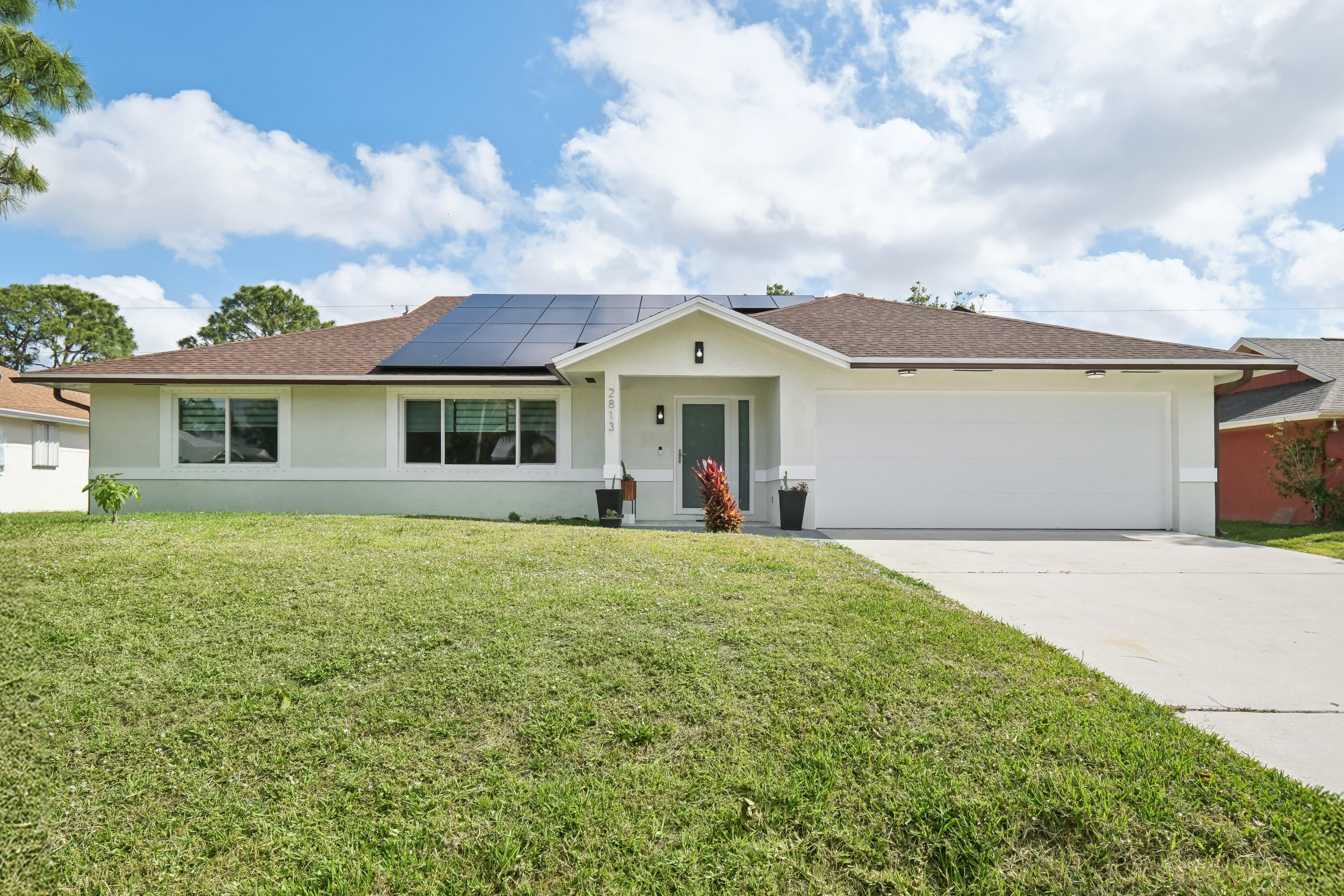 Welcome to the nicest home in South Bend neighborhood! Brand new roof October 2023, fully remodeled house, ss appliances, Washer/dryer, new modern kitchen, new completed bathrooms, free standing tub, new showers and new luxury vinyl floor, freshly painted in and out and much more, must see! Plenty space for pool. Fenced backyard. 2 cars garage. Brand new Impact windows and solar panels. No HOA! Close to beaches, shopping, boat space to park on your property.