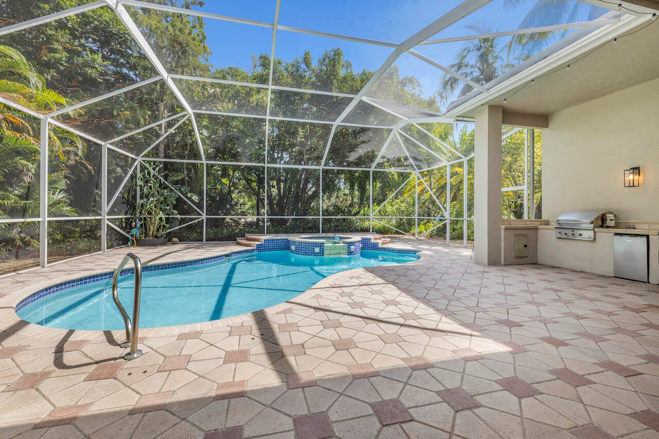 Stunning pool home in prestigious Binks Estate available for seasonal & off season. Located in the heart of Wellington with a short commute to World Class Equestrian venues. Completely renovated and beautifully decorated. Situated on .41 acre Cul-de-sac lot overlooking the 14th hole of Wellington National Golf Course, this home is paradise with lush landscaping and lots of privacy. Screened patio & heated pool with spa, outdoor kitchen w/ gas grill, and huge covered patio that's perfect for entertaining. This 4 bedroom home also has a bonus 5th room/office, formal dining & living, spacious family room, breakfast nook and gourmet kitchen with sub zero fridge, Thermador gas range, huge walk in pantry, & well equipped with new small appliances,coffee maker, dishes, utensils and more.