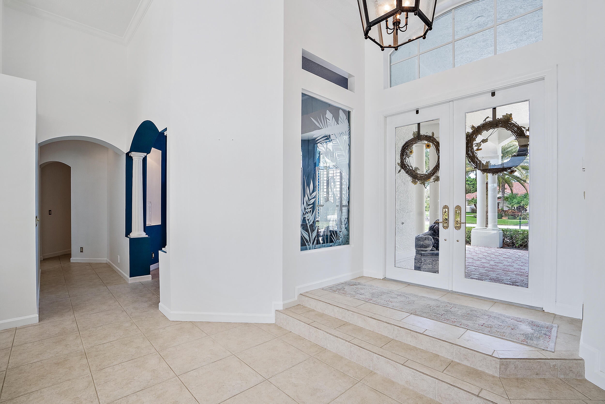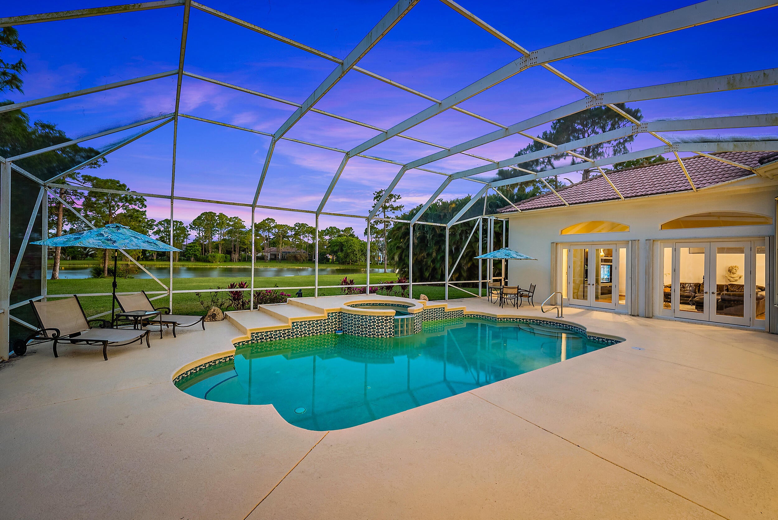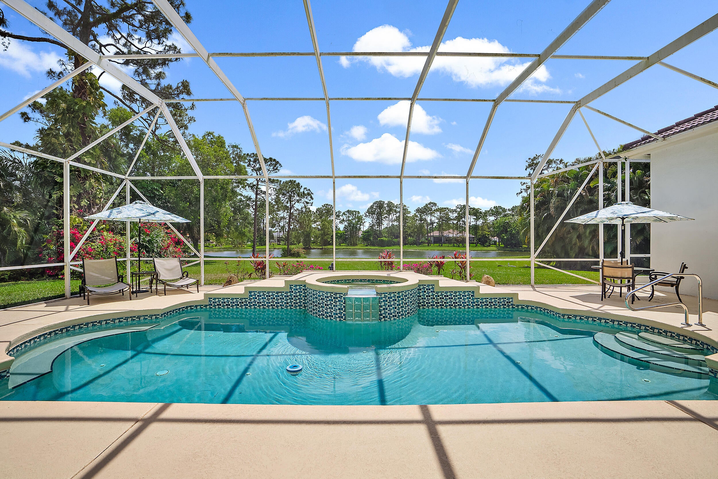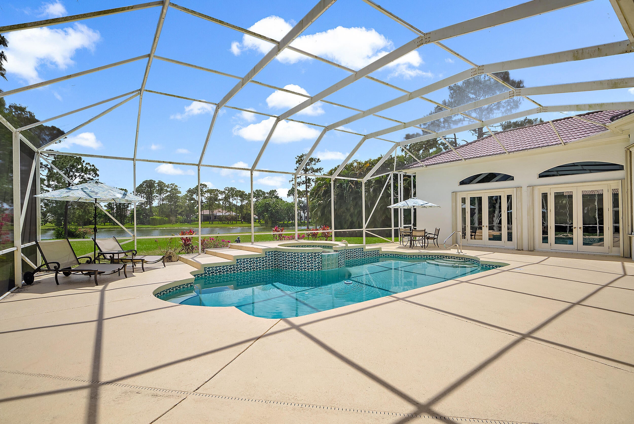 Welcome to your own 1.05 ACRE ESTATE located in the sought-after Bay Hill Estates neighborhood of Palm Beach Gardens. From the moment you approach the magnificent property, you'll be wowed by the dramatic circular driveway and regal Porte Cochere entry, flanked by lion statues. Perfect for entertaining and casual living, the open floor plan has expansive views of the lake from most of the windows in the home. Soaring 18-foot ceilings in the living room provide major architectural drama, while the outdoor pool and open patio draws one's eye outside to the tropically landscaped property. Enjoy immense privacy as you're secluded from neighbors. Three full bedrooms, including a spacious 15ft x 24ft Primary Bedroom, plus a convertible bedroom/den/office. Both secondary bedrooms are en suite.Enjoy new countertops, refinished cabinetry, and new backsplash in the fabulous kitchen. The primary bath boasts marble flooring, as well as new countertops, sinks and fixtures. New fixtures and vanities in the two powder baths. New flooring in guest bedrooms. The 5-ton HVAC was replaced in 2020 and the 3-ton HVAC was replaced in 2018. A golf membership is available, but not required, through PGA National. Bay Hill Estates is a gated community with proximity to the heart of Palm Beach Gardens' world-class shopping and restaurants.