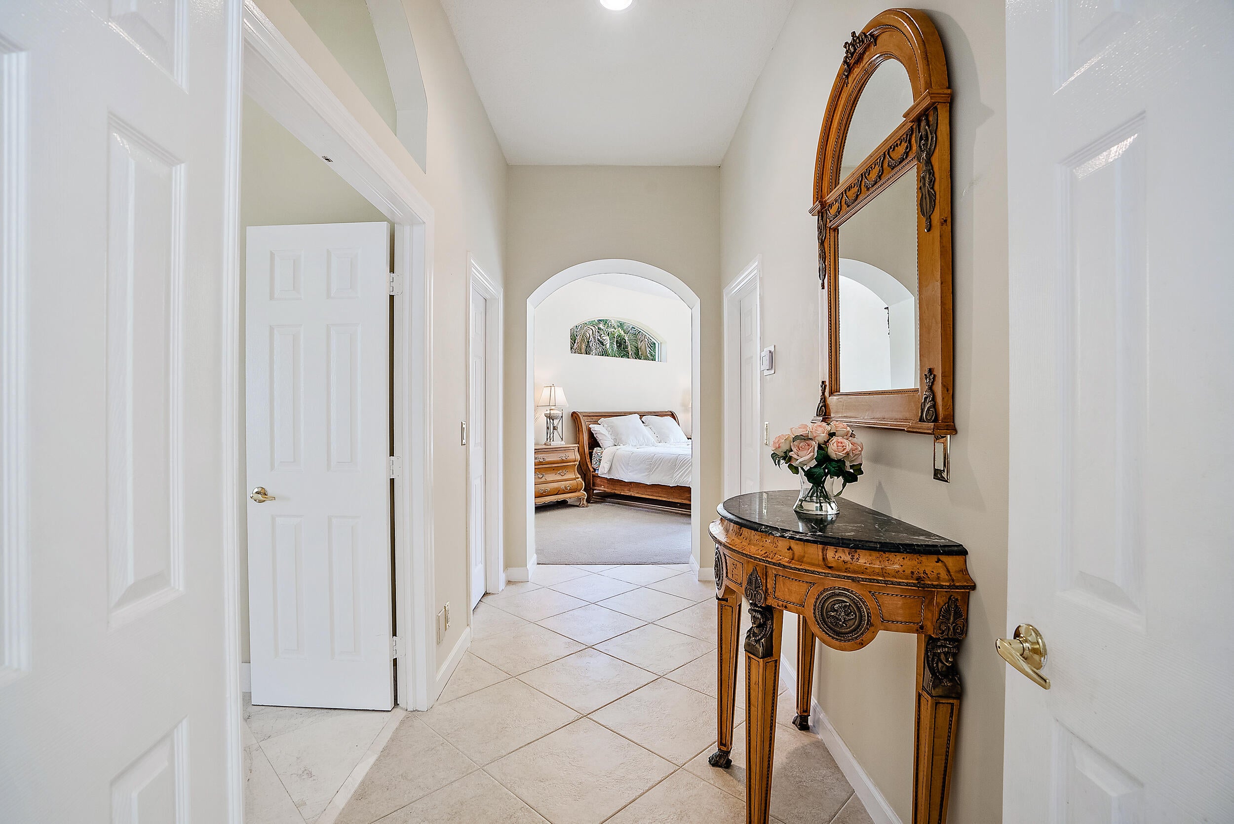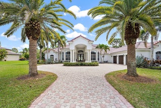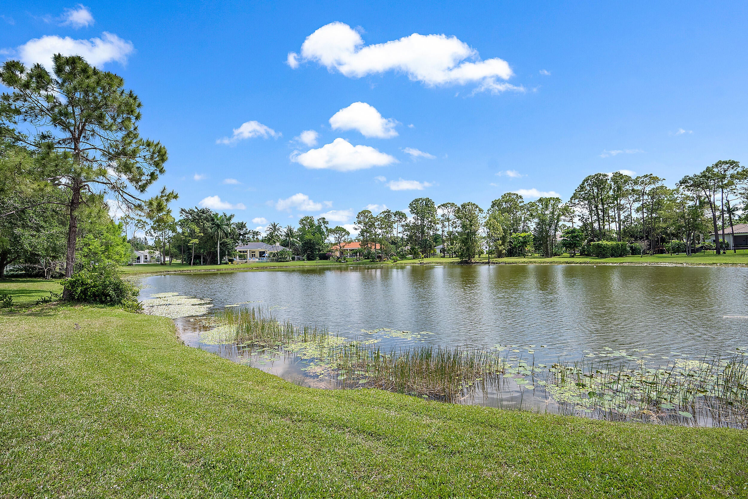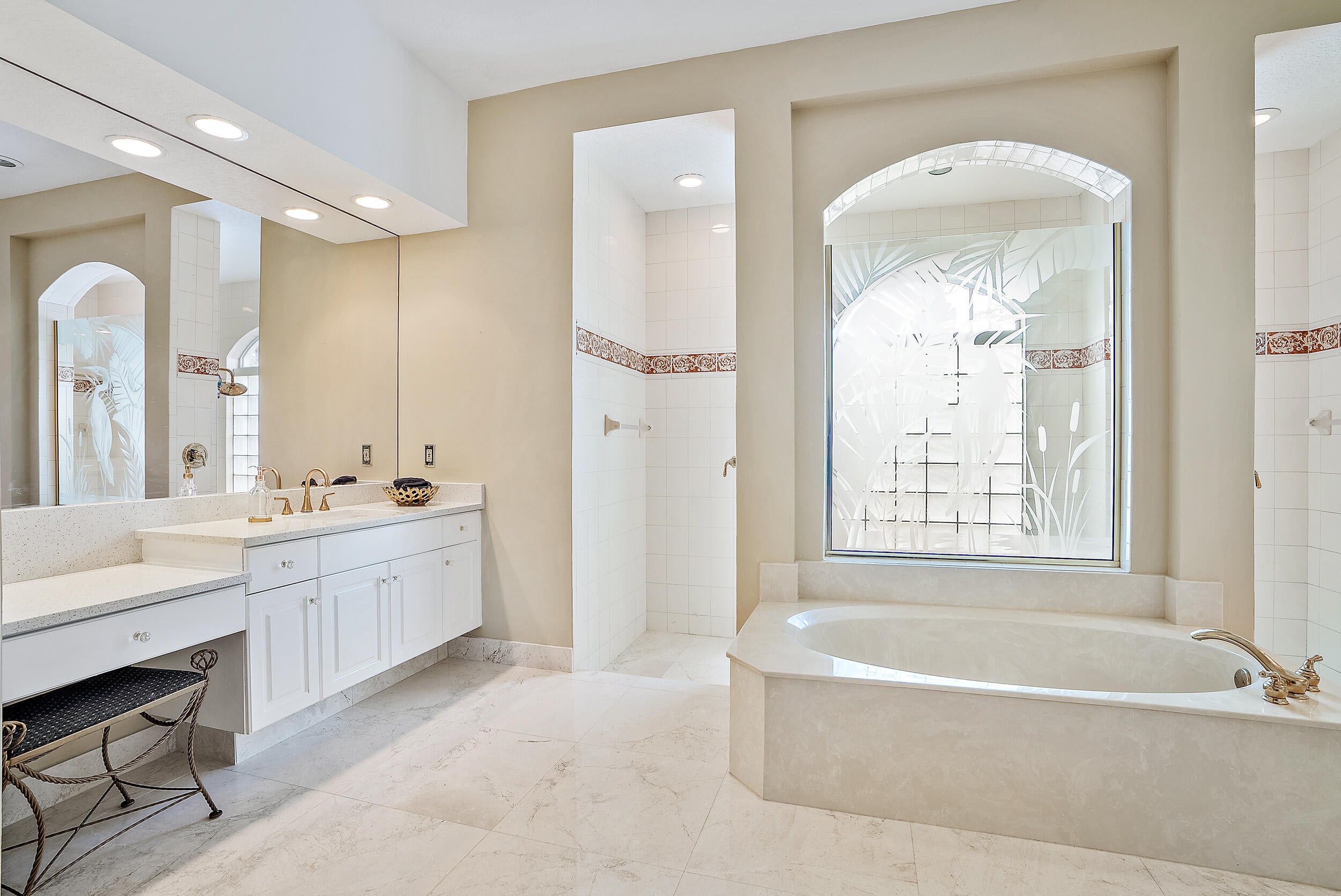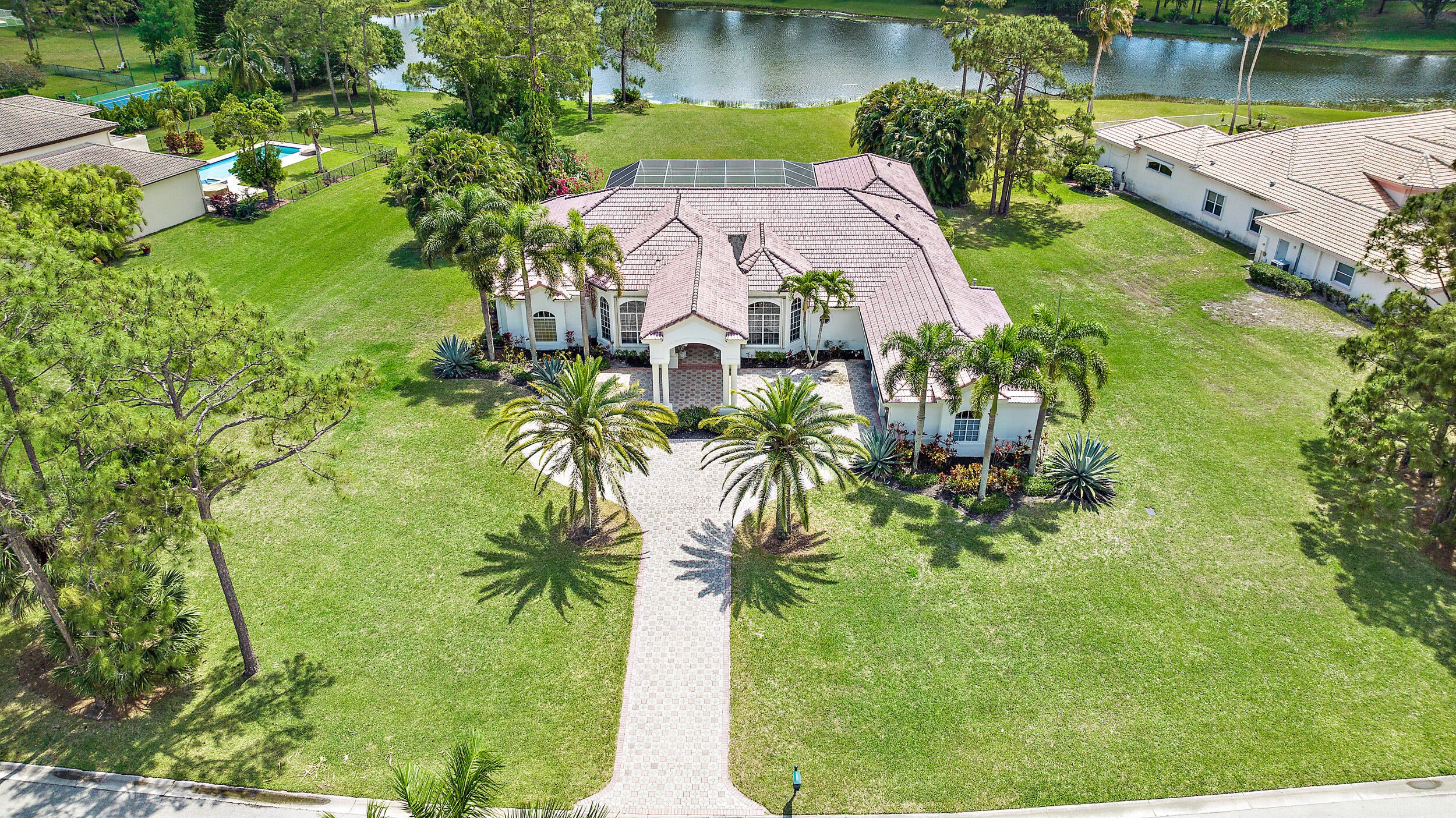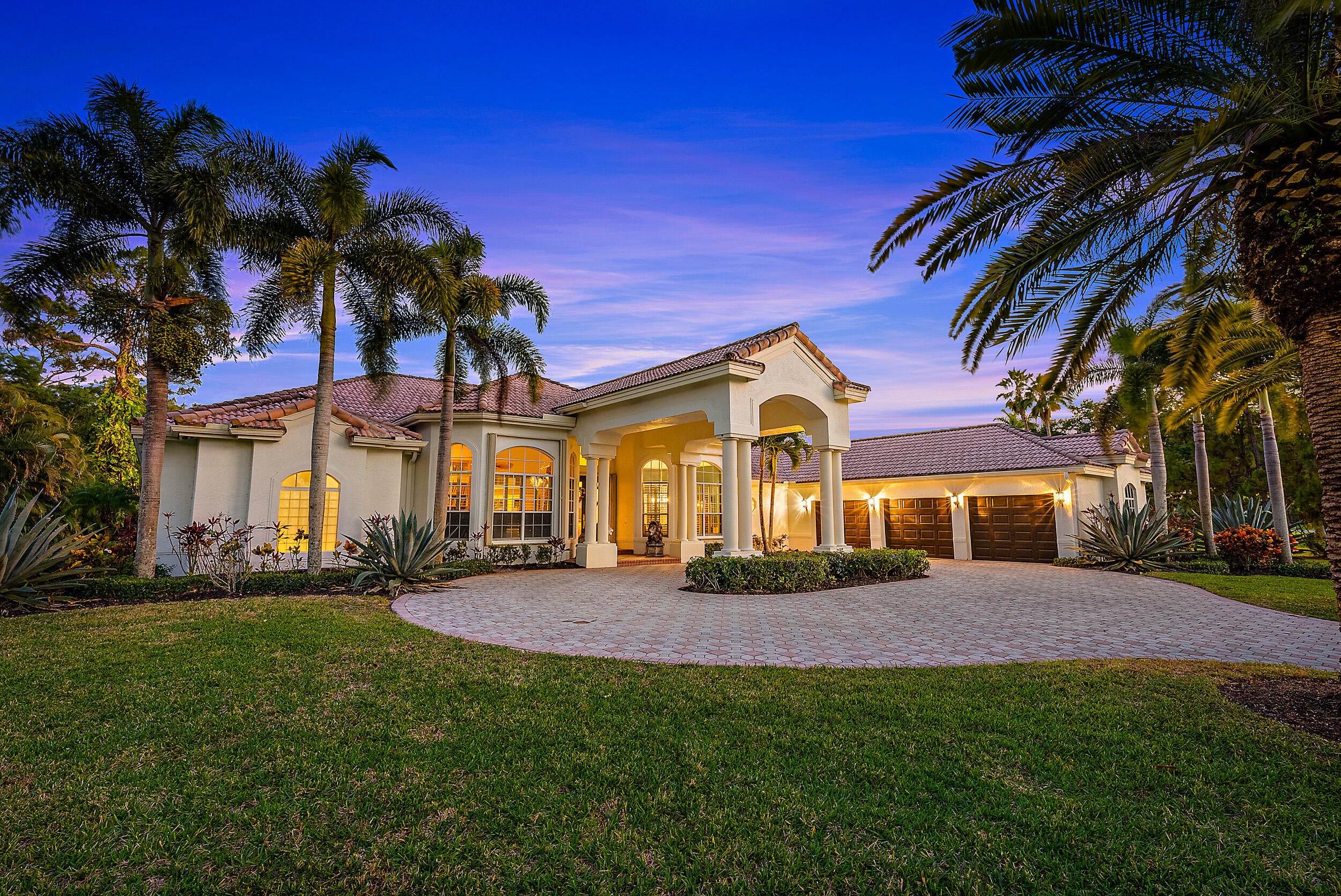 Welcome to your own 1.05 ACRE ESTATE located in the sought-after Bay Hill Estates neighborhood of Palm Beach Gardens. From the moment you approach the magnificent property, you'll be wowed by the dramatic circular driveway and regal Porte Cochere entry, flanked by lion statues. Perfect for entertaining and casual living, the open floor plan has expansive views of the lake from most of the windows in the home. Soaring 18-foot ceilings in the living room provide major architectural drama, while the outdoor pool and open patio draws one's eye outside to the tropically landscaped property. Enjoy immense privacy as you're secluded from neighbors. Three full bedrooms, including a spacious 15ft x 24ft Primary Bedroom, plus a convertible bedroom/den/office. Both secondary bedrooms are en suite.Enjoy new countertops, refinished cabinetry, and new backsplash in the fabulous kitchen. The primary bath boasts marble flooring, as well as new countertops, sinks and fixtures. New fixtures and vanities in the two powder baths. New flooring in guest bedrooms. The 5-ton HVAC was replaced in 2020 and the 3-ton HVAC was replaced in 2018. A golf membership is available, but not required, through PGA National. Bay Hill Estates is a gated community with proximity to the heart of Palm Beach Gardens' world-class shopping and restaurants.