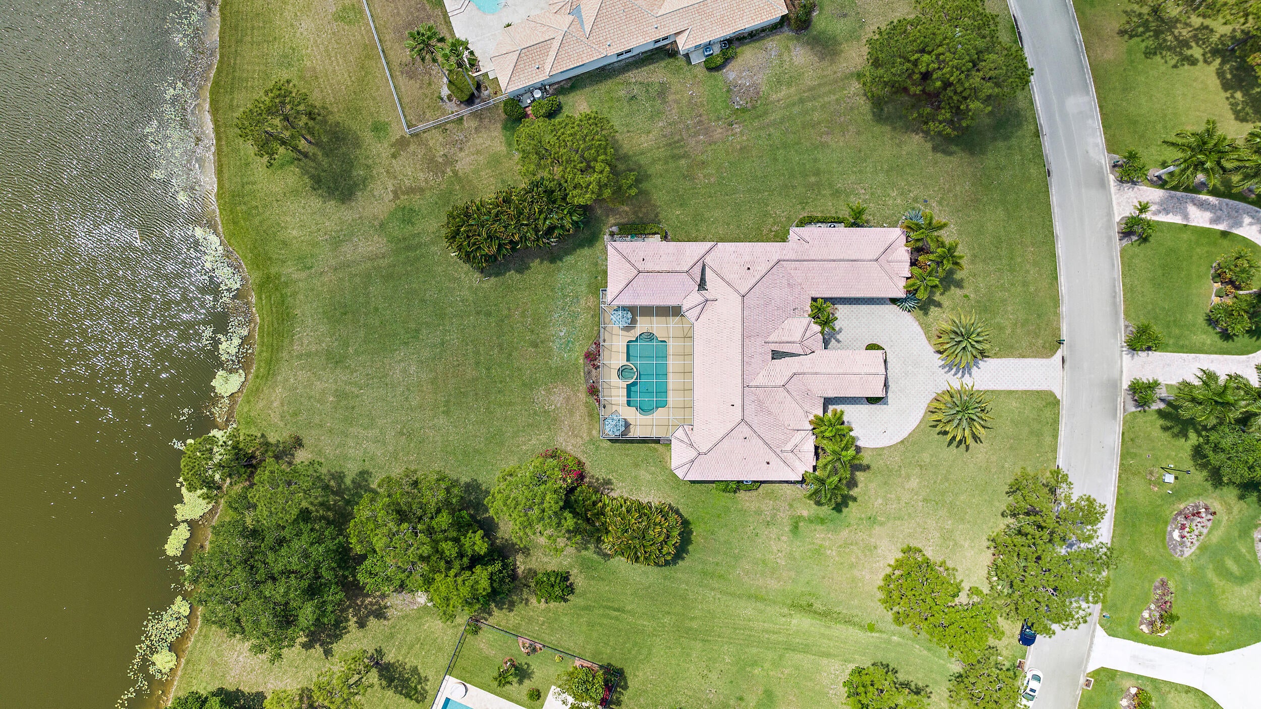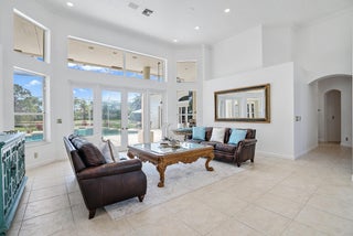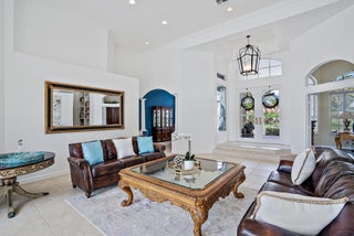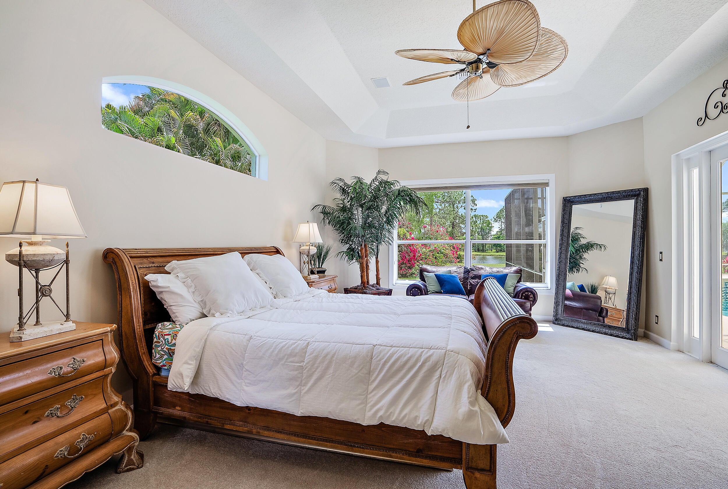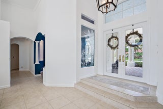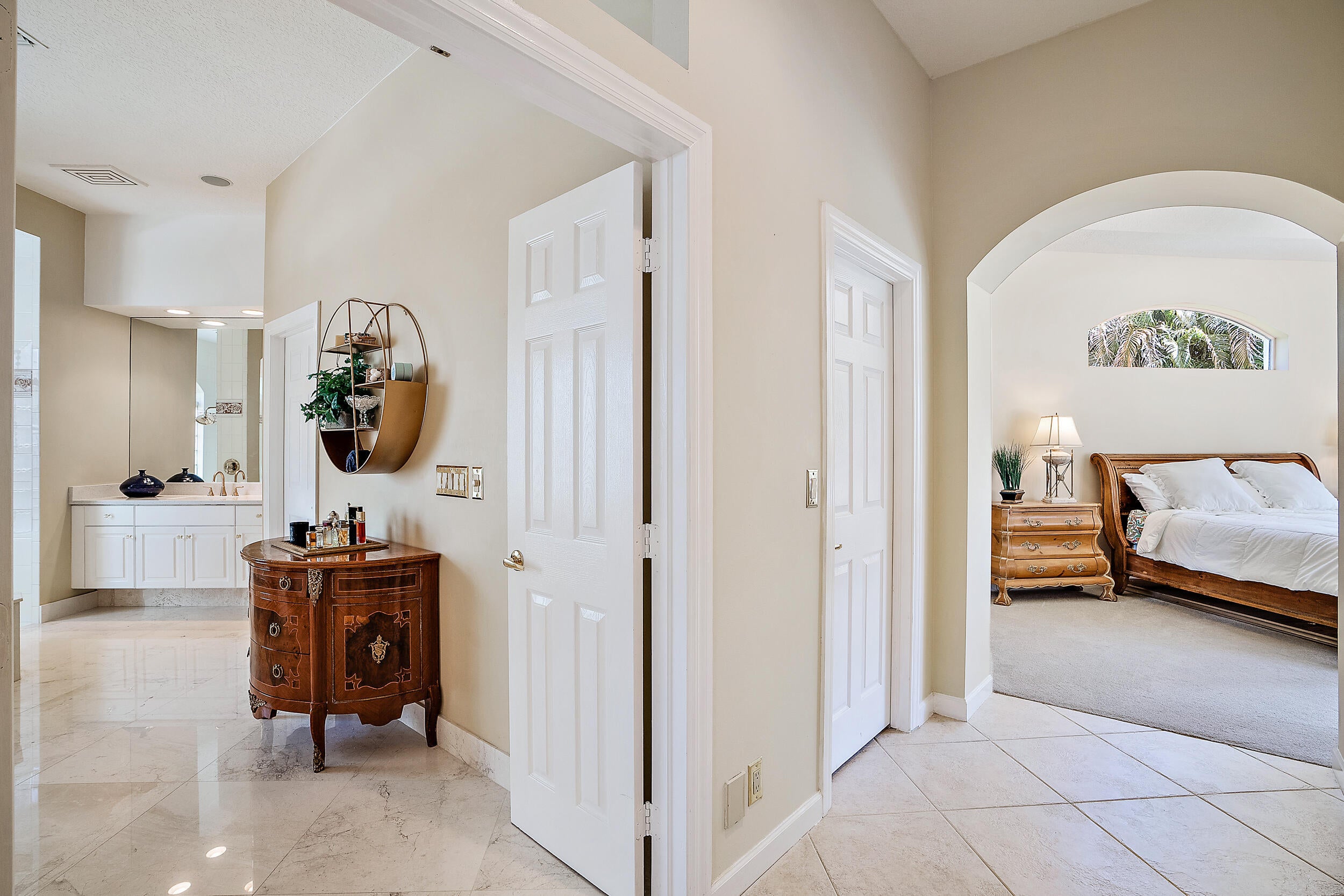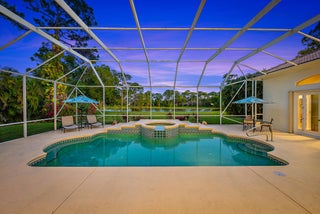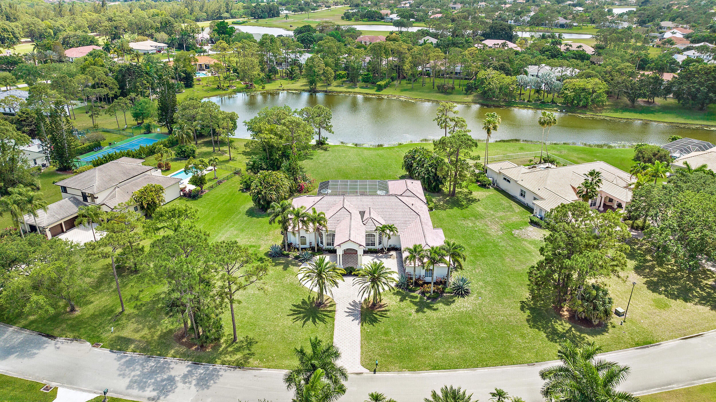 Welcome to your own 1.05 ACRE ESTATE located in the sought-after Bay Hill Estates neighborhood of Palm Beach Gardens. From the moment you approach the magnificent property, you'll be wowed by the dramatic circular driveway and regal Porte Cochere entry, flanked by lion statues. Perfect for entertaining and casual living, the open floor plan has expansive views of the lake from most of the windows in the home. Soaring 18-foot ceilings in the living room provide major architectural drama, while the outdoor pool and open patio draws one's eye outside to the tropically landscaped property. Enjoy immense privacy as you're secluded from neighbors. Three full bedrooms, including a spacious 15ft x 24ft Primary Bedroom, plus a convertible bedroom/den/office. Both secondary bedrooms are en suite.Enjoy new countertops, refinished cabinetry, and new backsplash in the fabulous kitchen. The primary bath boasts marble flooring, as well as new countertops, sinks and fixtures. New fixtures and vanities in the two powder baths. New flooring in guest bedrooms. The 5-ton HVAC was replaced in 2020 and the 3-ton HVAC was replaced in 2018. A golf membership is available, but not required, through PGA National. Bay Hill Estates is a gated community with proximity to the heart of Palm Beach Gardens' world-class shopping and restaurants.