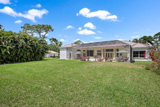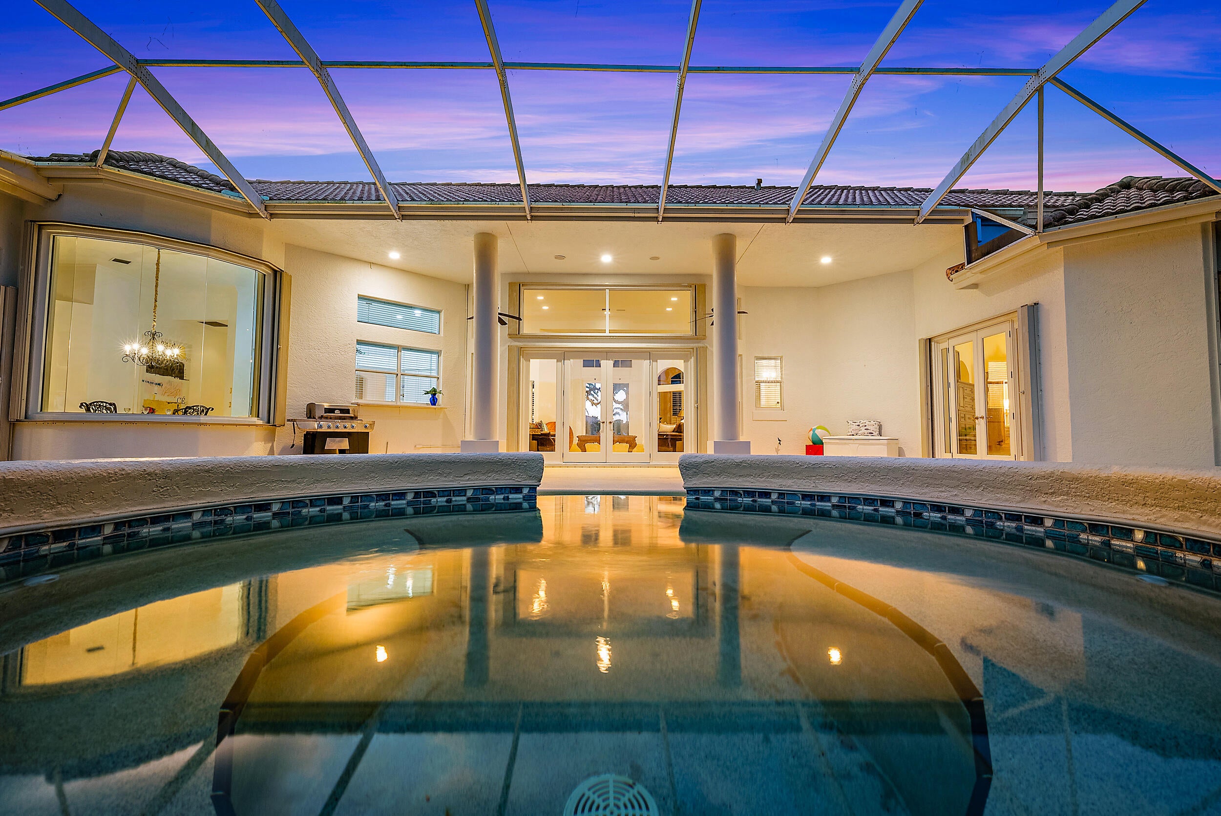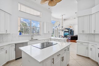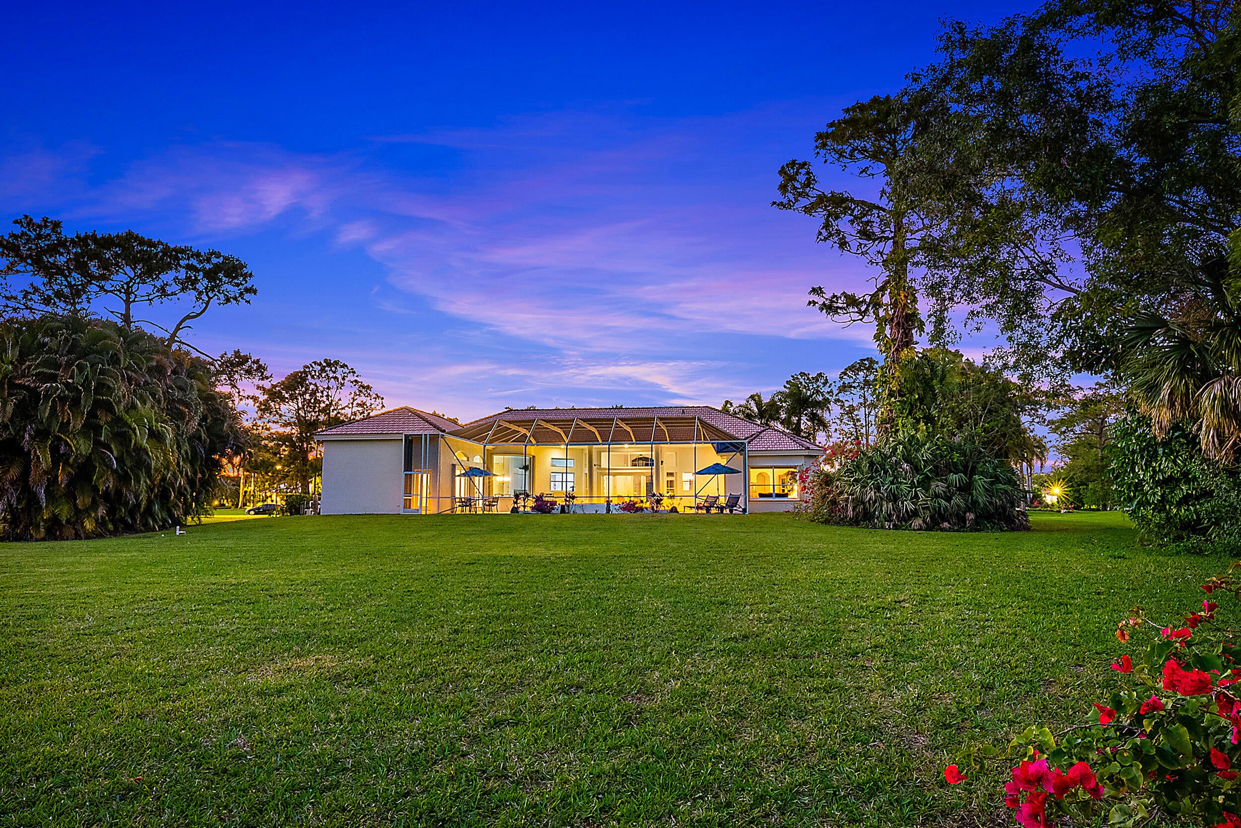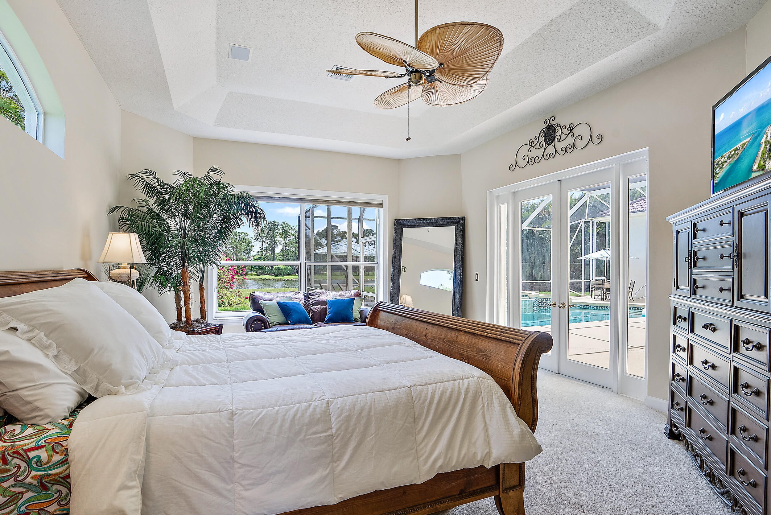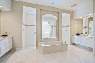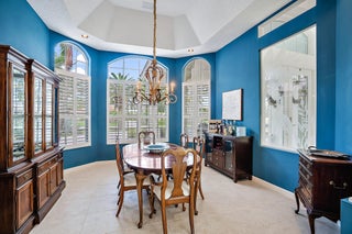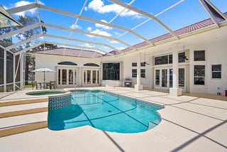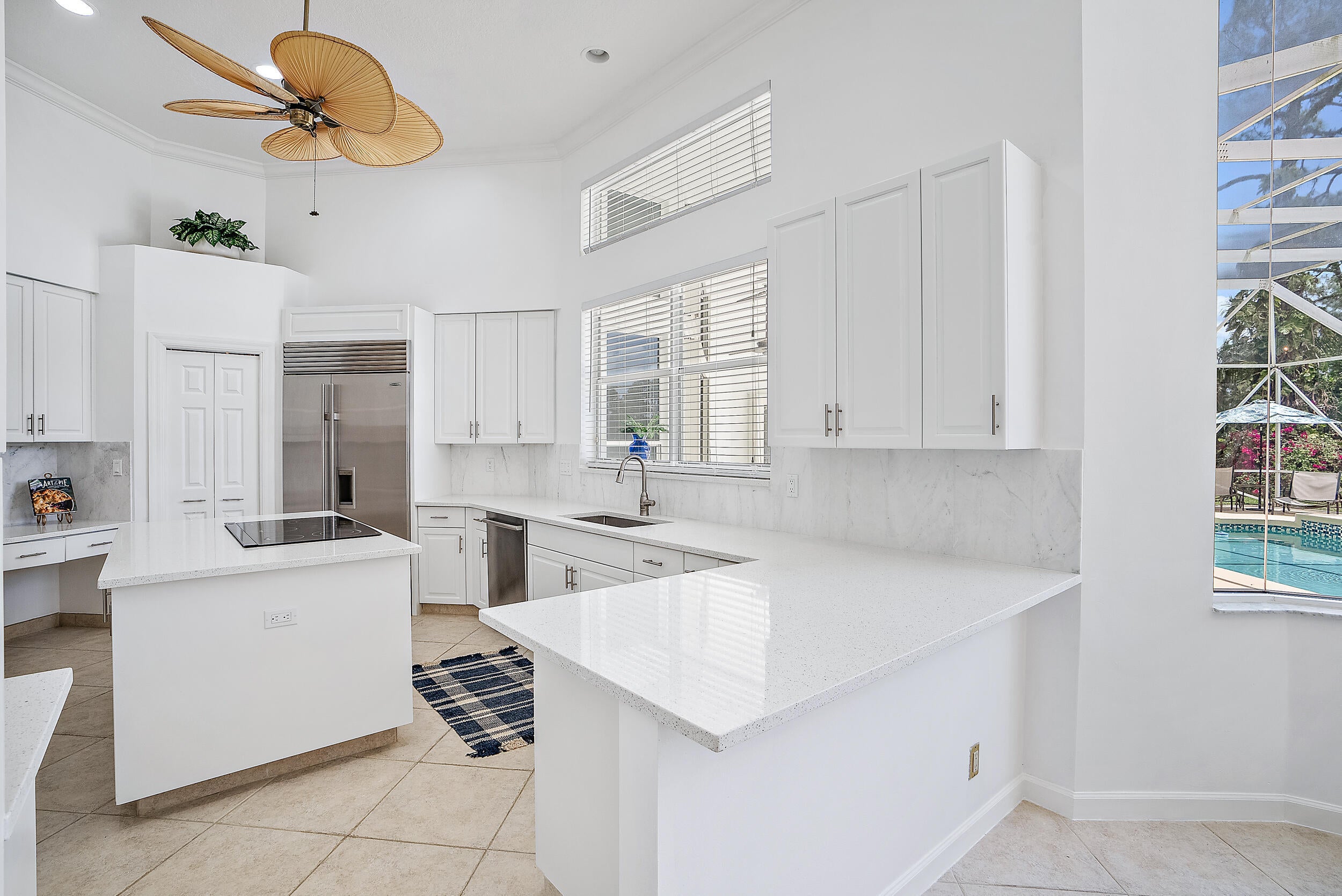 Welcome to your own 1.05 ACRE ESTATE located in the sought-after Bay Hill Estates neighborhood of Palm Beach Gardens. From the moment you approach the magnificent property, you'll be wowed by the dramatic circular driveway and regal Porte Cochere entry, flanked by lion statues. Perfect for entertaining and casual living, the open floor plan has expansive views of the lake from most of the windows in the home. Soaring 18-foot ceilings in the living room provide major architectural drama, while the outdoor pool and open patio draws one's eye outside to the tropically landscaped property. Enjoy immense privacy as you're secluded from neighbors. Three full bedrooms, including a spacious 15ft x 24ft Primary Bedroom, plus a convertible bedroom/den/office. Both secondary bedrooms are en suite.Enjoy new countertops, refinished cabinetry, and new backsplash in the fabulous kitchen. The primary bath boasts marble flooring, as well as new countertops, sinks and fixtures. New fixtures and vanities in the two powder baths. New flooring in guest bedrooms. The 5-ton HVAC was replaced in 2020 and the 3-ton HVAC was replaced in 2018. A golf membership is available, but not required, through PGA National. Bay Hill Estates is a gated community with proximity to the heart of Palm Beach Gardens' world-class shopping and restaurants.
