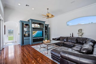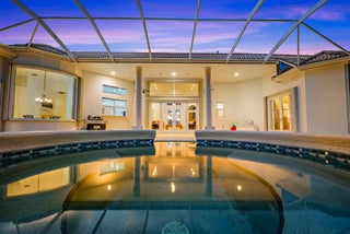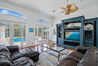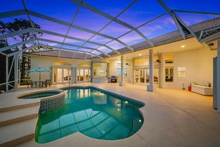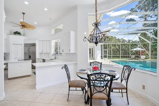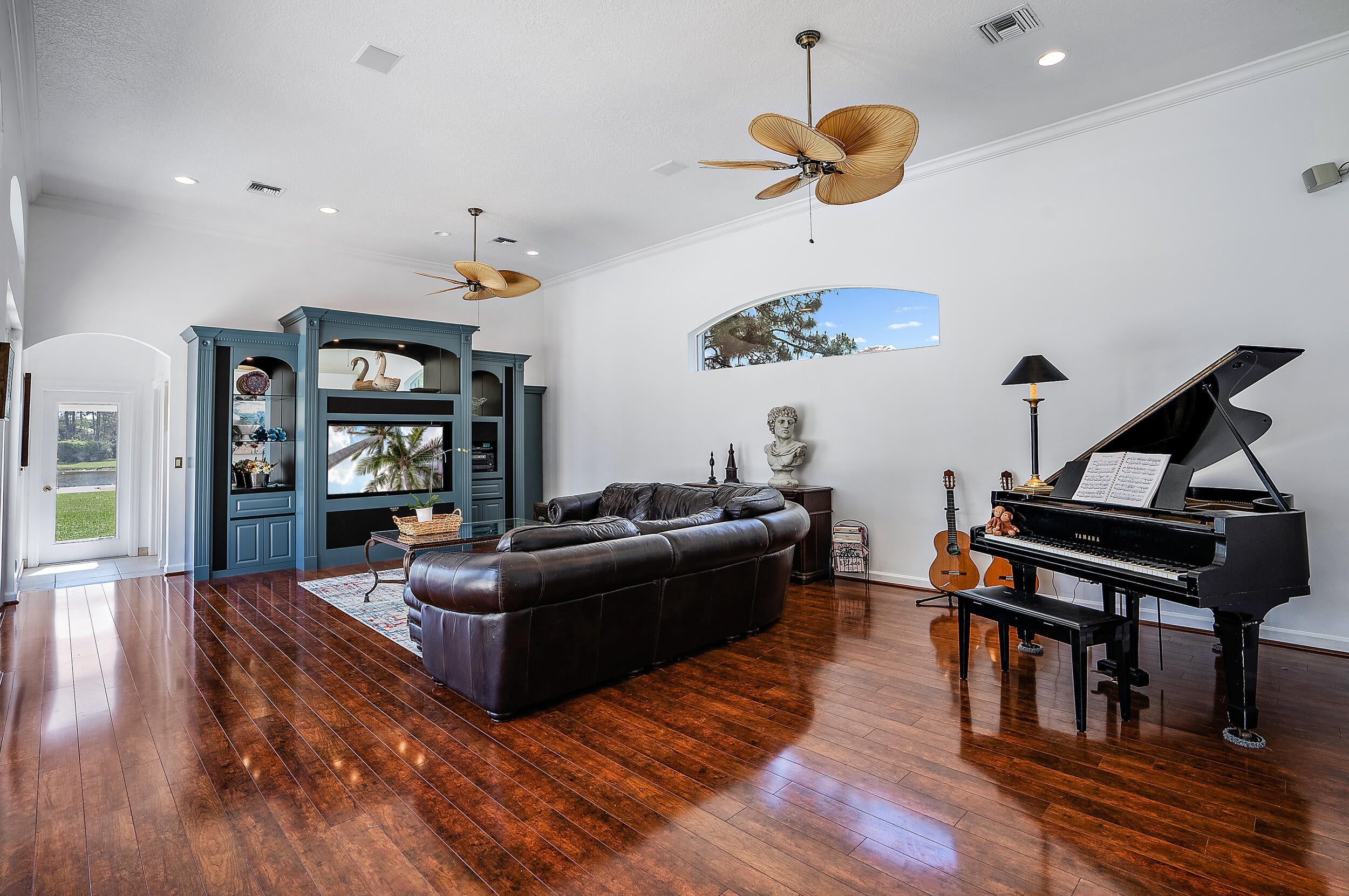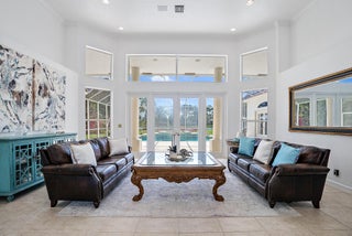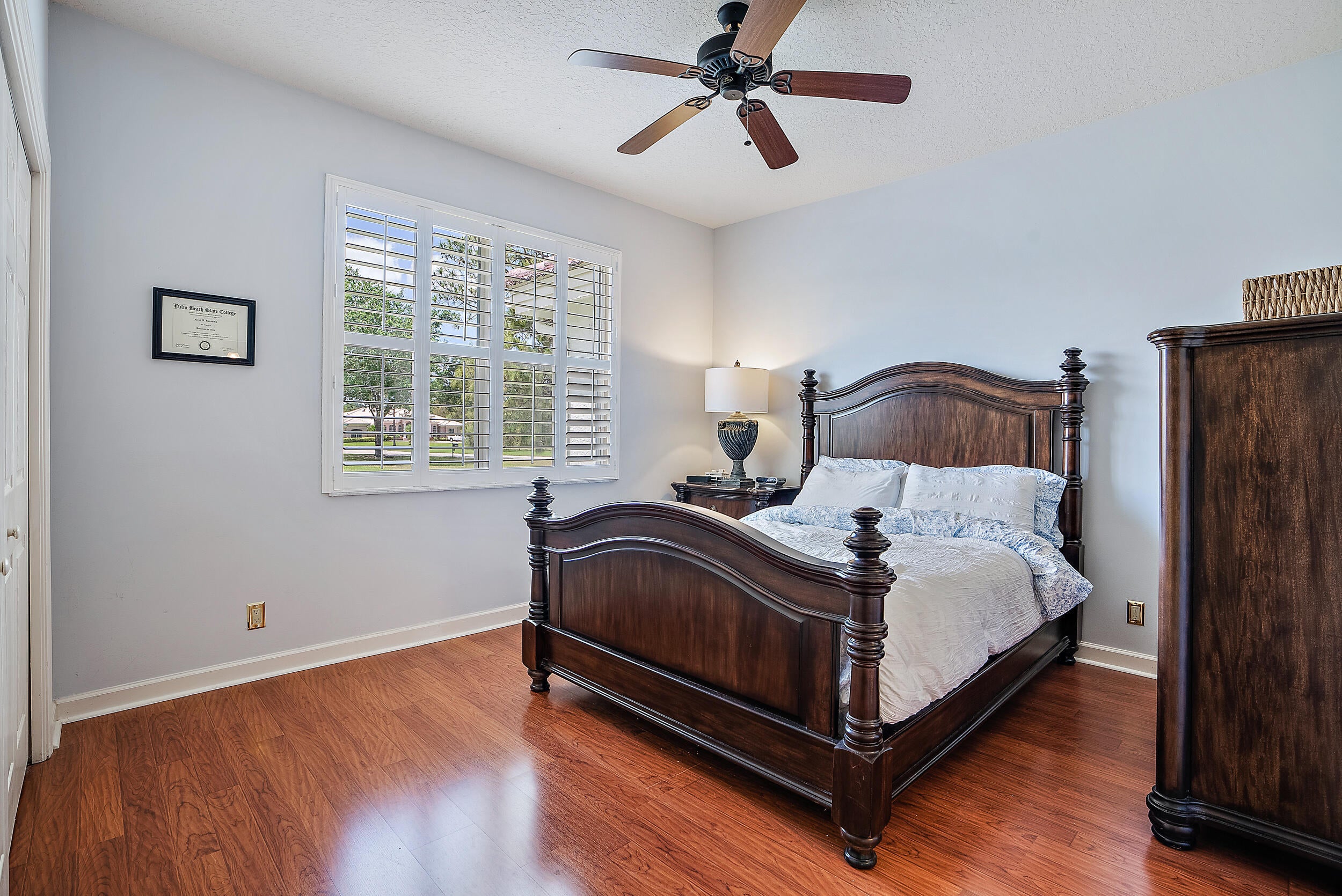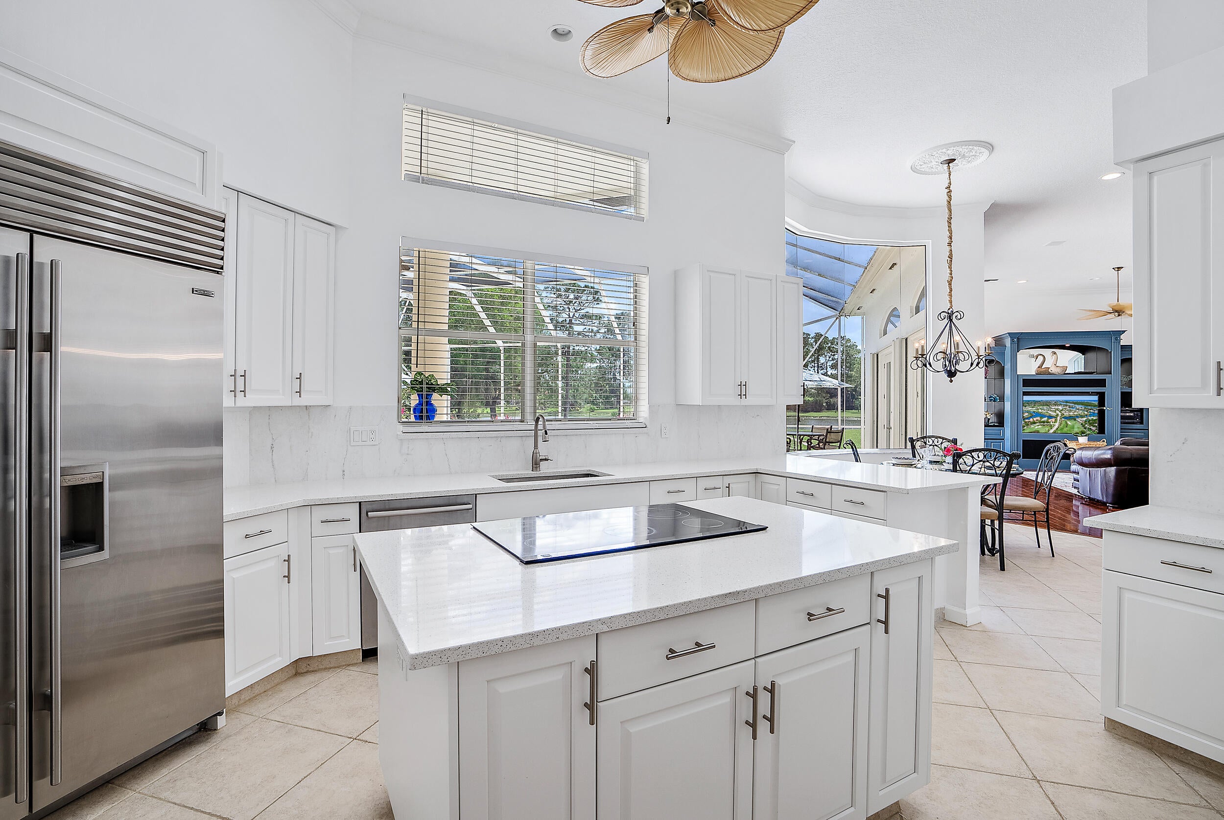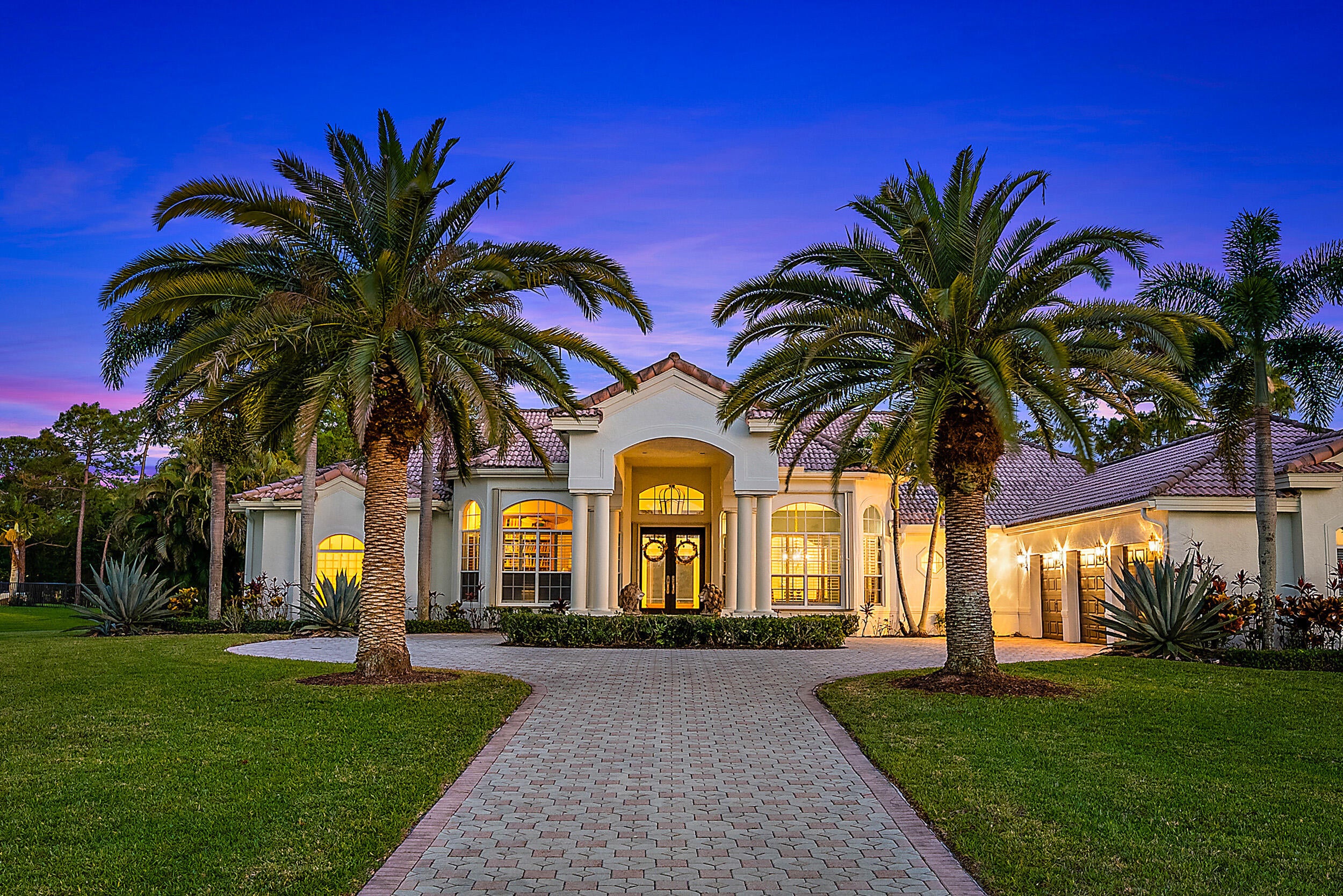 Welcome to your own 1.05 ACRE ESTATE located in the sought-after Bay Hill Estates neighborhood of Palm Beach Gardens. From the moment you approach the magnificent property, you'll be wowed by the dramatic circular driveway and regal Porte Cochere entry, flanked by lion statues. Perfect for entertaining and casual living, the open floor plan has expansive views of the lake from most of the windows in the home. Soaring 18-foot ceilings in the living room provide major architectural drama, while the outdoor pool and open patio draws one's eye outside to the tropically landscaped property. Enjoy immense privacy as you're secluded from neighbors. Three full bedrooms, including a spacious 15ft x 24ft Primary Bedroom, plus a convertible bedroom/den/office. Both secondary bedrooms are en suite.Enjoy new countertops, refinished cabinetry, and new backsplash in the fabulous kitchen. The primary bath boasts marble flooring, as well as new countertops, sinks and fixtures. New fixtures and vanities in the two powder baths. New flooring in guest bedrooms. The 5-ton HVAC was replaced in 2020 and the 3-ton HVAC was replaced in 2018. A golf membership is available, but not required, through PGA National. Bay Hill Estates is a gated community with proximity to the heart of Palm Beach Gardens' world-class shopping and restaurants.