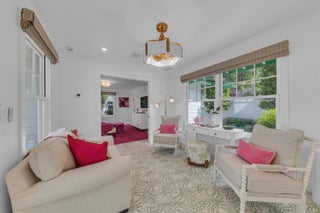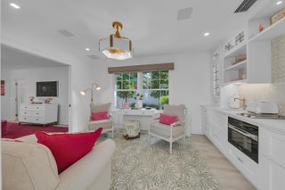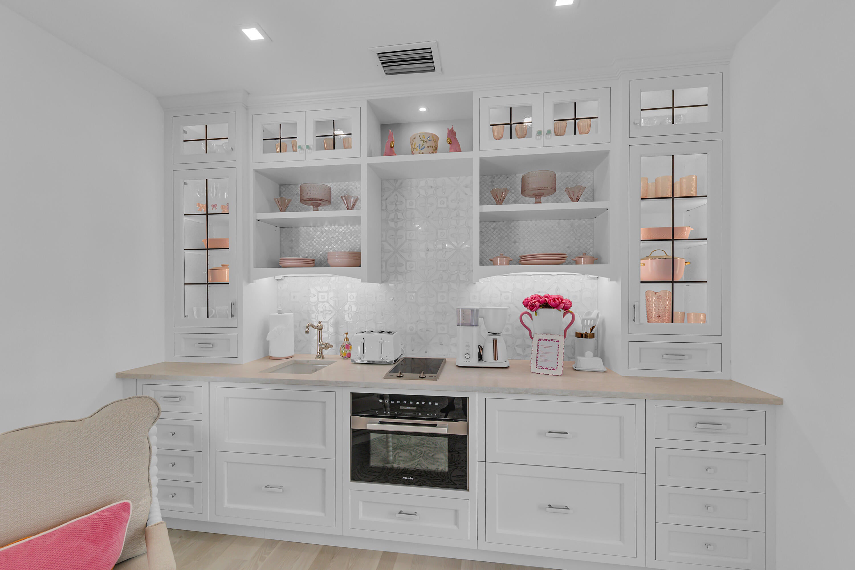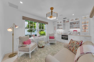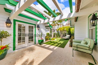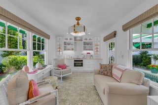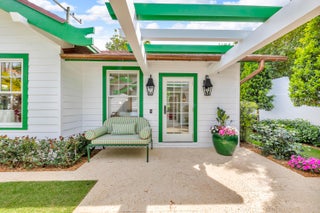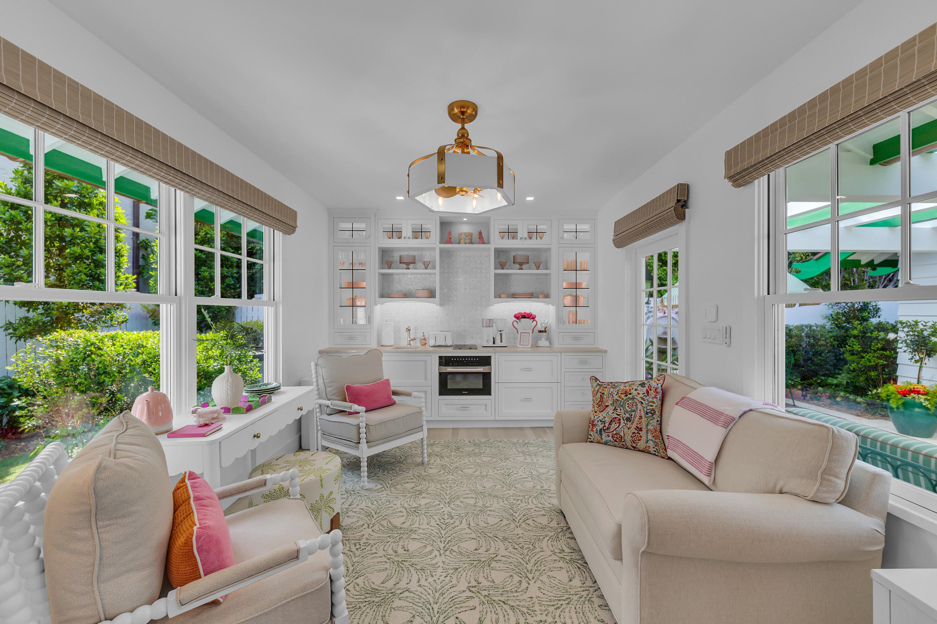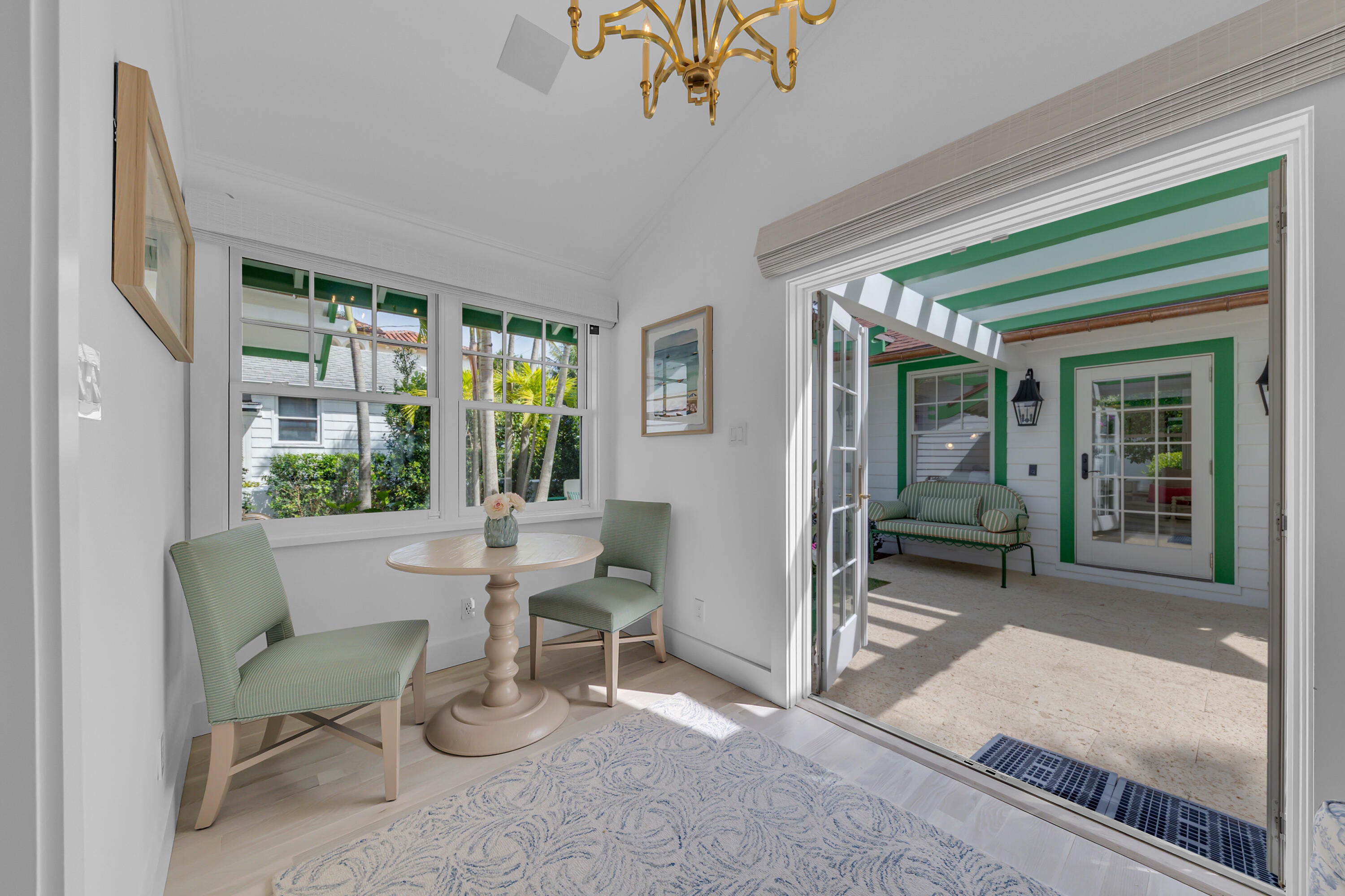 Rare Opportunity to Own a Piece of Palm Beach History. Step back in time when you enter this historic one-story Bungalow, originally built circa 1918. Landmarked by the current owner in November 2023, the home has been completely and lovingly renovated and preserved. This charming Bungalow features impact resistant, Double Hung Andersen windows, a new asphalt shingle roof, copper gutters, Detroit brick walkways, white picket fences and a delightful water fountain feature in the rear yard. Interiors boast original pecky cypress ceilings with matching built-in hutch, a gas fireplace, and an exceptional Jim Dove Design gourmet kitchen, featuring a handsome La Cornue gas stove and leaded glass in the cabinetry. Amazingly, this lot features not one, but two standalonehouses! The main house has two bedrooms and two marble baths. The rear cottage features one bedroom and one bath and a full kitchenette with Miele appliances. The two structures are excellent examples of the Bungalow style of architecture popular in the early twentieth century. Their distinguishing characteristics include the original cypress clapboard siding, low-pitched gable roofs with wide cave overhangs, and exposed rafter tails plus the original front porch Coral stone piers, which match the tall chimney constructed of the same. The landscaping is comprised entirely of Florida native plantings.
