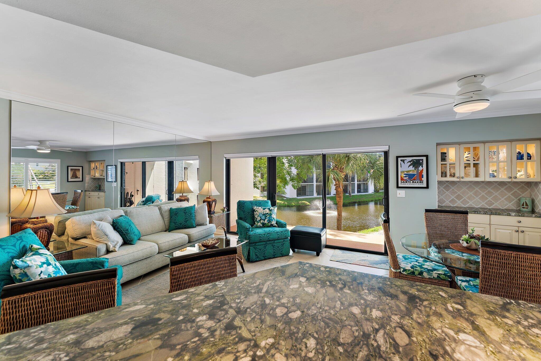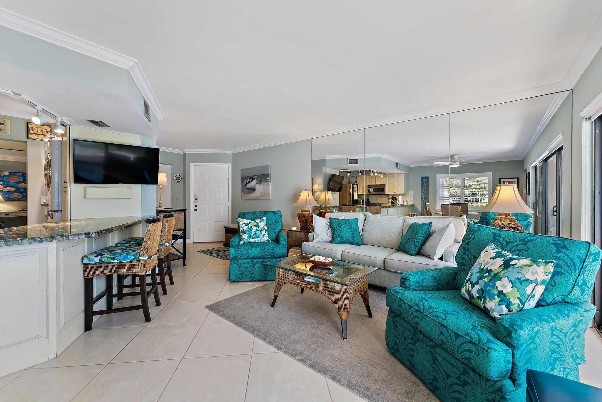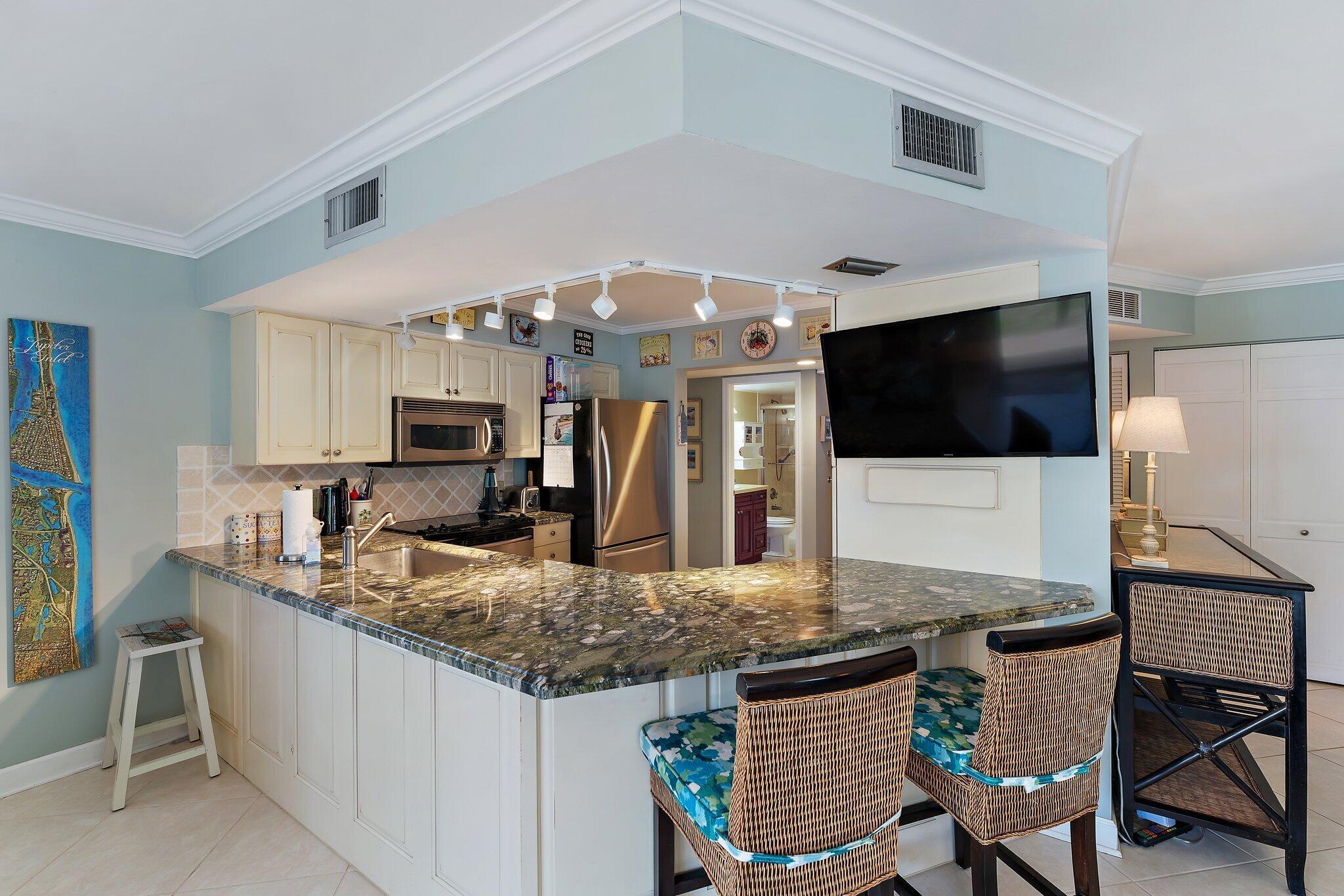 Rented Jan/Feb 2026- Perfection!!! This Coastal Charmer will delight you. Renovated with newer furniture. New Kitchen/Bathrooms. Impact windows. Perfect Condition. Just 3 minute walk to Jupiter Beach. Community Pool close by. King in Master with ensuite with walk in Shower. Twin beds in 2nd BR. Elevator bldg. Tile thru-out. Screened Balcony overlooking fountain. Gorgeous sun sets. Close enough to the Beach to hear the rolling surf & enjoy the ocean breezes. 13% tax on terms less than 6 mo 1 day. $100 JLR Compliance fee; $300 Exit Clean Fee.