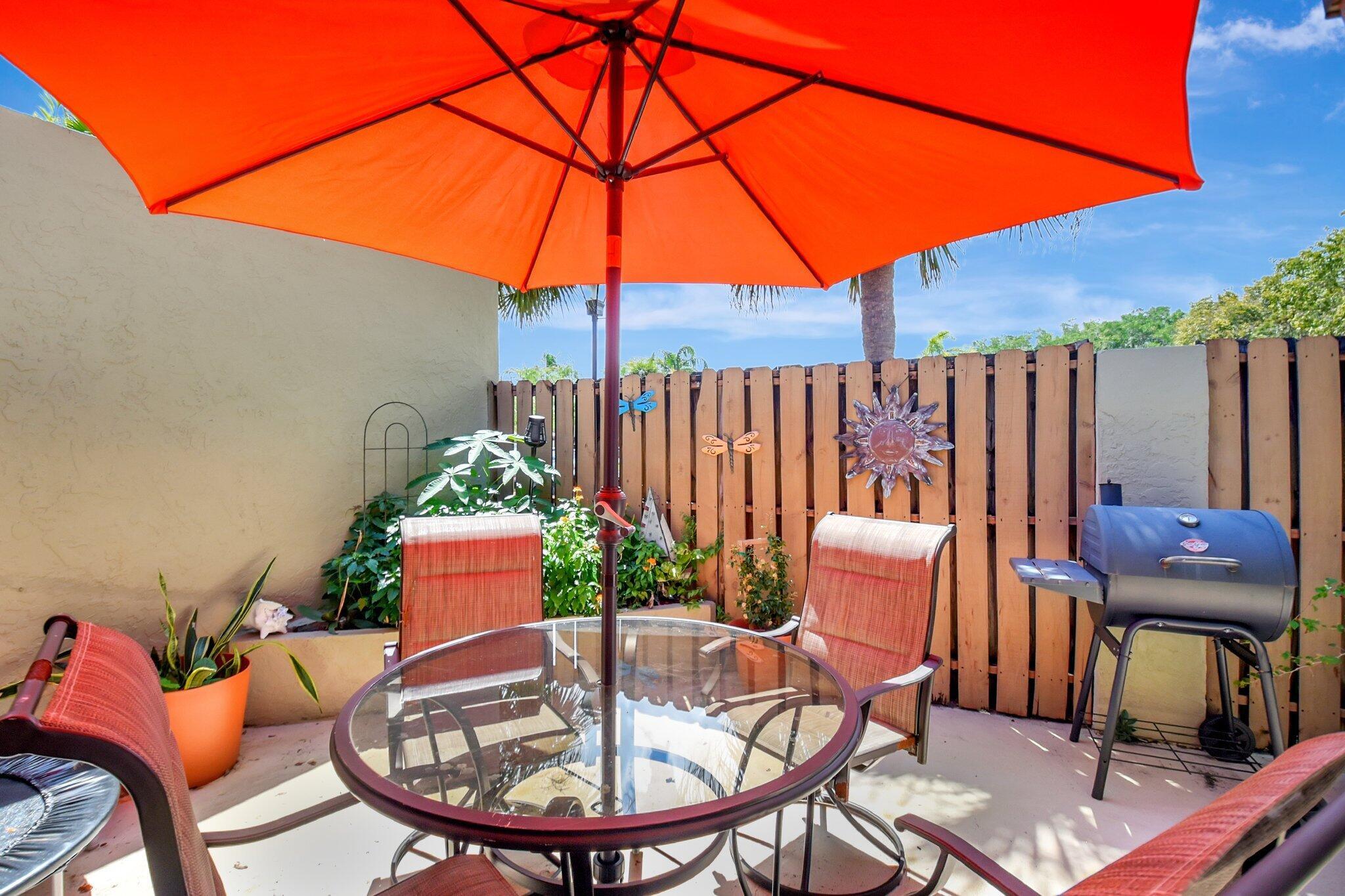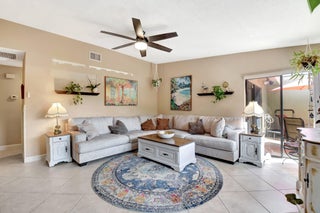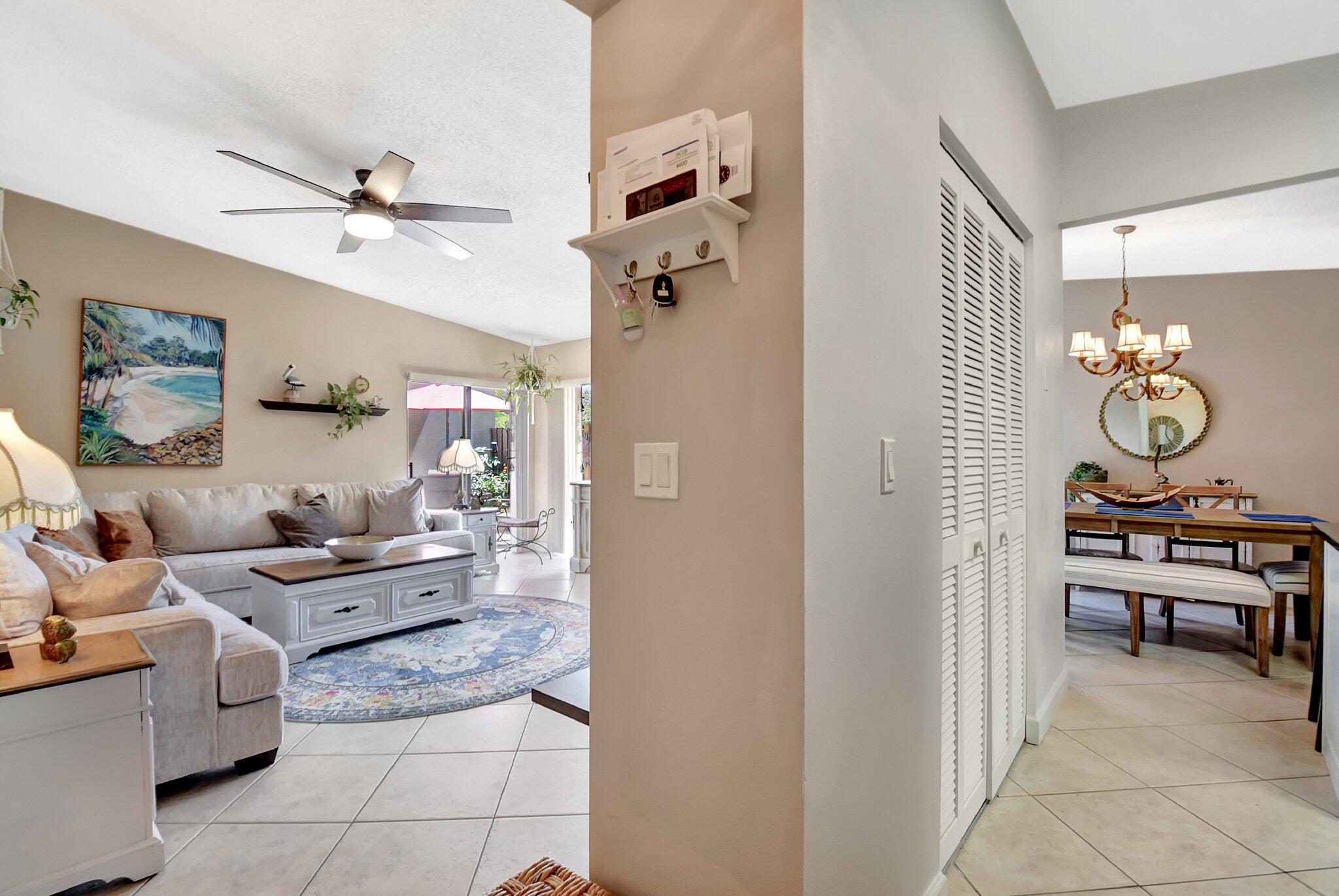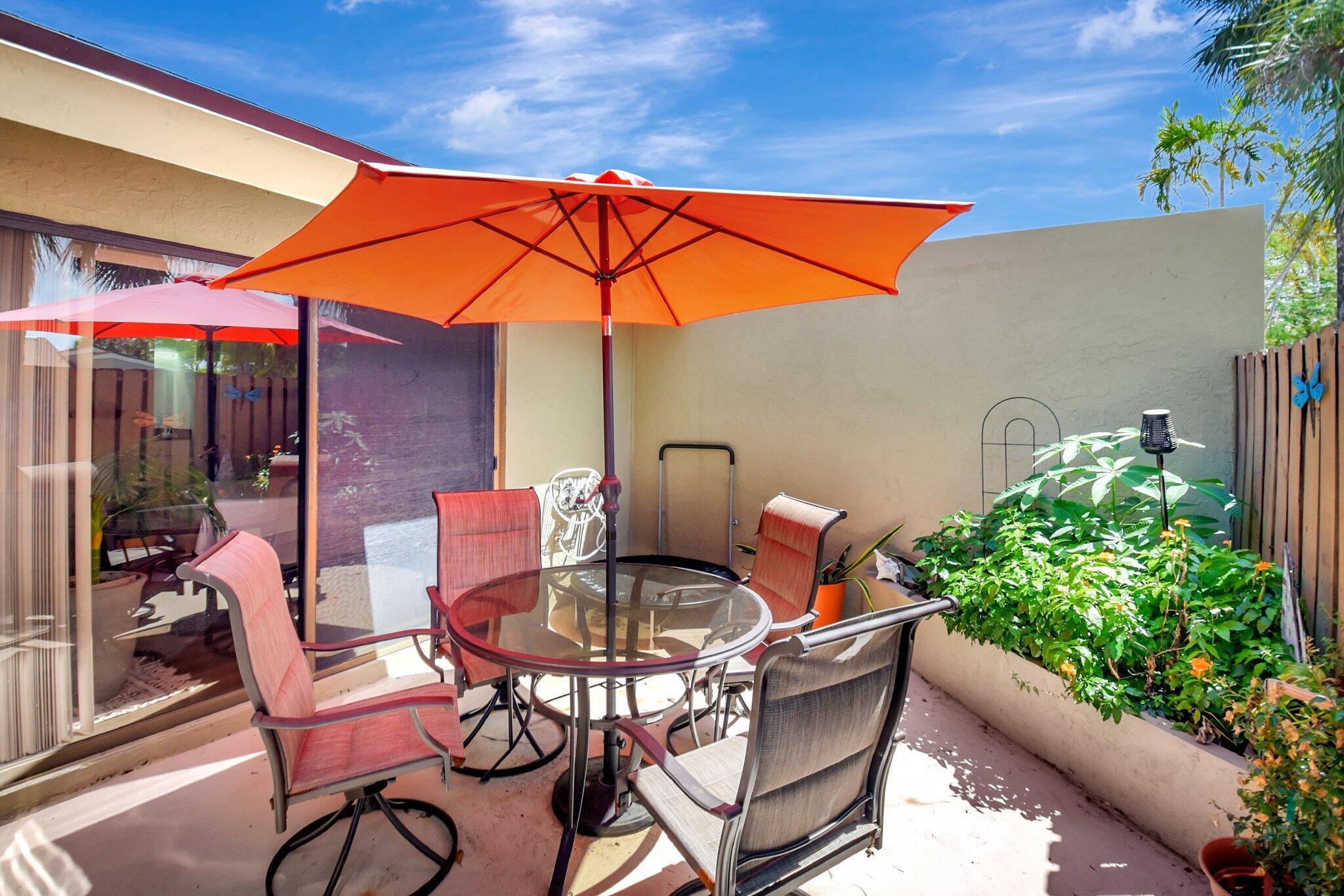 Discover the perfect blend of comfort, style, and value in this beautifully updated 2-bedroom, 2-bath villa! Boasting 1263 square feet of thoughtfully designed living space, this split-bedroom layout features soaring volume ceilings and custom tile flooring throughout the spacious main living areas. Step into the updated kitchen and bathrooms--modern, functional, and ready to impress. Freshly painted and truly move-in ready, this home offers peace of mind with a newer A/C and a recently replaced roof. This lovely community is well kept and features gorgeous grounds and amenities, including a community pool. Enjoy Florida living at its best in the expansive private courtyard--ideal for entertaining or simply soaking up the sunshine.Centrally located with unbeatable access to both I-95 and Florida's Turnpike, you'll love being just minutes from top-rated restaurants.