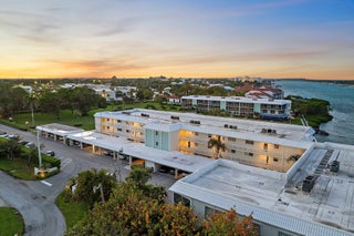Waterway Beach condo is a hidden gem on 6 acres of prime intracoastal property with 500+ feet of water frontage & breathtaking views. This updated, spacious condo features 1800+ sq ft, impact windows/doors, epoxy flooring & custom pull out shoe closets. The kitchen offers modern custom cabinets, silestone countertops, granite sink, & LED under cabinet lighting. The guest bath offers a touch vanity light up sink & frameless glass shower enclosure. The primary suite has crown molding, blackout blinds & stunning views. Enjoy an oversized screened in patio, perfect for watching manatees, sea turtles, & dolphins. Explore the natural sandbar at low tide. This pet friendly community offers a pool, clubhouse, shuffleboard, & paddleboard storage. Walk or bike to dining, shopping & beaches.