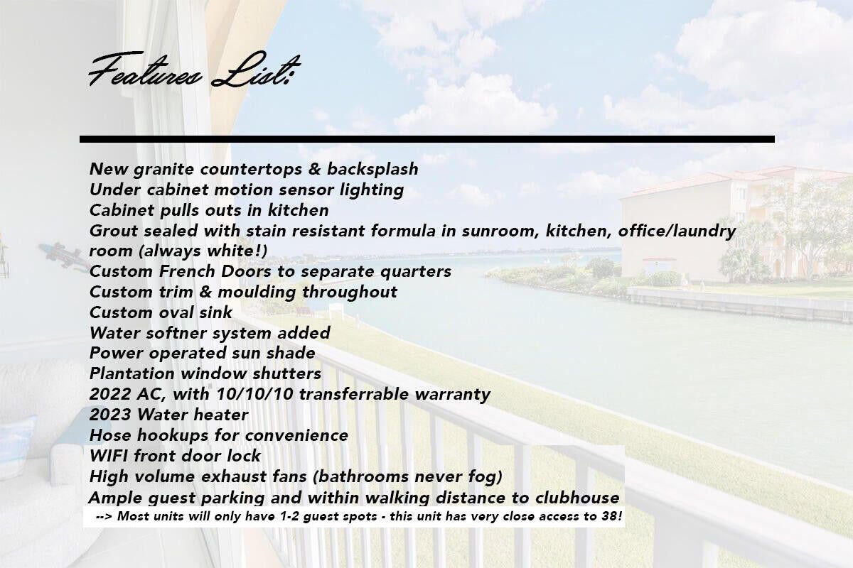 ***FULLY RENOVATED AND BEST PRICED LISTING, VIEW & UPGRADES*** This beautiful condo on S. Hutchinson Island is located in THE premier building on the East side of Harbour Isle. Enjoy the spectacular view of the inlet with boats leaving the marina from your sunroom, gorgeous morning sunrises & long range views of the Indian River. Features include fully renovated kitchen, all wood plank tile flooring, french doors separating 2nd bedroom & bath, drink from the tap with whole house water filtration, auto blinds & plantation shutters & lots more. Ample guest parking is available in front of the building & walking distance to the NEWLY renovated clubhouse, gym, pool, tennis, pickle ball, & grills. Please see feature sheet in pictures for ALL the upgrades this beautiful unit has!