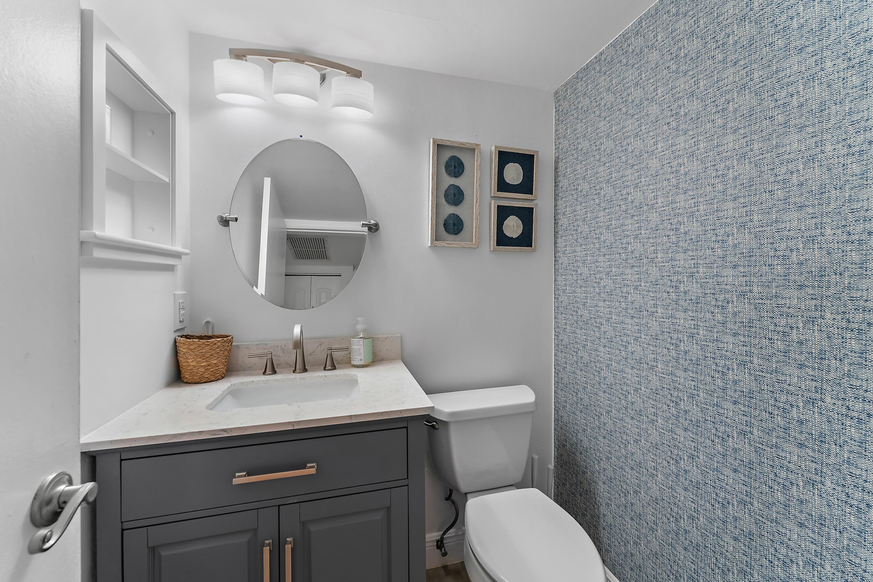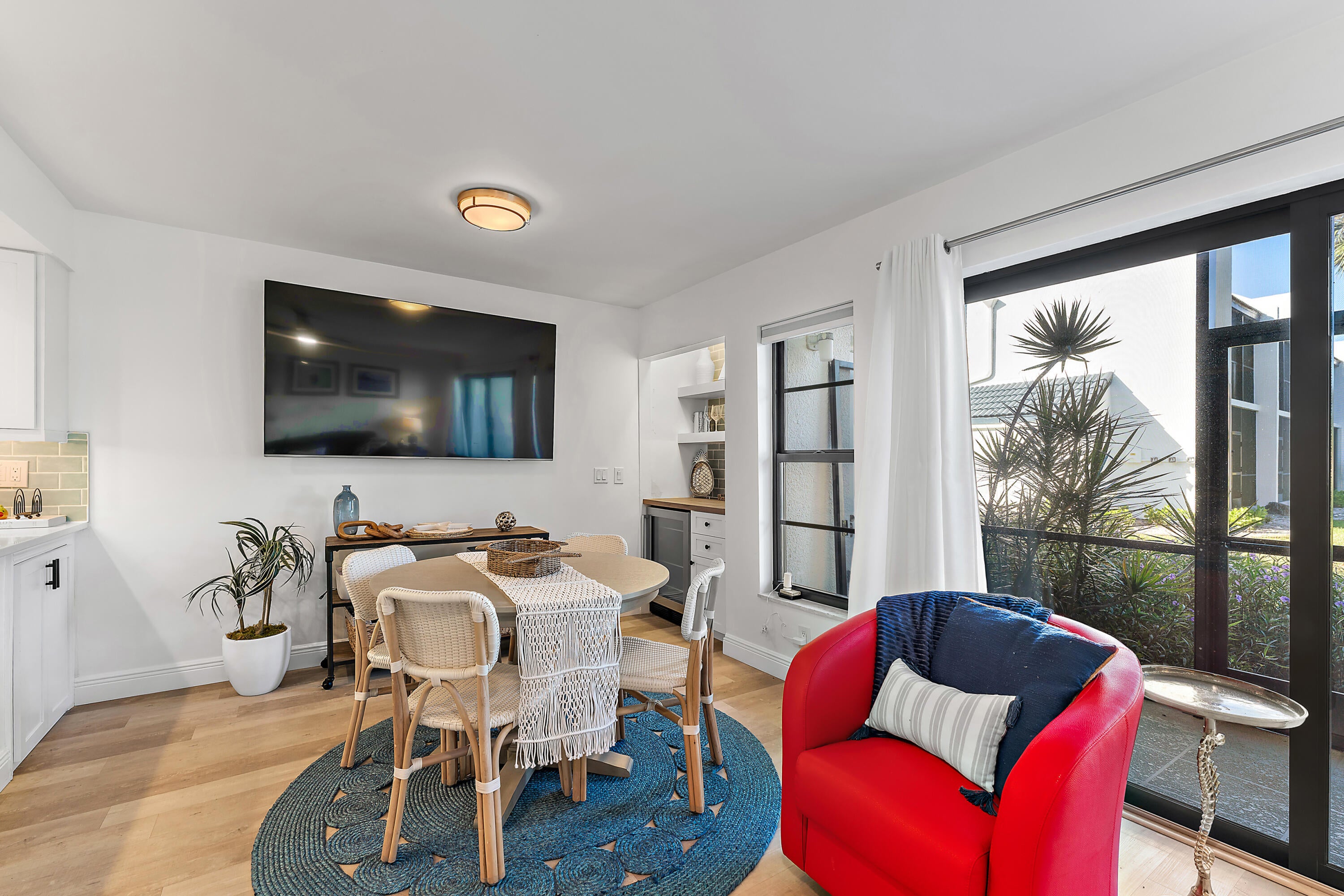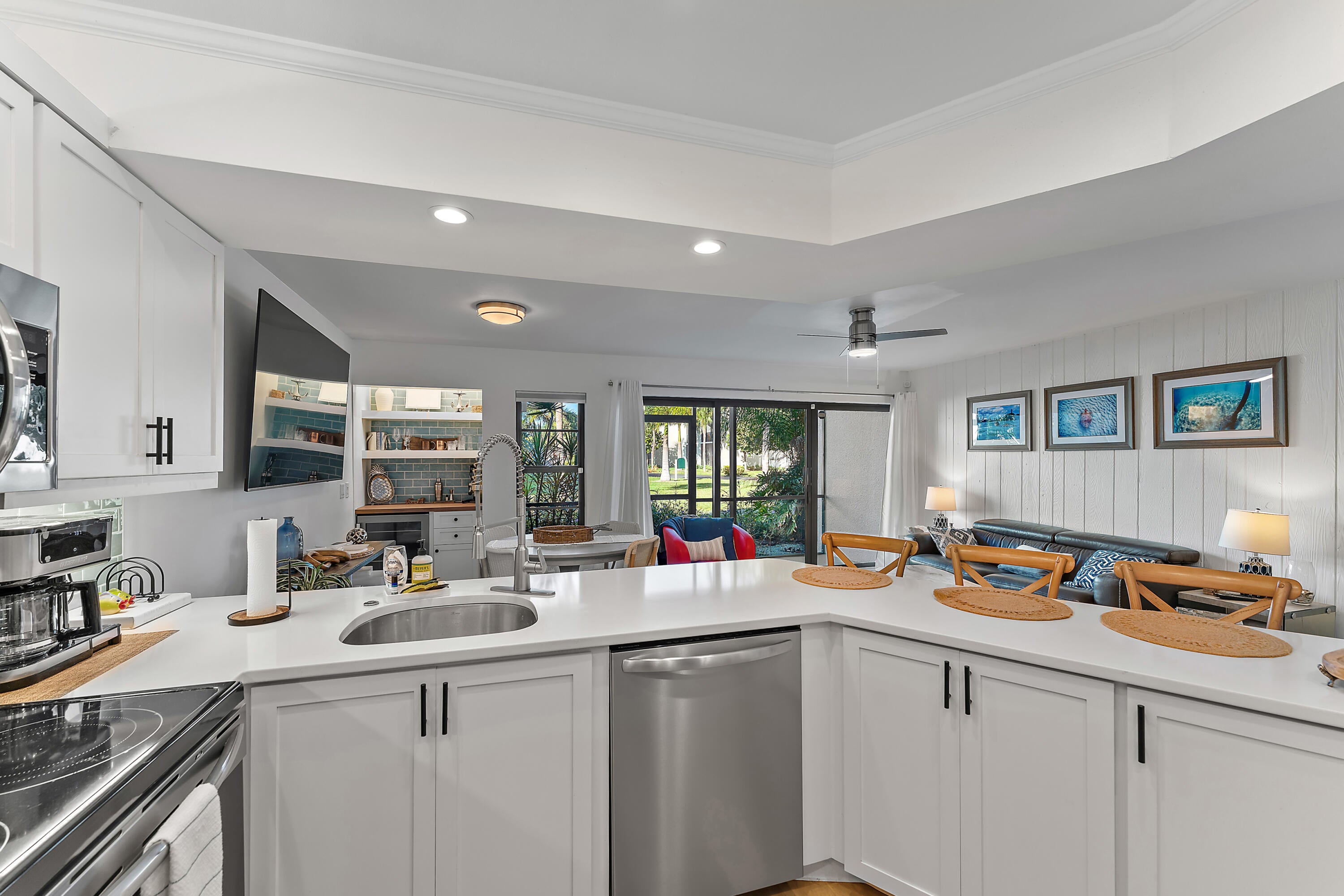 Located in Jupiter Ocean & Racquet Club, this 1-bedroom, 1.5-bath condo offers an updated and move-in-ready coastal living experience. Recent enhancements include a completely refreshed kitchen featuring refaced cabinetry, quartz countertops, and stainless steel appliances. The open living area includes a new sleeper sofa and an added bar with beverage center, providing flexibility for both daily living and entertaining. The home showcases luxury vinyl flooring throughout, a walk-in shower in the upgraded full bath, refreshed vanities in both bathrooms, and a spacious walk-in closet in the bedroom. Other functional upgrades include impact windows and sliders, a 2021 roof, 2021 AC, and a 2019 water heater. Enjoy your morning coffee on the peaceful, north-facing patio or take a walk through the beautifully landscaped community. Amenities include two pools, a clubhouse, and patrolled security. The unit includes in-unit laundry and assigned parking. Just a short walk to Jupiter's iconic beaches and the scenic Riverwalk Trail, this condo is perfect for those seeking a well-maintained property in a prime location. Pet-friendly (up to 35 lbs).