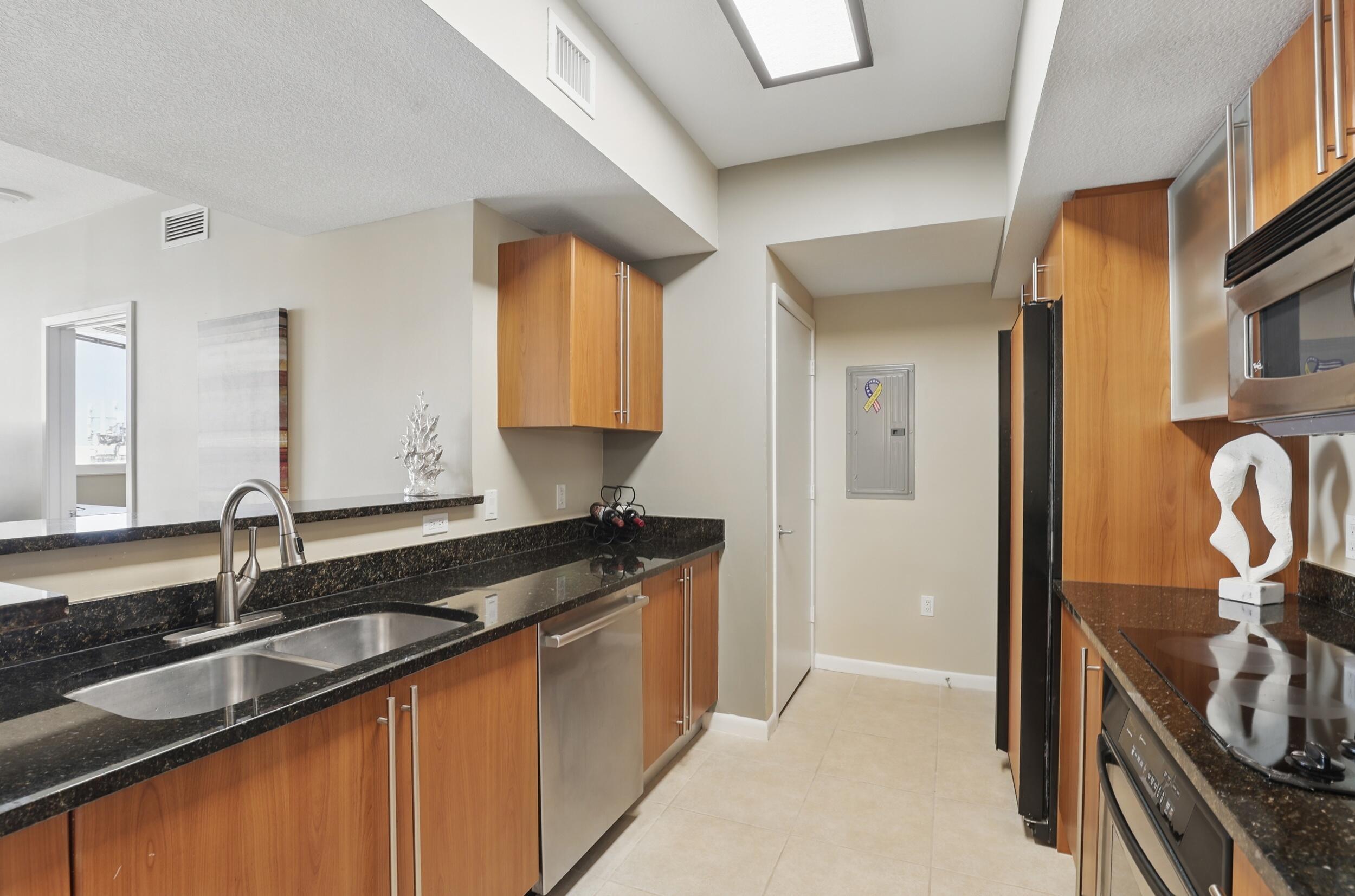 Welcome to The Slade, West Palm Beach's premier waterfront building. This 14th-floor 2BR/2BA condo offers sweeping views of the Intracoastal and Palm Beach Island. Enjoy an open layout, impact glass, a split floor plan, and a private balcony perfect for sunrises and seasonal fireworks. The kitchen features granite counters, stainless steel appliances, and bar seating. Amenities include 2 pools, fitness center, concierge, valet, club room, business center, and more--just minutes from downtown and is being sold fully furnished and turnkey, A great investment/rental opportunity.