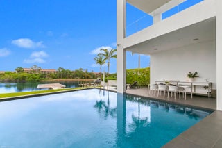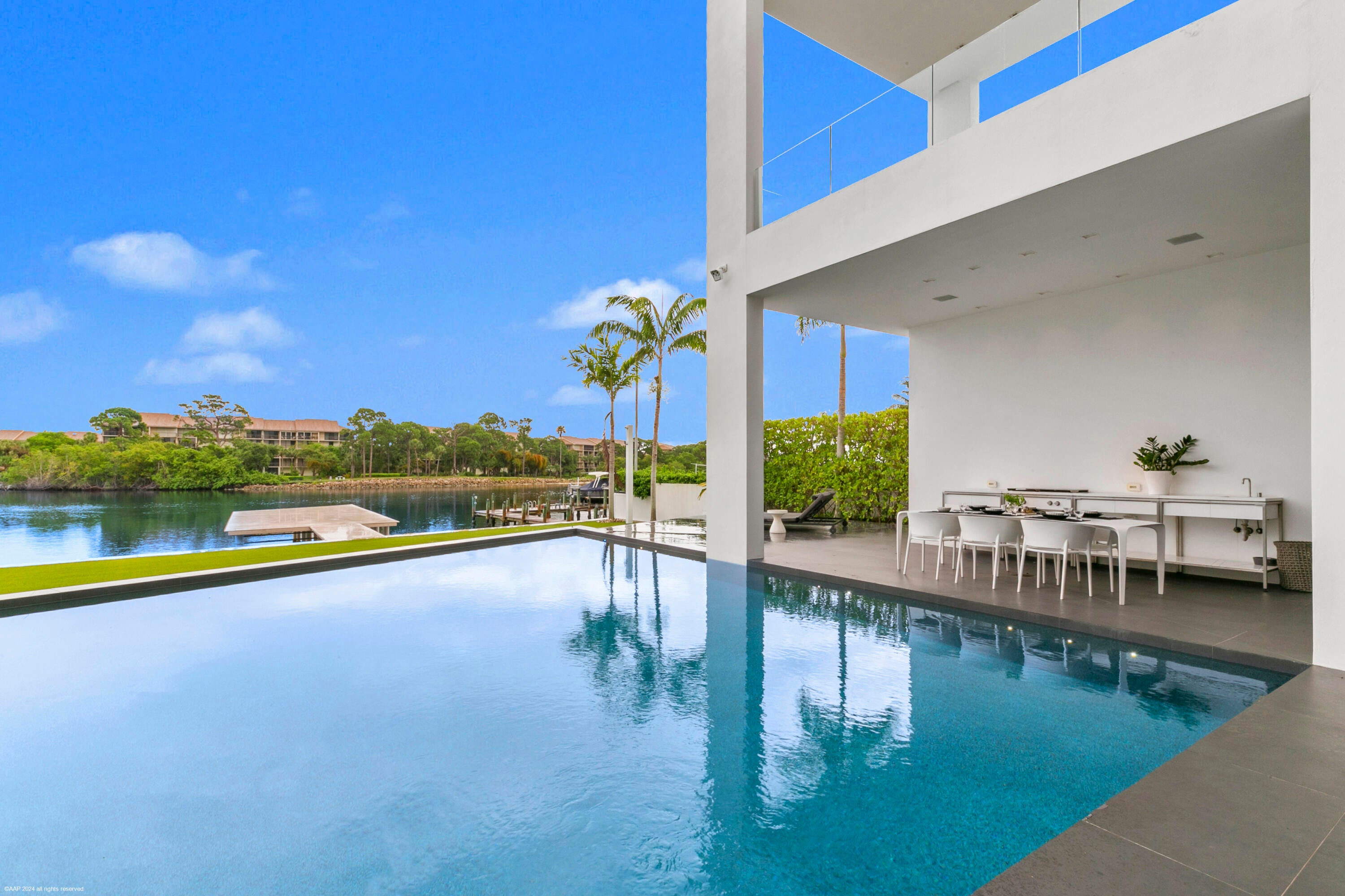 Nestled in prestigious Palm Beach Gardens, this stunning single-family home epitomizes luxury living with its gorgeous water views and ultra-modern design. Boasting a prime location, every aspect of this residence exudes elegance and comfort.Upon entering, you are greeted by an expansive foyer that leads seamlessly into the spacious living areas. The interiors are adorned with high-end finishes, including large format tile floors, custom Bizassa tiled bathrooms, designer light fixtures, and soaring windows and glass doors, creating an ambiance of sophistication with unobstructed views. The gourmet kitchen is a chef's dream, featuring state-of-the-art appliances, sleek cabinetry, and a center island perfect for culinary creations or casual gatherings. Adjacent, the dining areaNestled in prestigious Palm Beach Gardens, this stunning single-family home epitomizes luxury living with its gorgeous water views and ultra-modern design. Boasting a prime location, every aspect of this residence exudes elegance and comfort.Upon entering, you are greeted by an expansive foyer that leads seamlessly into the spacious living areas. The interiors are adorned with high-end finishes, including large format tile floors, custom Bizassa tiled bathrooms, designer light fixtures, and soaring windows and glass doors, creating an ambiance of sophistication with unobstructed views. The gourmet kitchen is a chef's dream, featuring state-of-the-art appliances, sleek cabinetry, and a center island perfect for culinary creations or casual gatherings. Adjacent, the dining area offers panoramic views of the waterfront, setting the stage for memorable meals with family and friends. The primary suite is a sanctuary of relaxation, complete with an expansive private terrace overlooking the serene waterways, a luxurious European designed en-suite bathroom with a generous soaking tub, grand walk-in shower with rain showerhead, dual vanities, and ample closet space for ultimate convenience. Outside, the expansive lanai and inviting pool area provide an ideal setting for outdoor living and entertainment. Enjoy breathtaking views from the infinity-edge pool, host a family BBQ at the outdoor summer kitchen with seamless access to the interior kitchen, or unwind at the firepit table while soaking in the picturesque surroundings. The VIP guest suite, or second primary bedroom, is generously spacious, featuring a layout that exudes both privacy and openness. The floor to ceiling windows and sliding glass doors allows for panoramic views of the waterway and offer an enormous amount of natural light with direct access to the private covered lanai. Boasting a spa-like European style en-suite bathroom, spacious walk-in shower with rainfall showerhead, dual vanities with ample counter space and storage cabinets are seamlessly integrated into the design. The thoughtfully designed walk-in closet can accommodate both short-term and long-term stays. It features custom shelving, drawers, and hanging space for clothing and personal items, ensuring guests feel at home during their stay. Additional highlights of this exclusive residence include a private deck for basking in the South Florida warmth, a wine cellar for connoisseurs, a media room for cozy movie nights, state-of-the-art home technology with built in sound system- all controlled from the convenience of your ipad or cell phone, a meticulously kept oversized 3-car garage that is climate controlled and features sufficient storage. Fragrant herbs flourish in the personal herb garden at the front of the estate. Located in one of South Florida's most coveted areas, you will enjoy easy access to fine dining, shopping, and entertainment options, as well as proximity to pristine beaches and world-class golf courses.