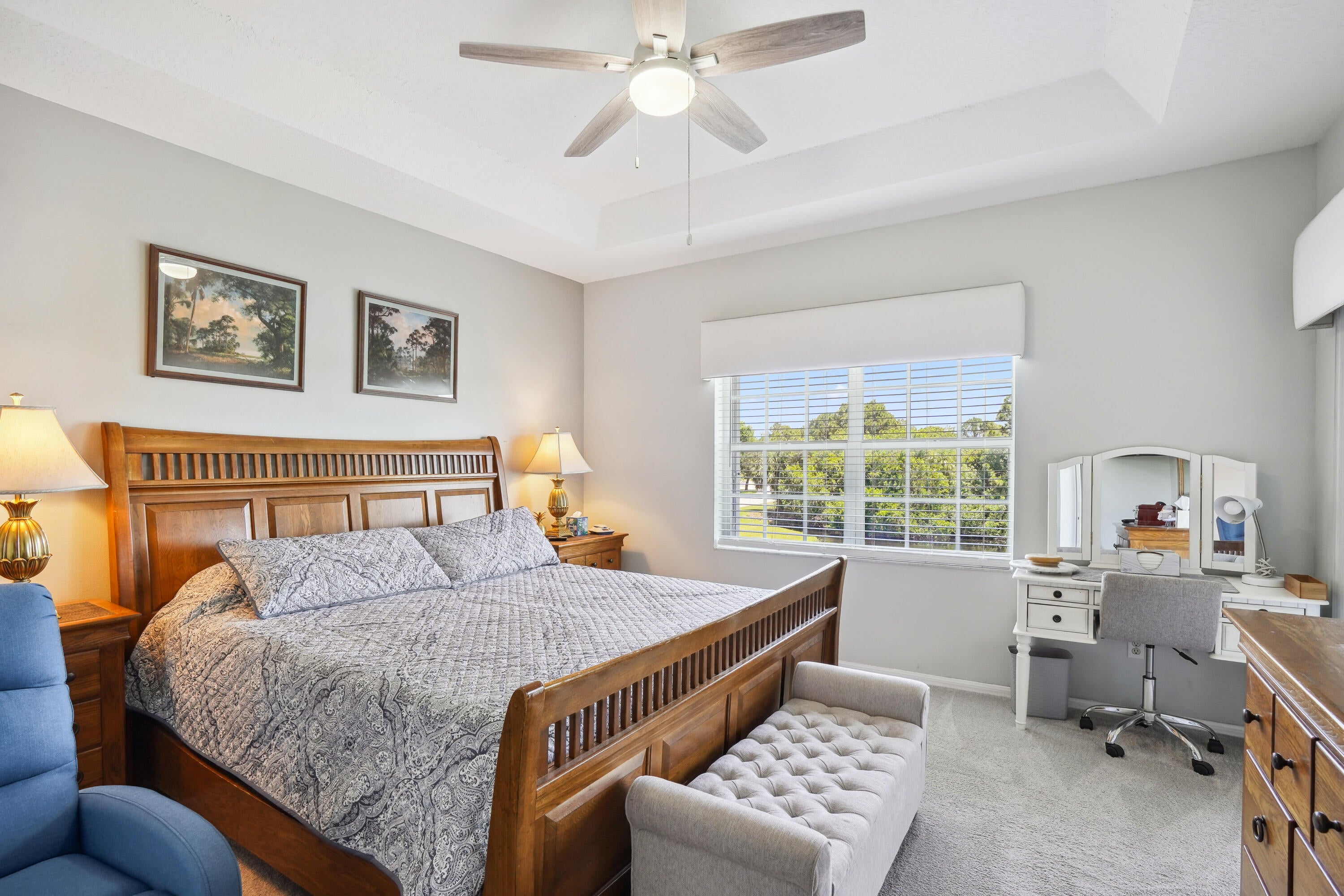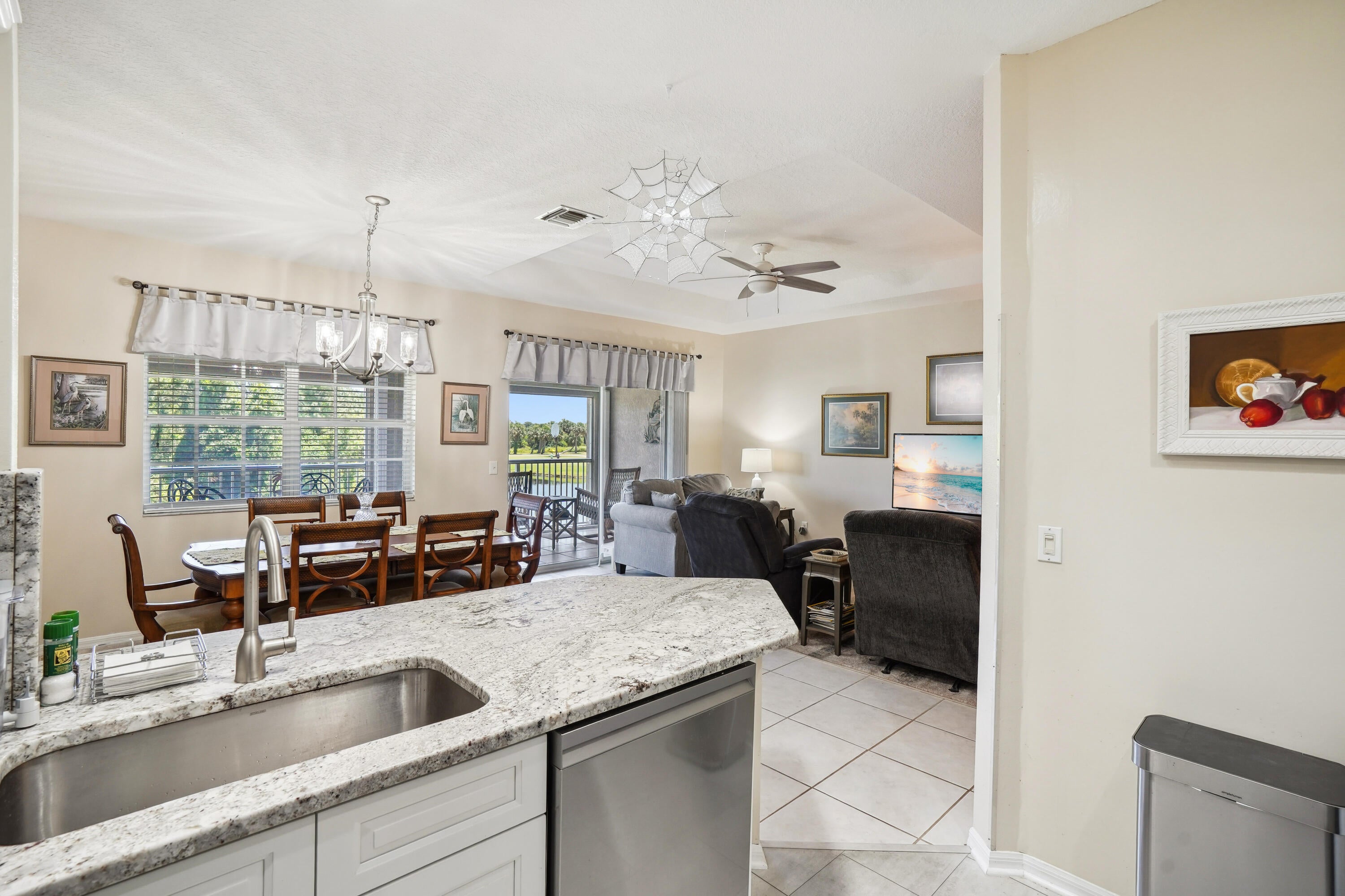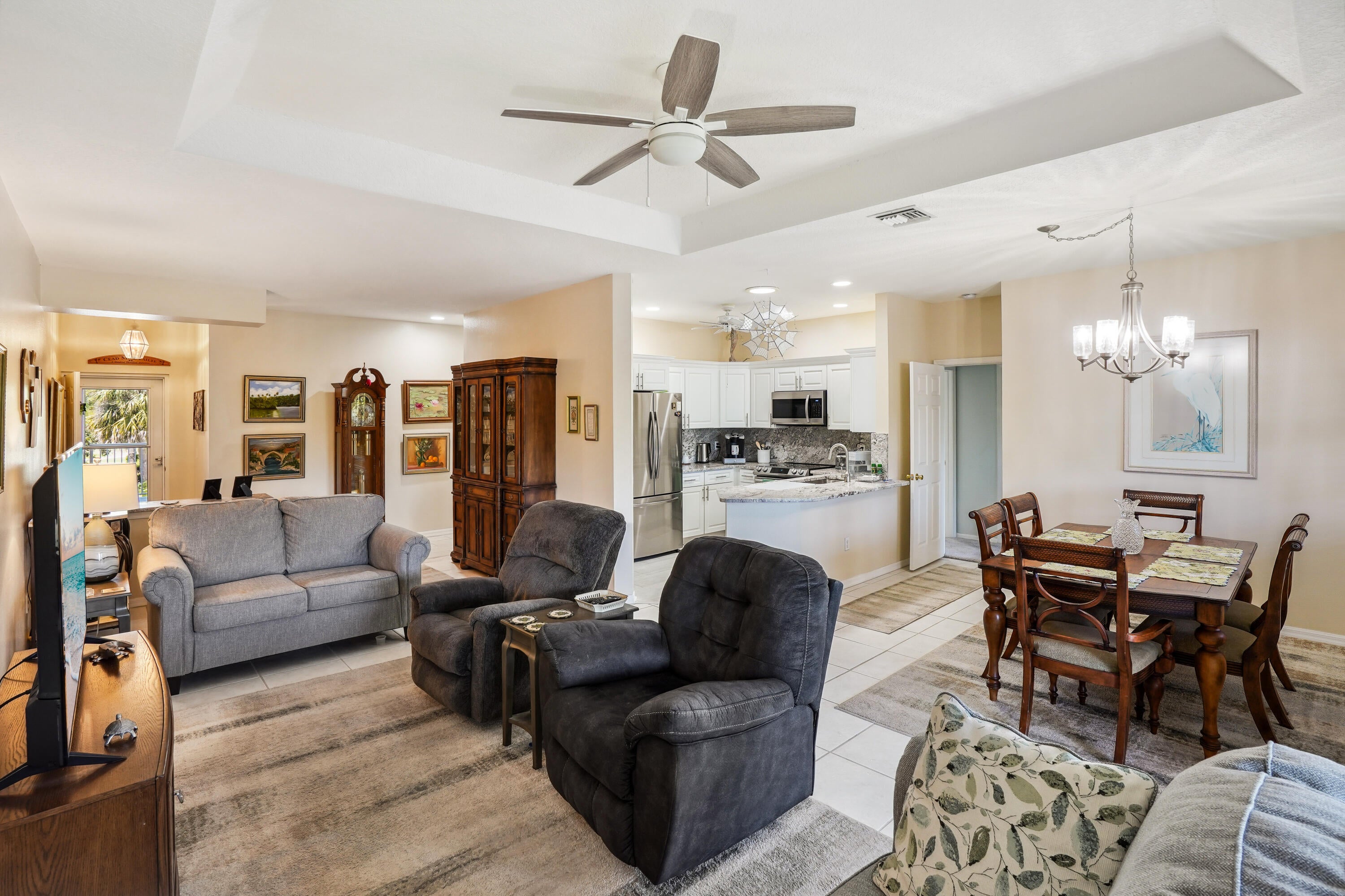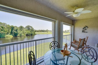 This remodeled and ready to move right in 3 bedroom/2 bath, 1,700 sq. foot unit features a new kitchen and bathrooms; a new refrigerator, stove, and dishwasher; accordion shutters on all openings; and a beautiful view of the water and the 8th green from the screened, large balcony. The long garage can hold your golf cart and car and if you hate stairs, no worries, you can take the chairlift from the garage to the upper floor. Walk or take your golf cart to the clubhouse to enjoy lunch, the dinner specials, or brunch on Sunday; or, play the challenging but fun 18 holes of golf and afterwards relax by the pool. Gator Trace is ''all about having fun''!