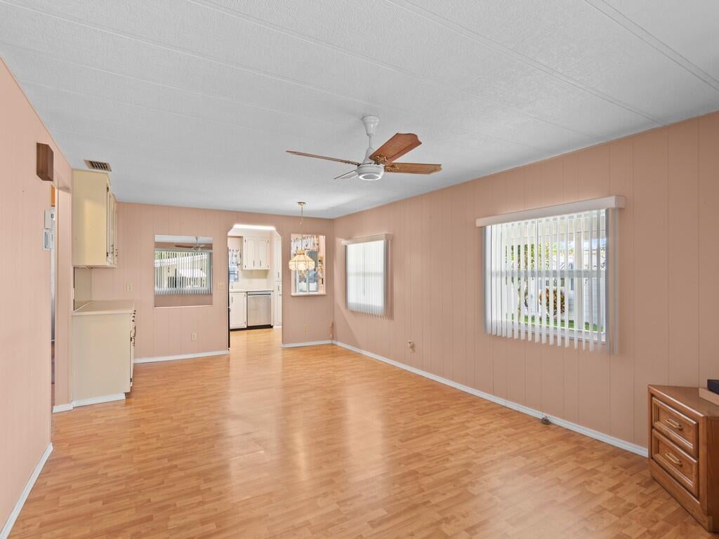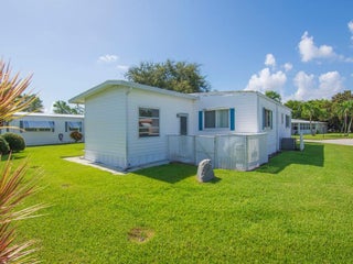 Located in the vibrant 55+ community of Pinelake Village, 264 NE Cameo Way in Jensen Beach, Florida, offers a perfect blend of convenience and charm. This beautifully maintained 2-bedroom, 2-bathroom manufactured home is situated on a desirable corner lot, providing both privacy and curb appeal.Step inside to a spacious living room and a bright and airy Florida room, perfect for relaxing or entertaining guests. The split-bedroom layout ensures privacy, while the well-appointed kitchen boasts ample storage, including a pantry. The primary bedroom offers a cozy retreat with an en-suite bathroom featuring a walk-in shower. BRAND NEW AC. Lot rent is $765 per month
