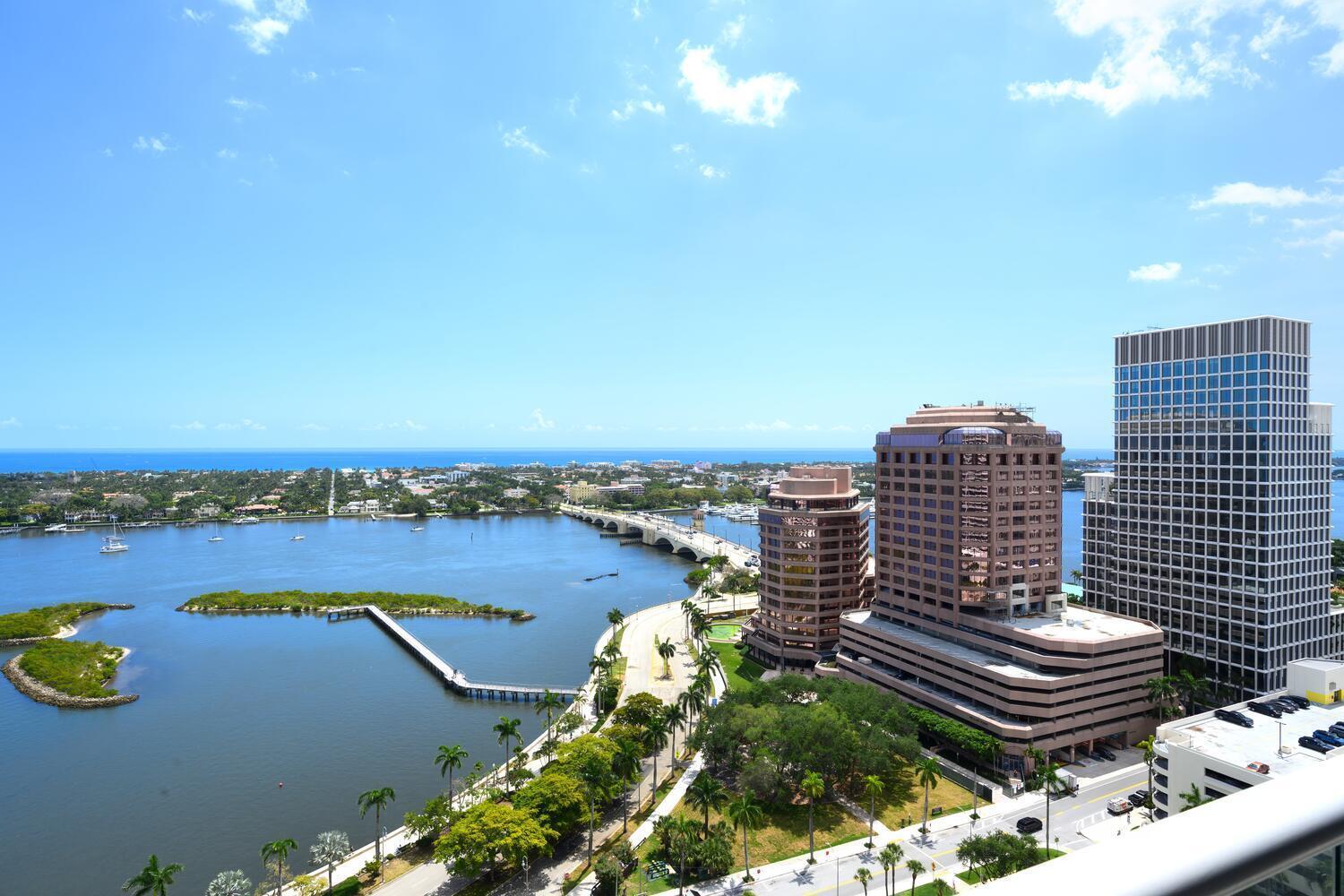Exceptional opportunity to invest in the Plaza of the Palm Beaches. 2 beds/2 baths, over 1,900 sq.ft. under air. Stunning views of the ocean, Island of Palm Beach and Intracoastal Waterway. East and West exposures. Plenty of balcony space for outdoor dining. The unit also comes with a 200 sq.ft. cabana. Full service, luxury building with 24-hour security, valet parking, concierge, two swimming pools, fitness room, tennis and pickle ball court and conference room. Pet friendly. Easy distance to all that the area has to offer: shops, restaurants, CityPlace, Kravis Center and Norton Museum of Art, Ocean/Beaches and Palm Beach nightlife. Easy to show.