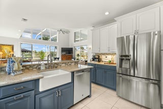 The private gated community of Bay Pointe offers this exquisite 3 bedroom + office, 3.5 bath, 2.5 car garage pool home overlooking the lake and garden views. From the moment you enter the large circular paver driveway, you will be impressed by all the custom designed esthetics, landscaping and finishes. The entryway offers high ceilings and expansive sliding glass doors allow natural light to shine in. The interior has been thoughtfully designed with high end finishes that is sure to impress. Your master suite offers his & her closets & vanities with a soaking tub and private walk in shower. Your pool/patio is an entertainers dream with a summer kitchen, spa, expansive paver deck all overlooking the lake. Partial IMPACT windows & whole house generator too! Bring boat leased dock available