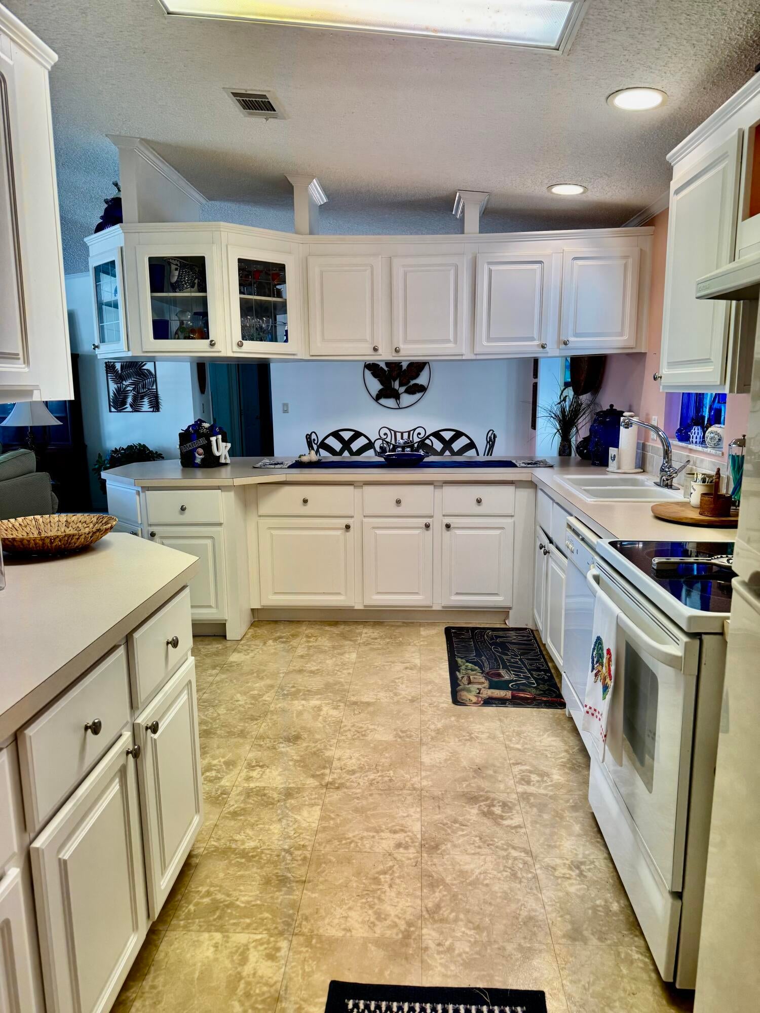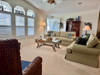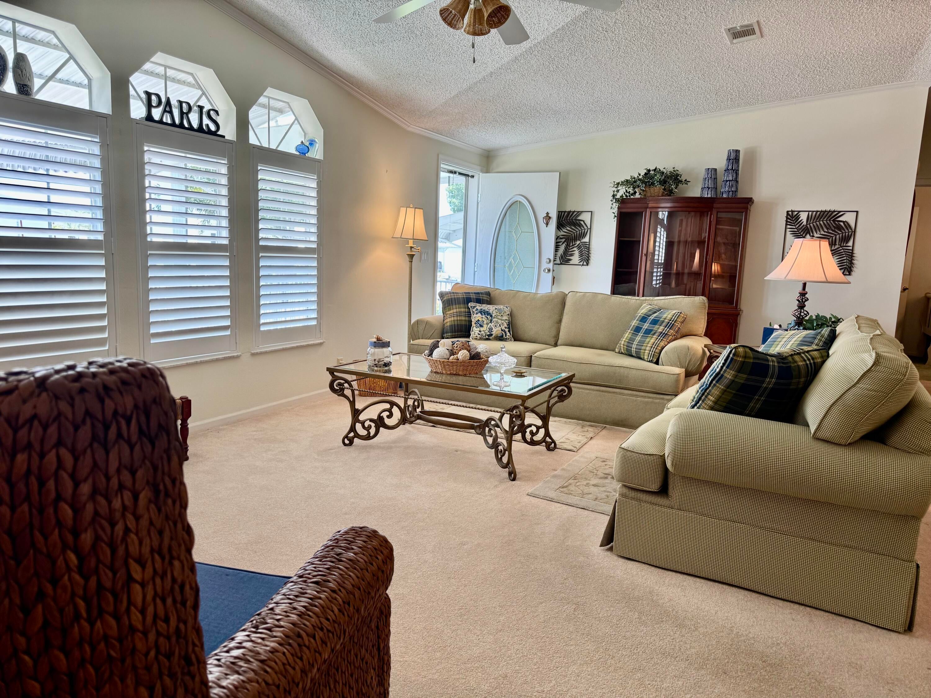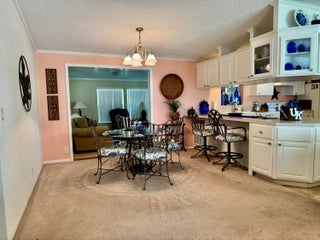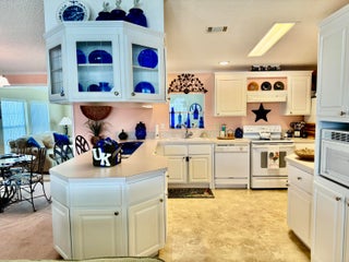 SHINING in SEMINOLE COVE ! Welcoming 3 Bd/ 2 Ba/ with double carport and workshop. Spacious DOUBLE Lot. 2003 Homes of Merit DWMH. This Great room design has Vaulted ceilings, drywall, open concept, crown molding and plantation shutters giving this home star quality, adding to its charm. The 12x17 family room/ florida room has ceramic tile and six windows ~ let there be light! Beautifully furnished! 1620 Sf under air - 2338 TLA. City water/ sewer. Metal Roof. Offering well Irrigation, hurricane shutters and a community of wonderful neighbors! This HOA 55+ Community has a heated pool, clubhouse. fish cleaning station and a storage lot for your boat trailer. FLORIDA SUNSHINE is CALLING! Dimensions are approximate, must measure for exact.