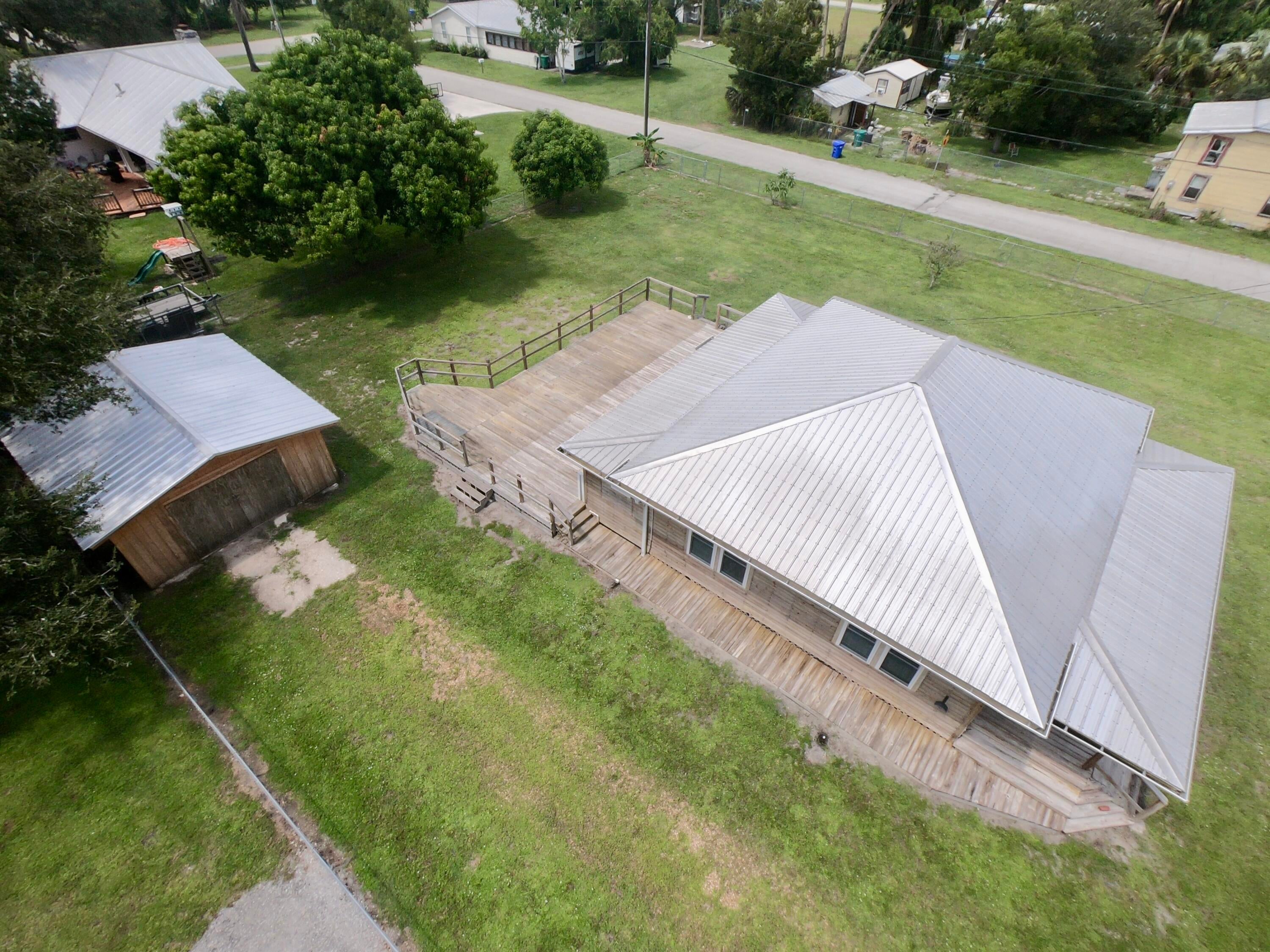 Location, location, location -- with a beautiful piece of history! This 100+ year-old home is only on its second owner and sits in the heart of downtown Okeechobee, close to schools, churches, and shopping. Features include a full-length front porch with wraparound staircase, a 20x40 back deck, detached garage, and nearly half an acre with fruit trees. Inside, original exposed beams add charm and character. Newer metal roof, A/C and New South hurricane impact windows with transferable lifetime warranty. A rare opportunity to own a timeless piece of Okeechobee's history!